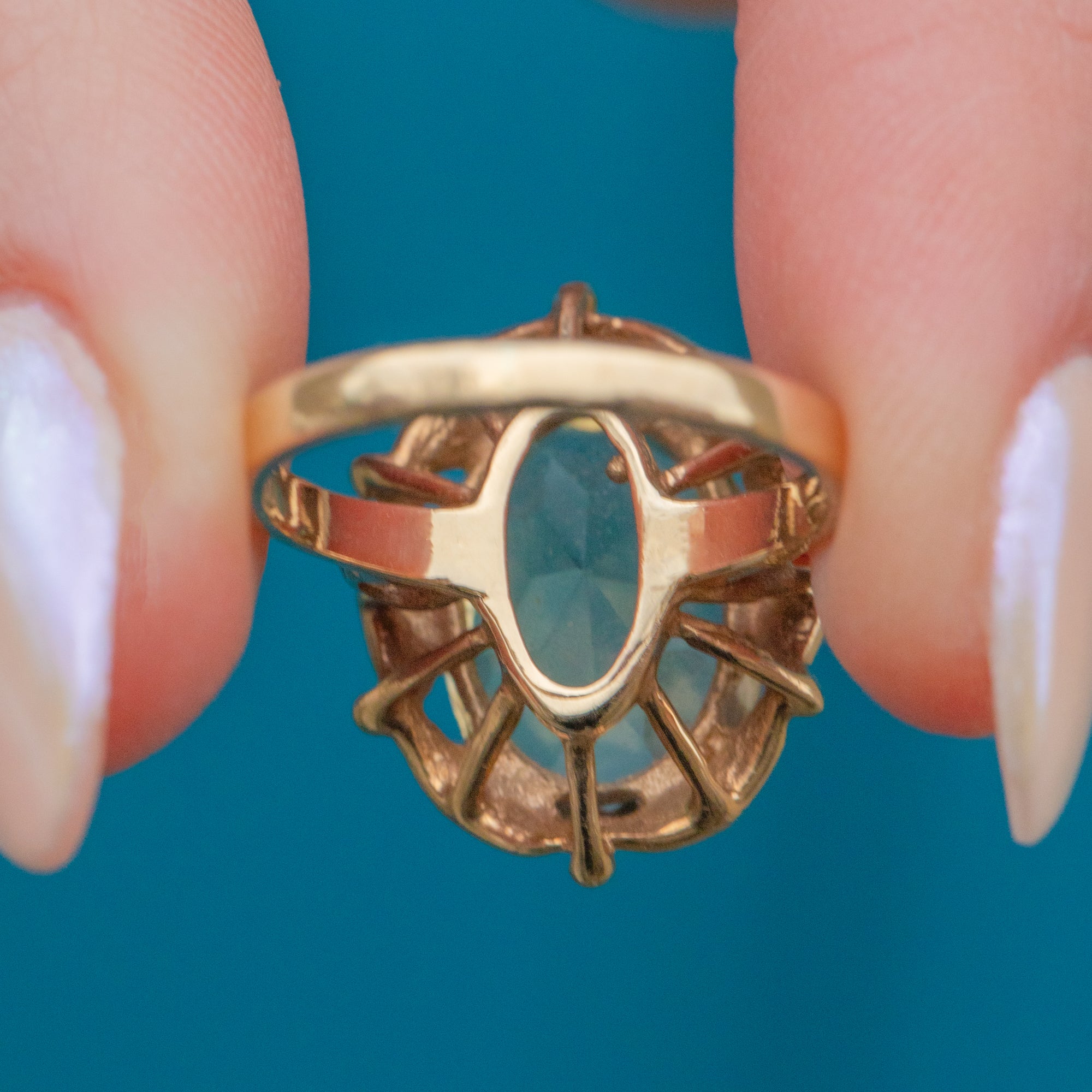 The lemony 4.90ct Citrine sits snug within a 9ct Gold basket, surrounded by a floral-inspired setting! This dress ring has great wear potential and is sure to elevate your ring stack.