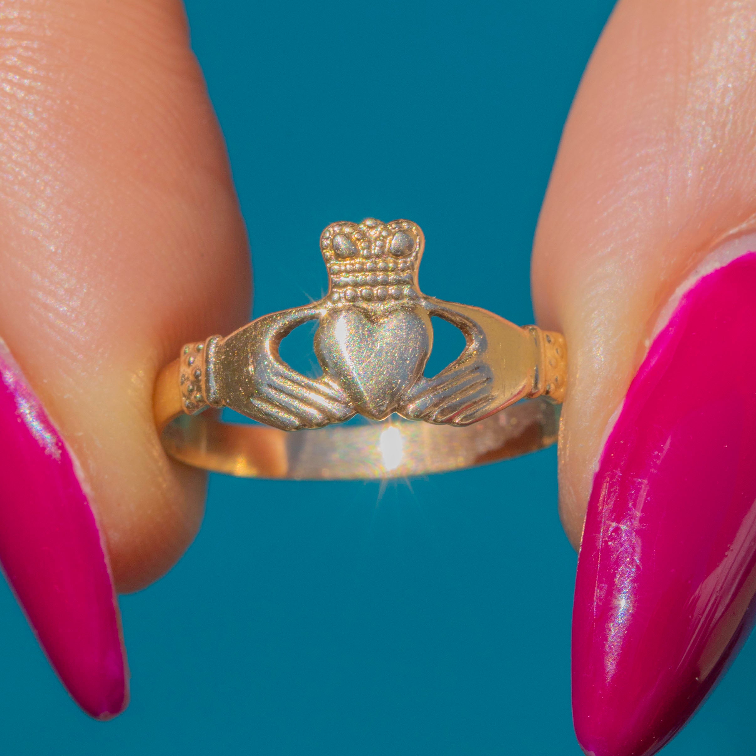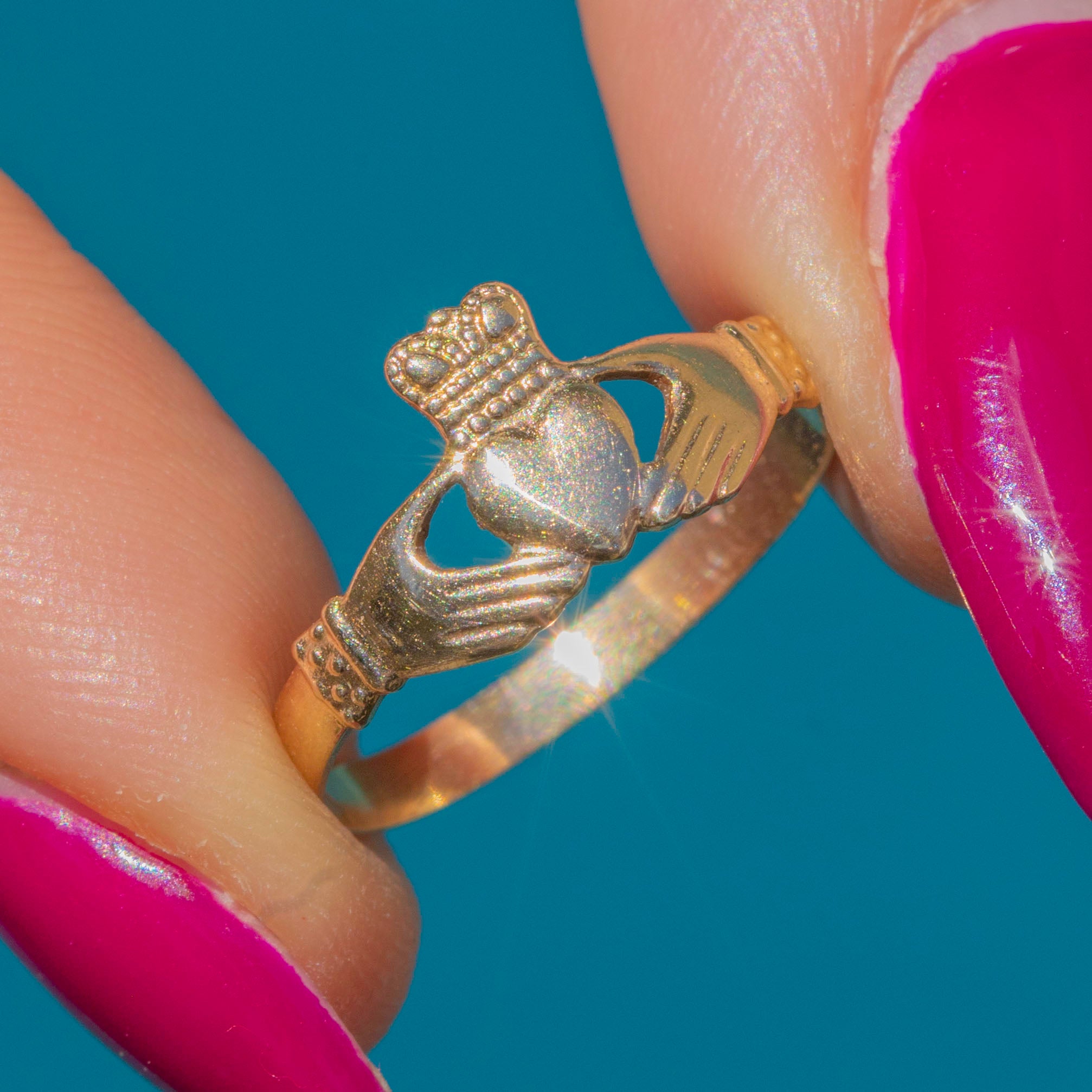 This charming Irish Claddagh ring represents love, loyalty and friendship through its distinctive crown, heart and hands.
