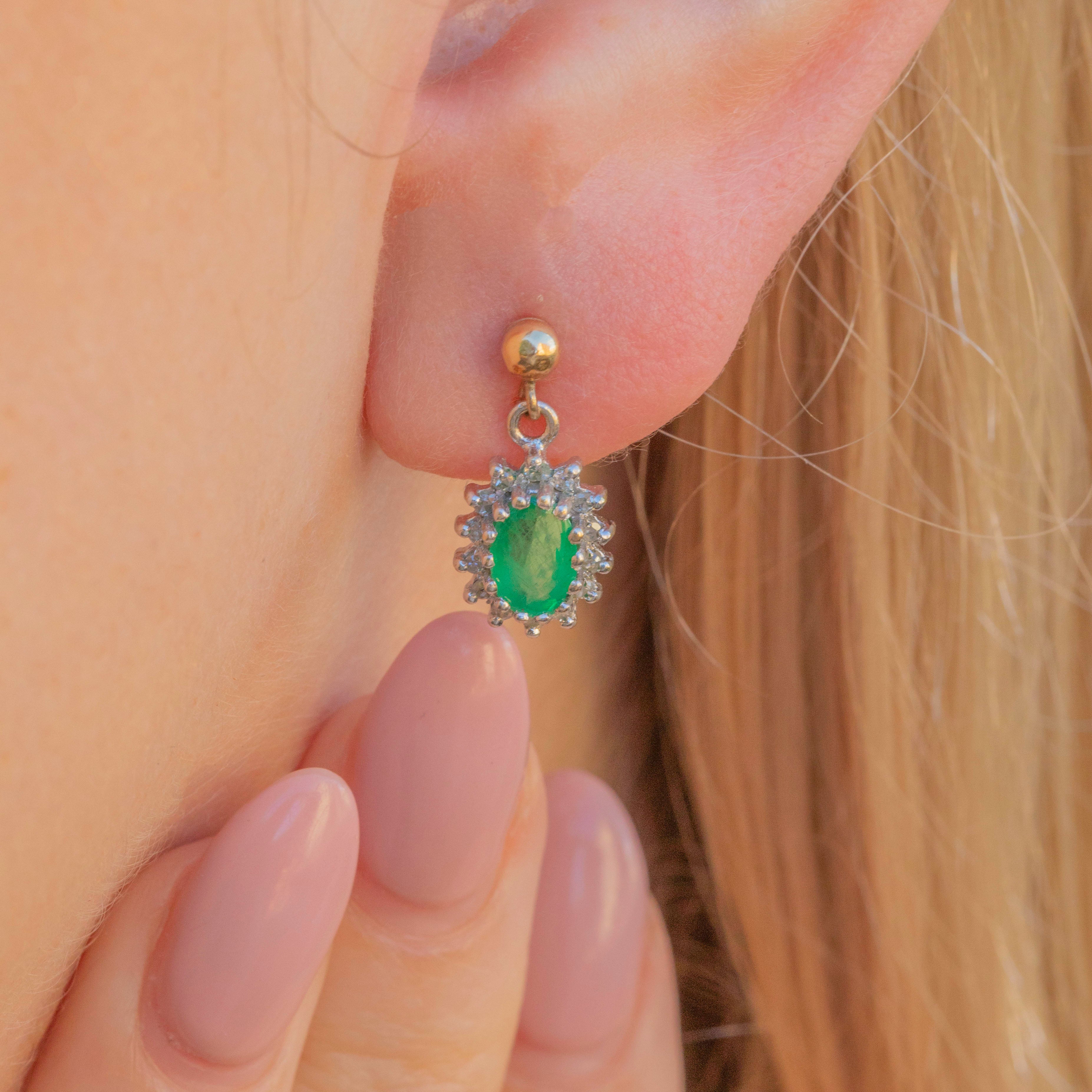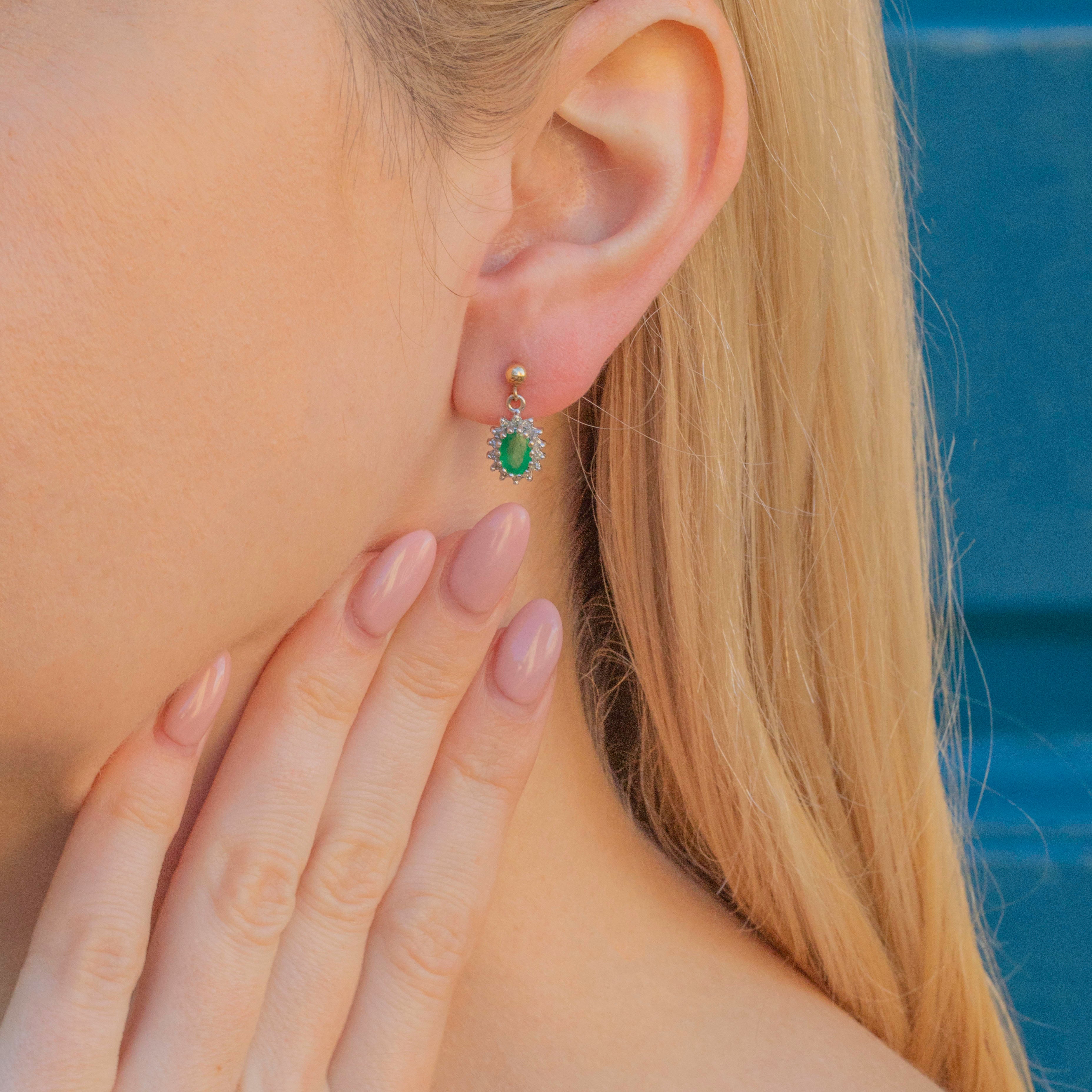 Add a vibrant pop of colour and a touch of sophistication to your collection with these 9ct Gold Emerald Diamond cluster earrings!
