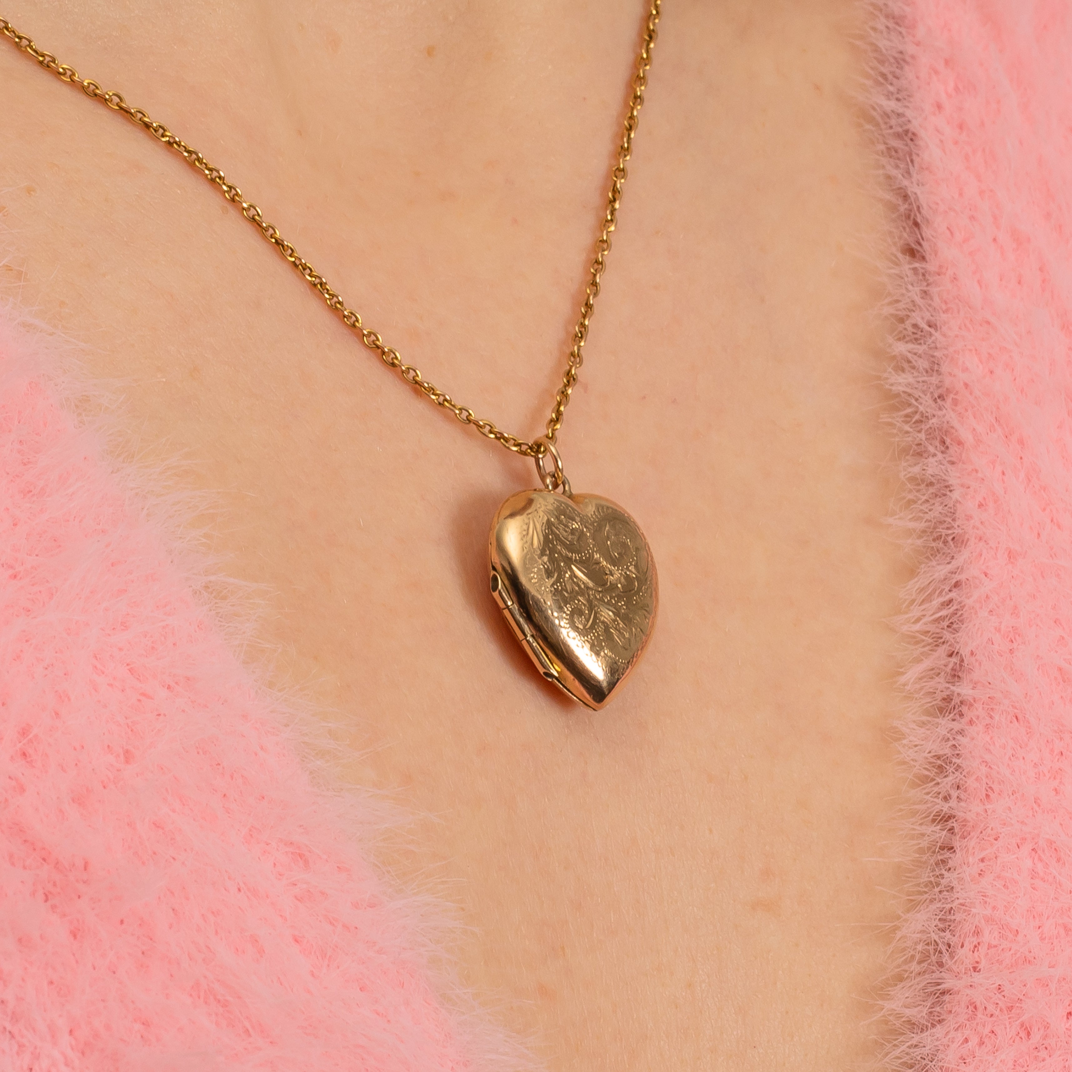 This 9ct Gold engraved heart locket is a true vintage treasure! Handcrafted from solid 9ct Gold with pretty engraved details dancing across the front, this heart locket would make the most wonderful romantic token to gift a loved one.