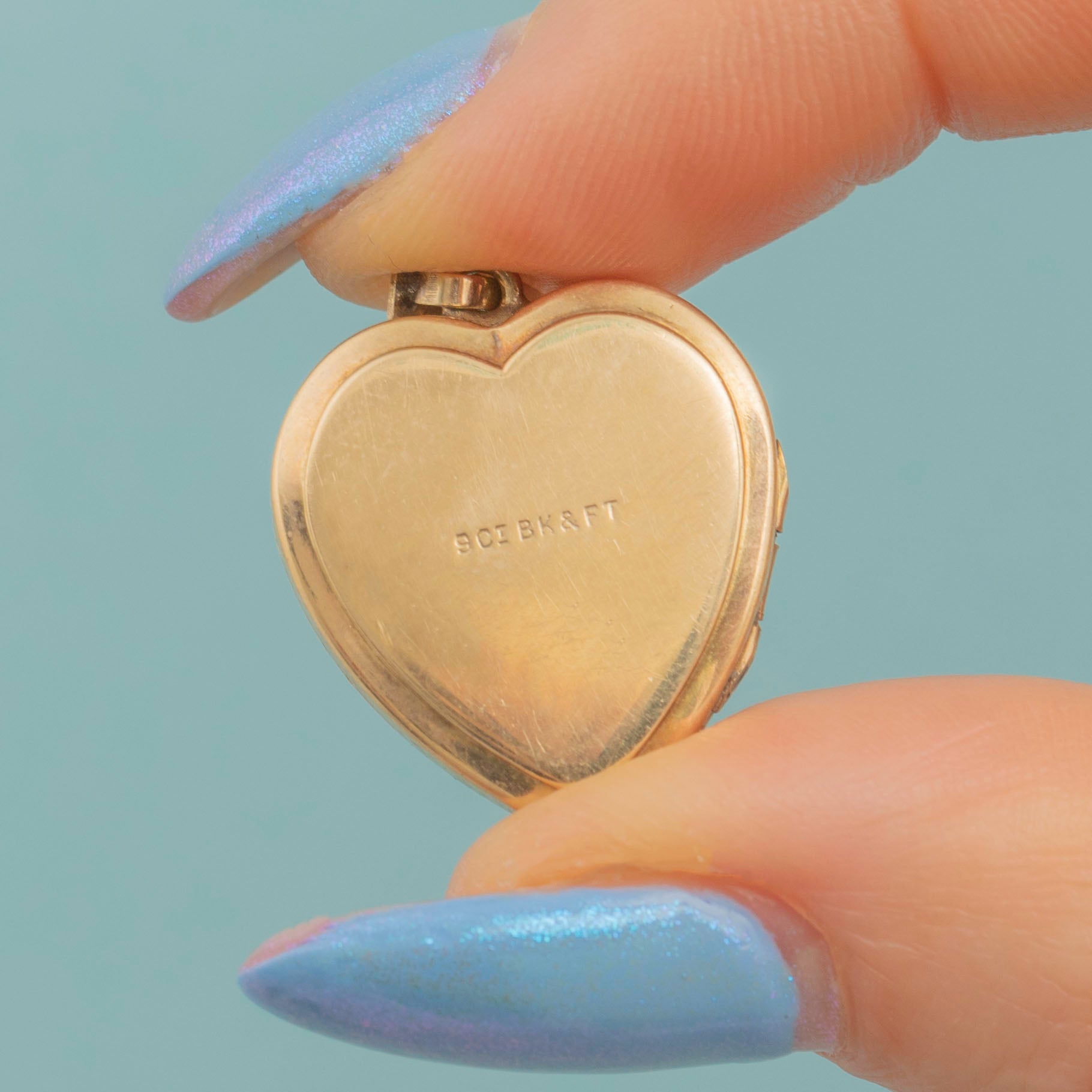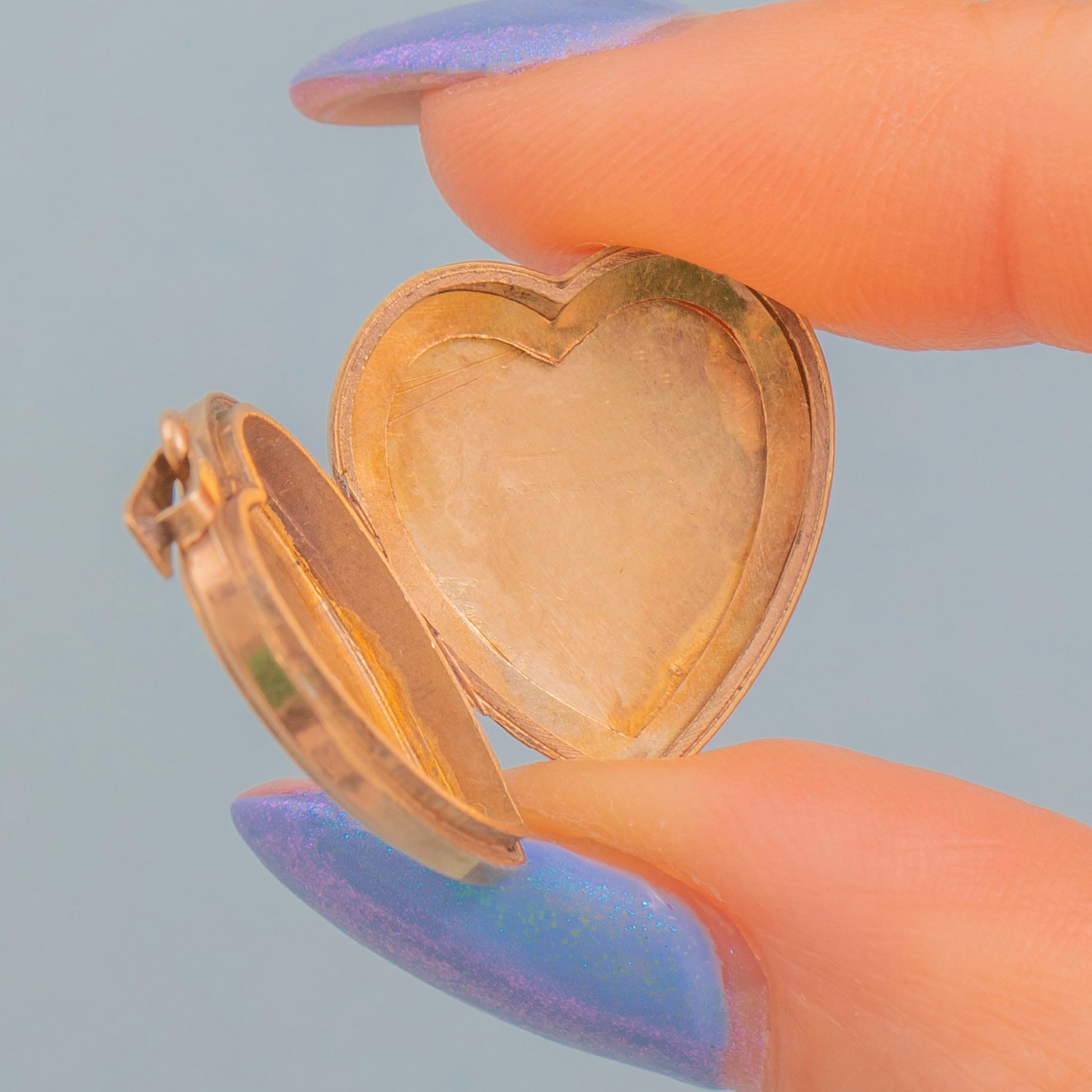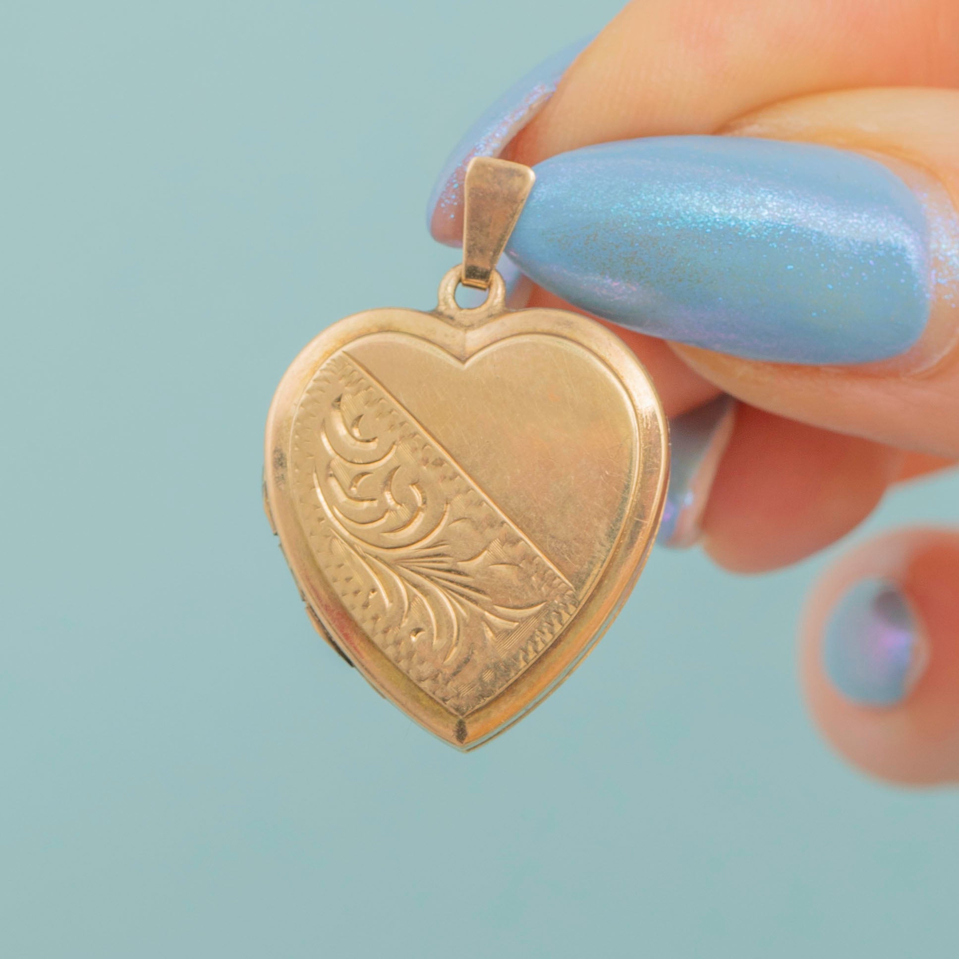 EXCELLENT. This 9ct Gold engraved heart locket is in excellent condition. Her engravings are crisp and detailed, with only very minor surface wear to note. The Gold is bright and the locket is free from dings. With a secure bale, you can wear her with the utmost confidence!