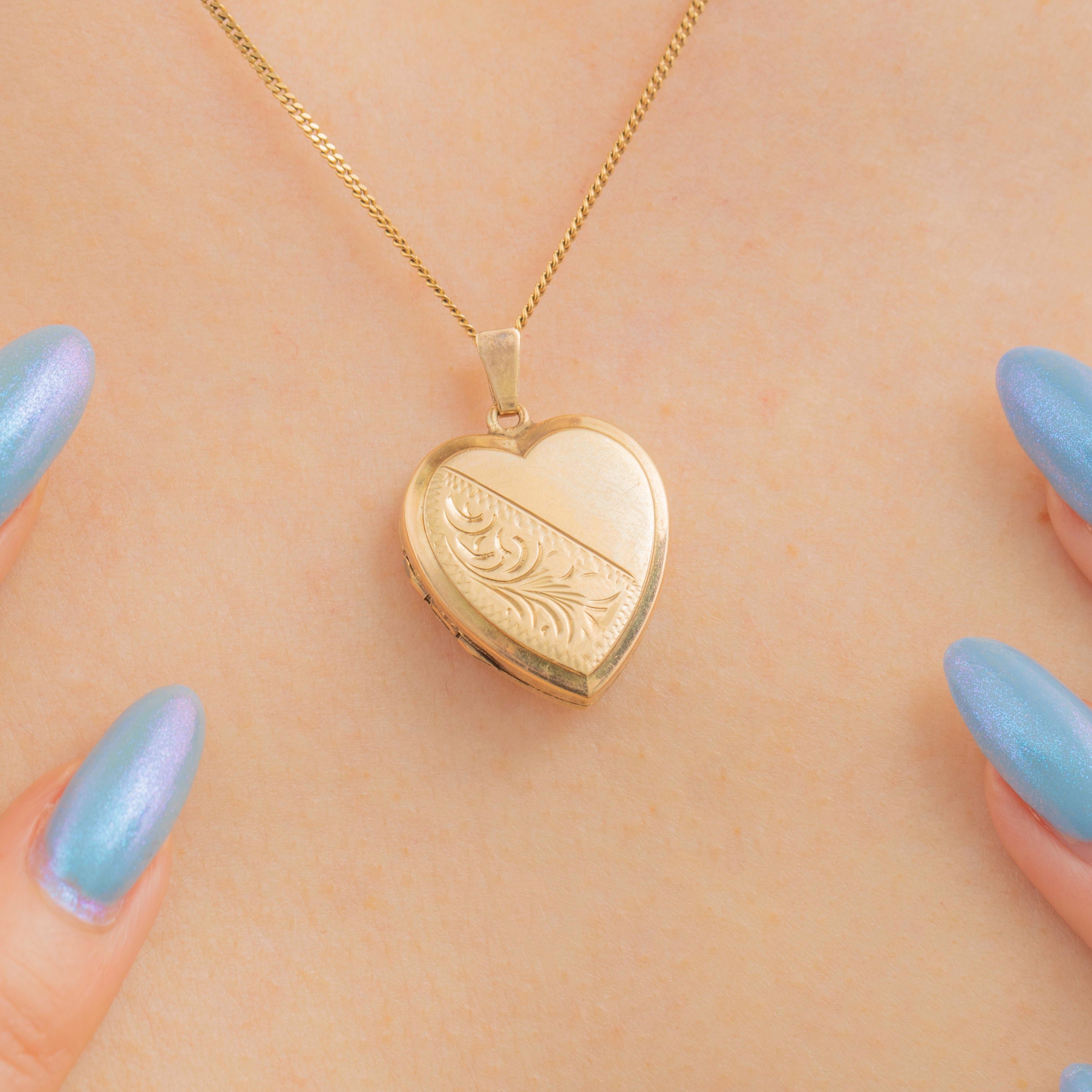 Add a touch of romance to your collection with this 9ct Gold engraved heart locket!