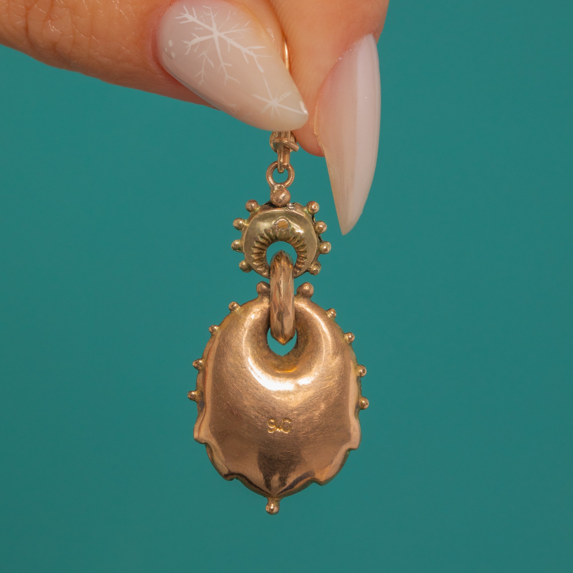 VERY GOOD: The earrings present beautifully overall, with light surface wear to the gold consistent with age and careful wear. No damage or structural issues are noted, and all elements remain secure. A well-preserved antique pair.