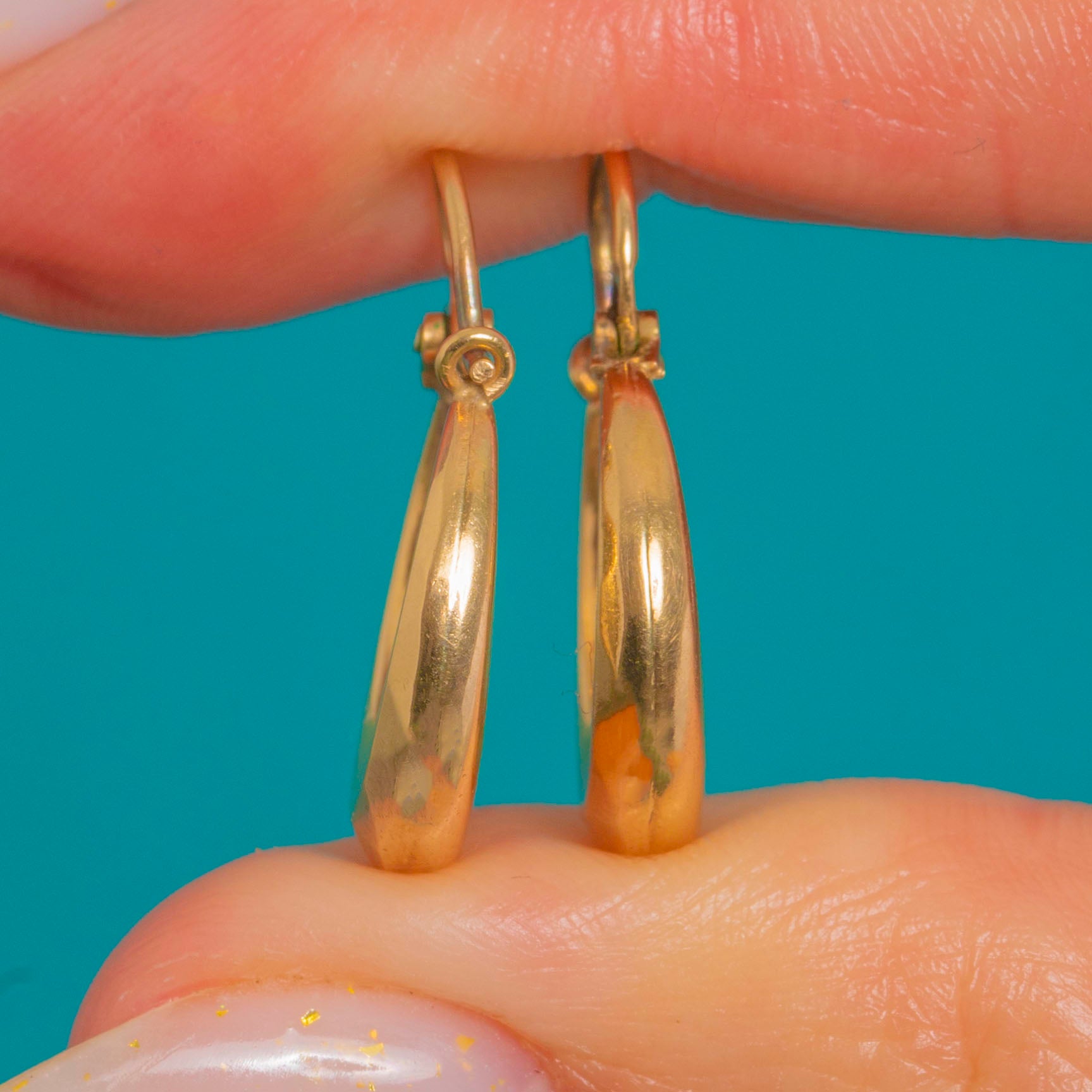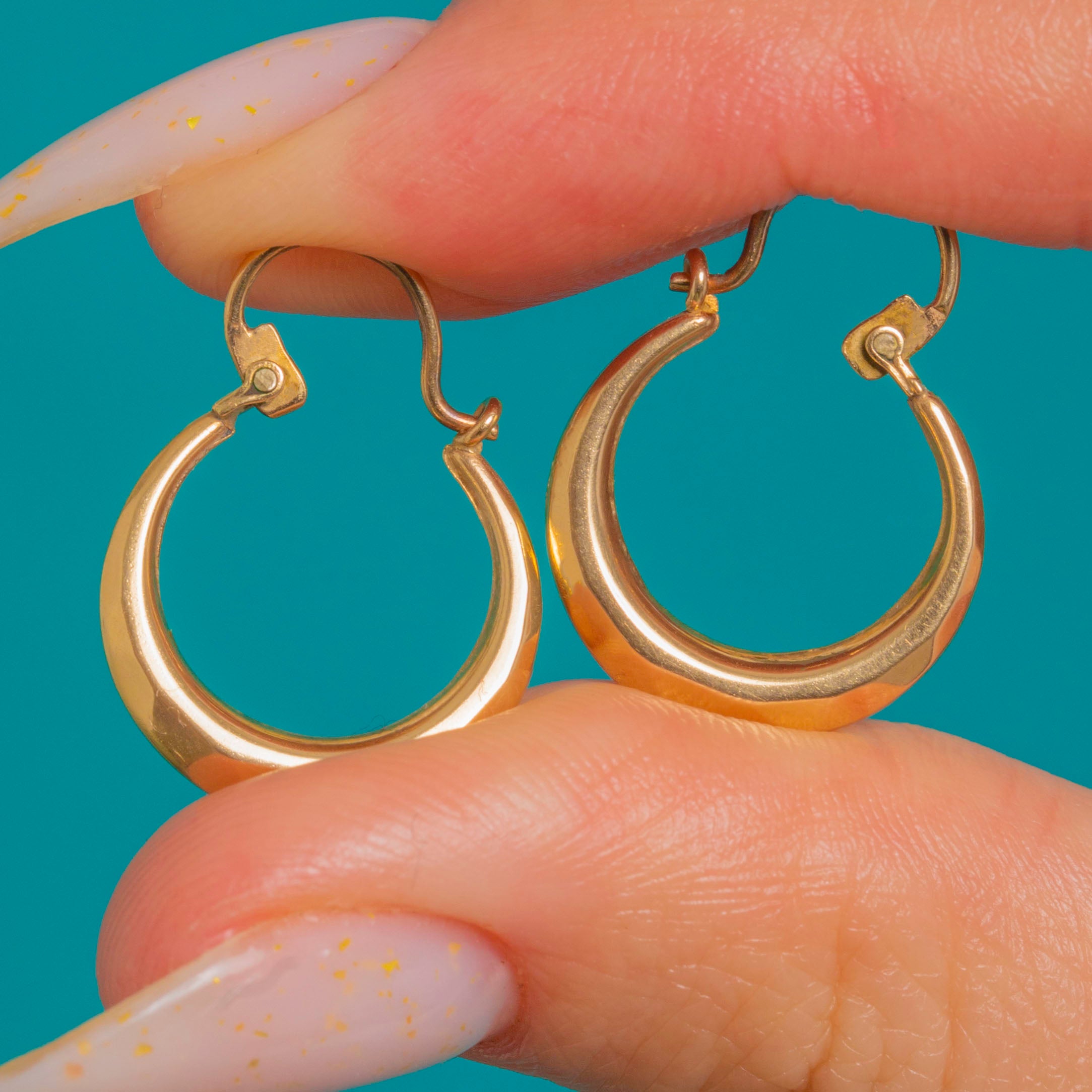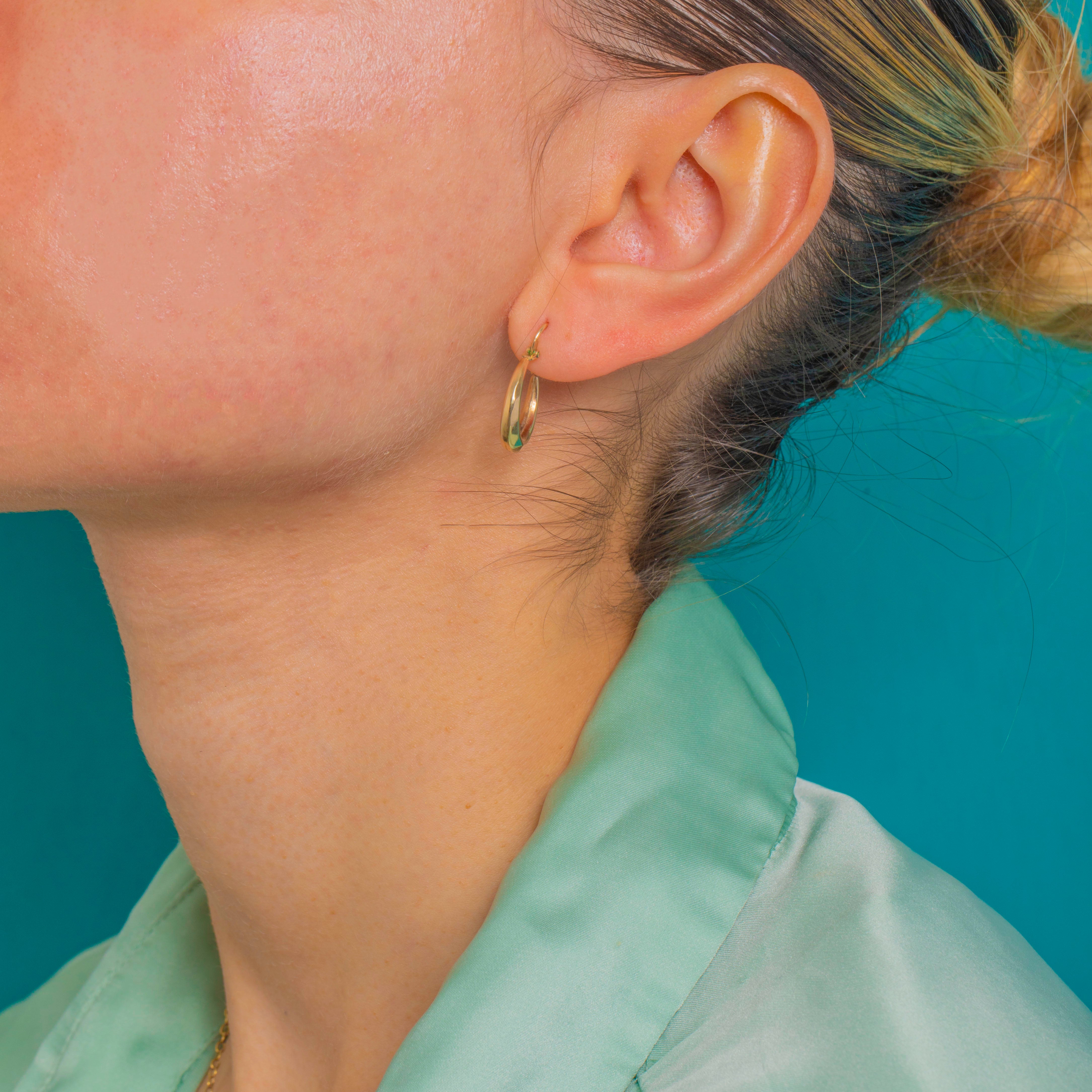 Sleek, timeless, and effortlessly wearable, these vintage 9ct Gold huggie hoops are a chic everyday essential. Their subtly faceted, hollow tubular profile catches the light with a refined glow, finished with a smooth high polish and a classic snap-in sleeper closure for a neat, secure fit.