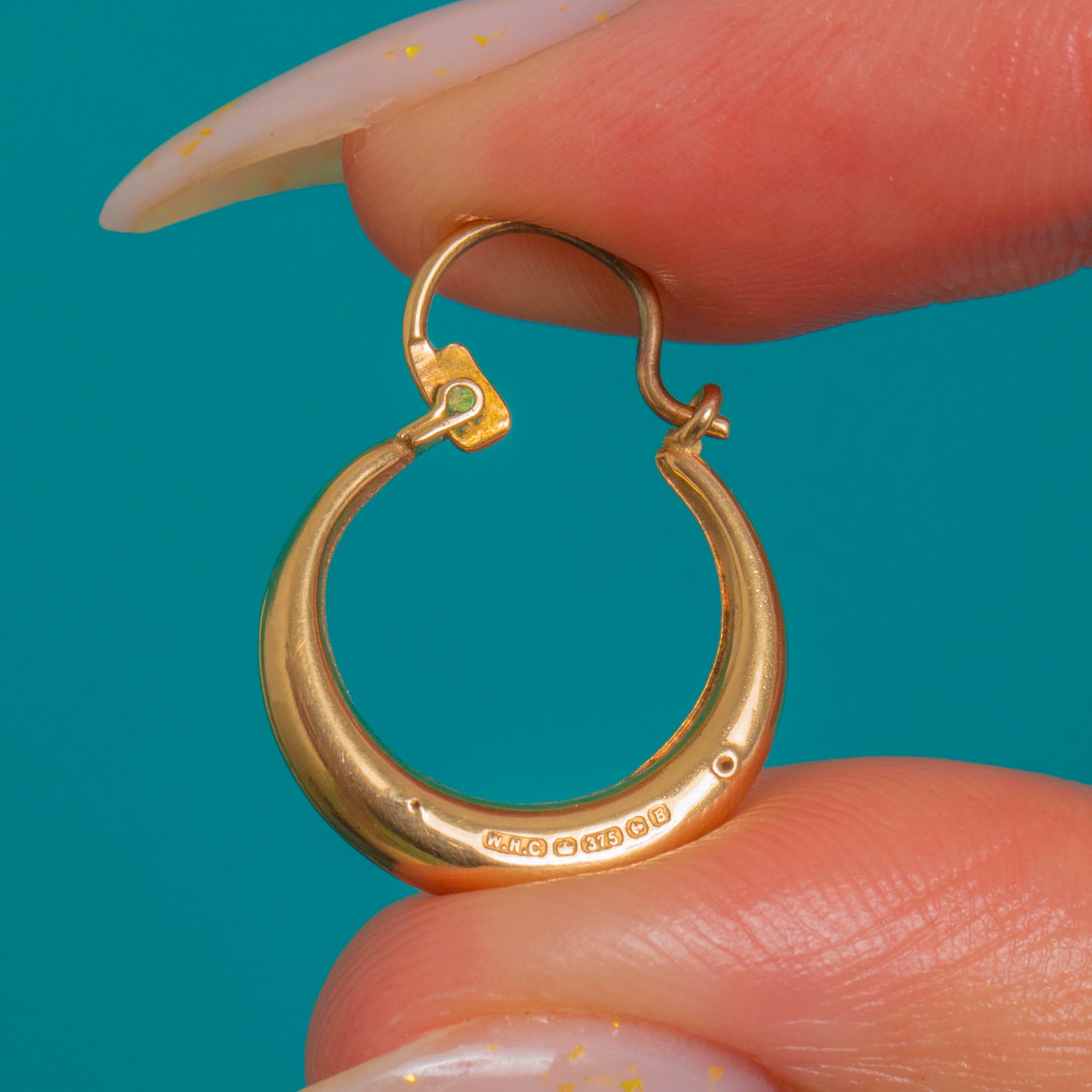 Crisp Birmingham hallmarks inside each hoop, dating to 1976, underscore their quality and provenance. Minimalist and elegant, they deliver that perfect touch of warm Gold for any jewellery capsule.