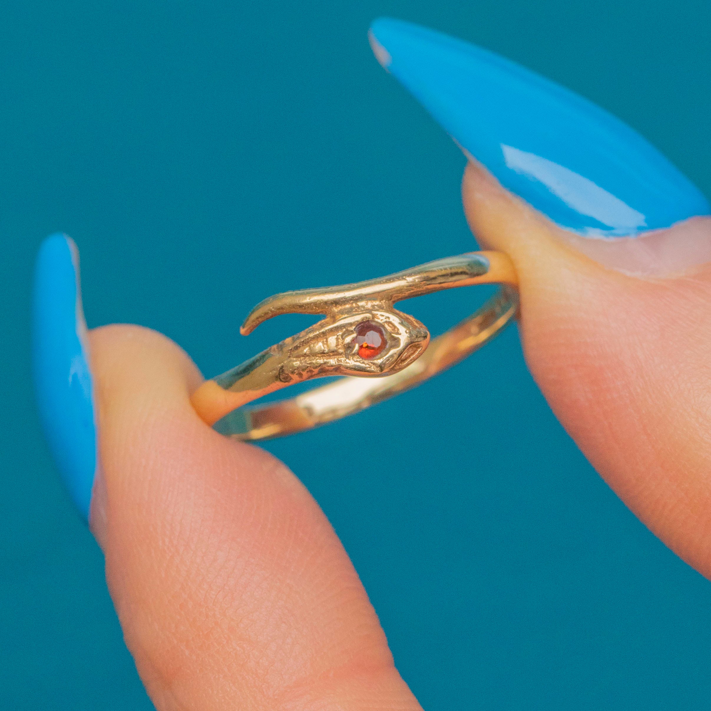 9ct Gold Garnet Snake Ring