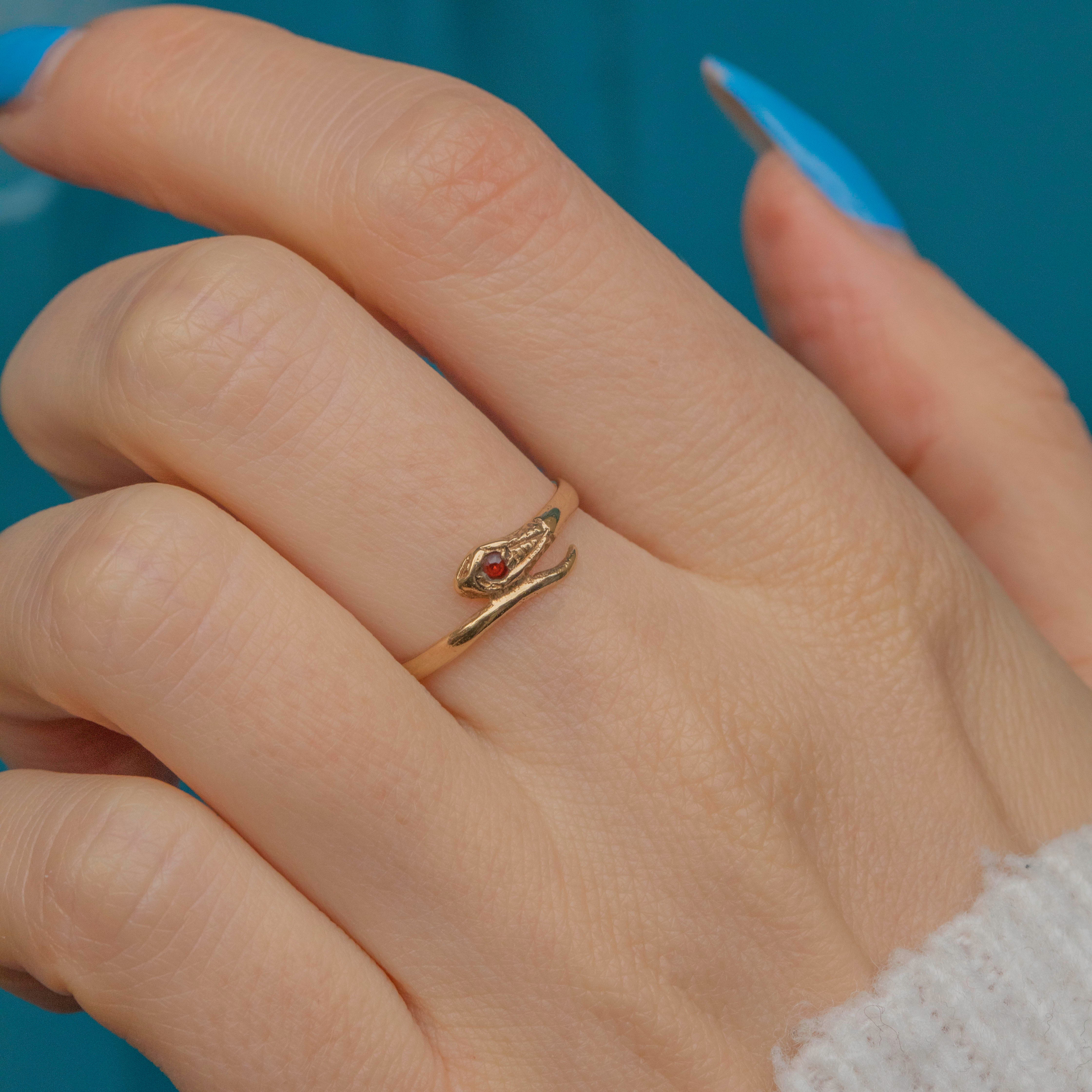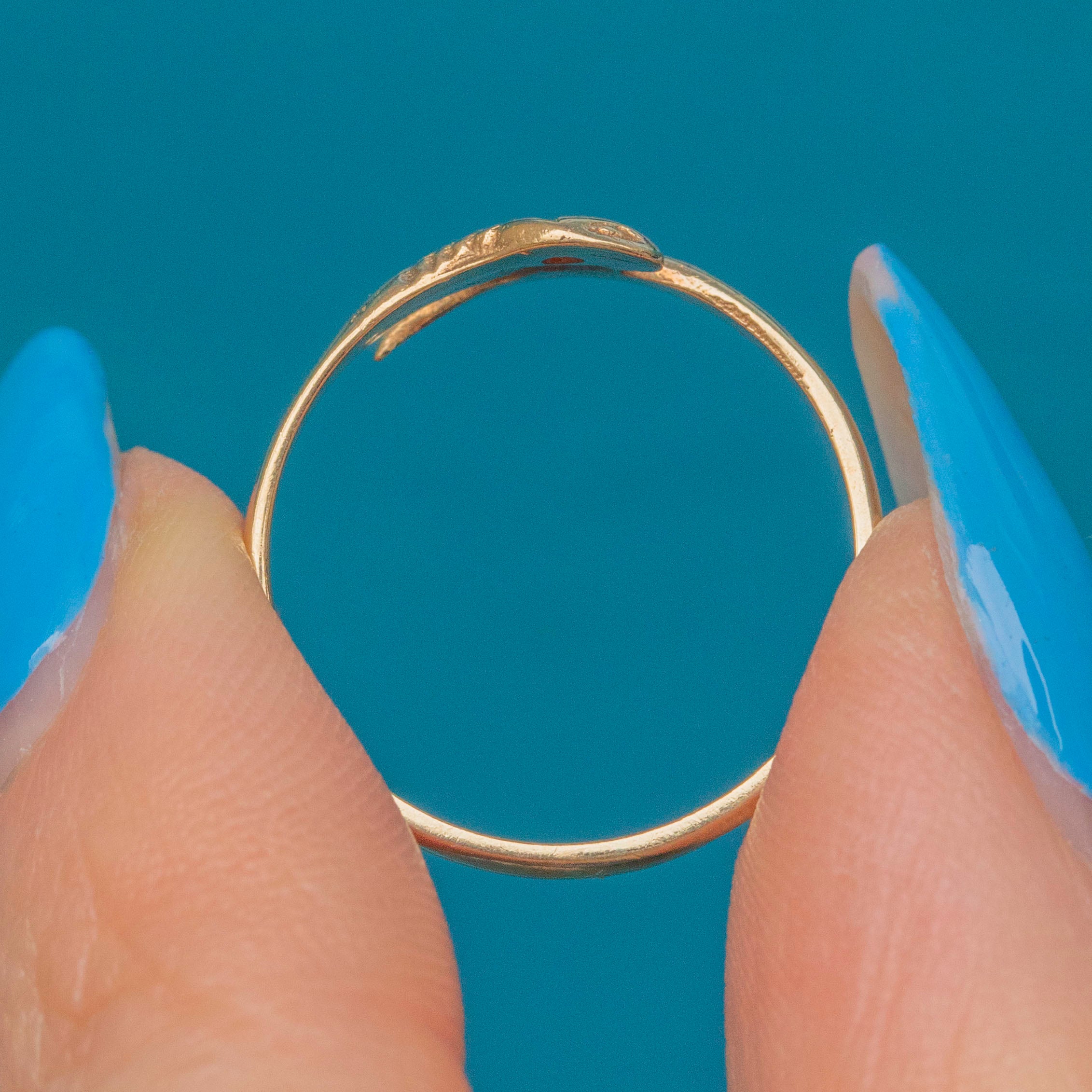 This characterful 9ct Gold Garnet snake ring will make a unique addition to your ringstack! Lightweight and comfortable to wear, the serpentine form of this vintage ring is crafted from solid 9ct Gold and will wrap around your finger with undeniable luxury.