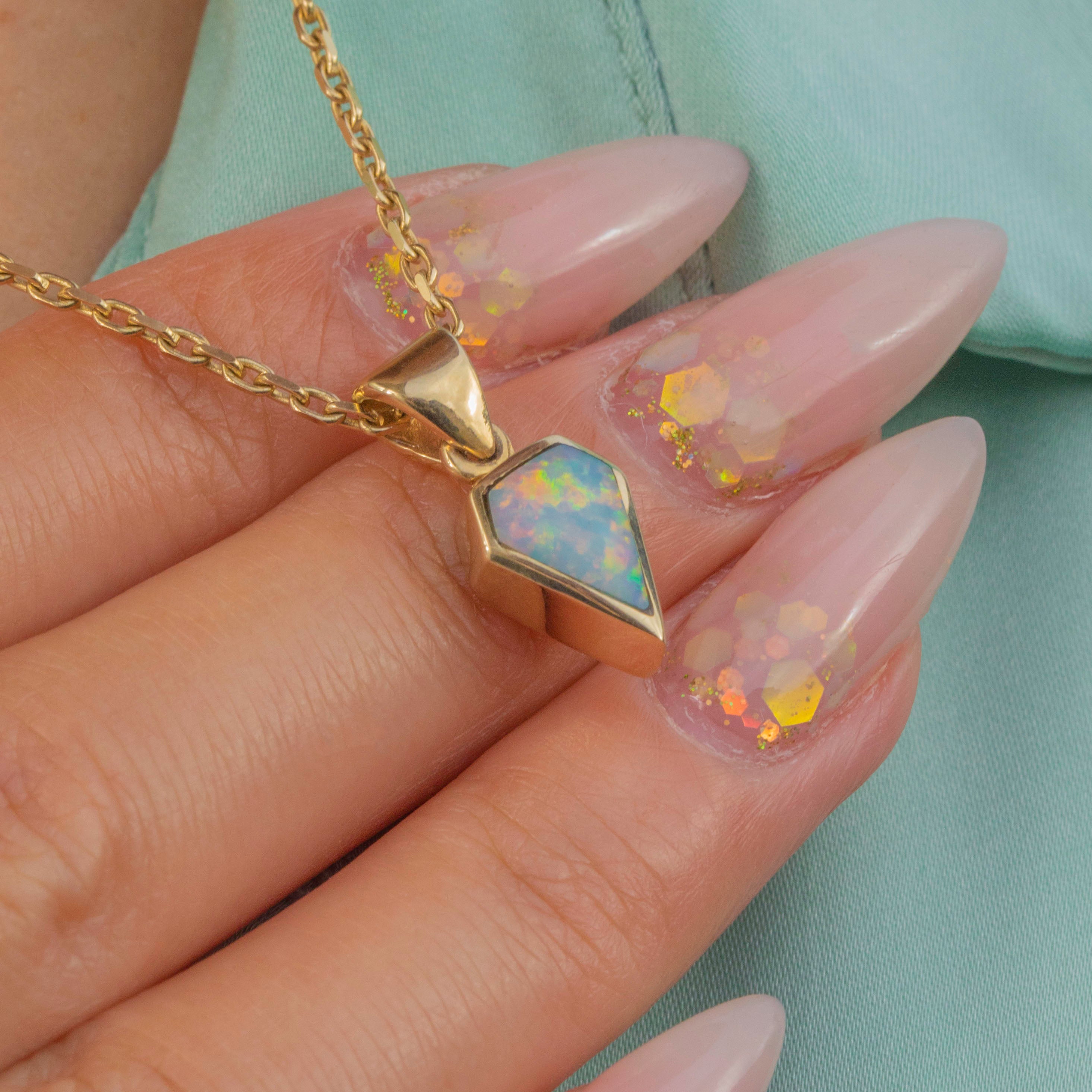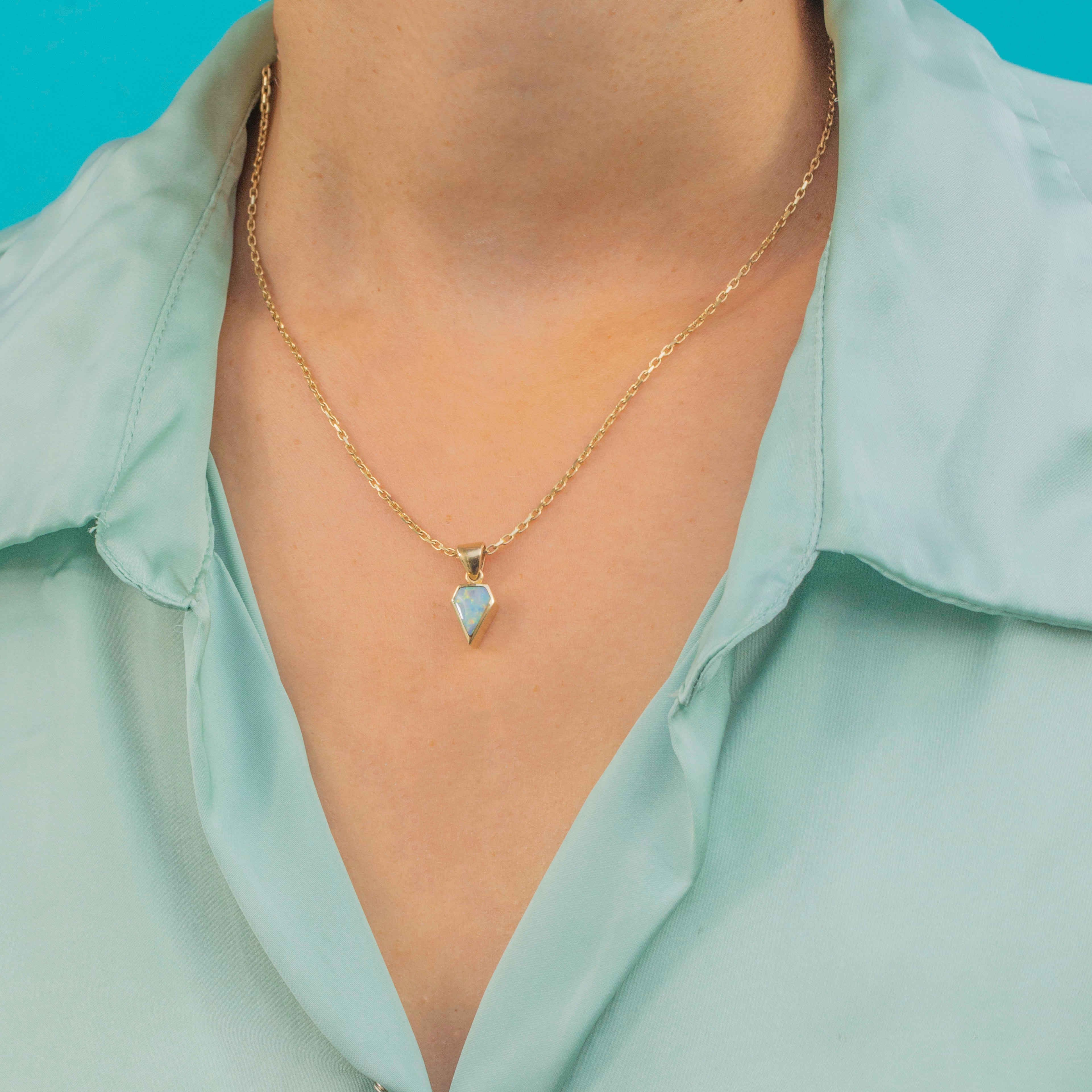9ct Gold Geometric Opal Pendant with 18" Chain