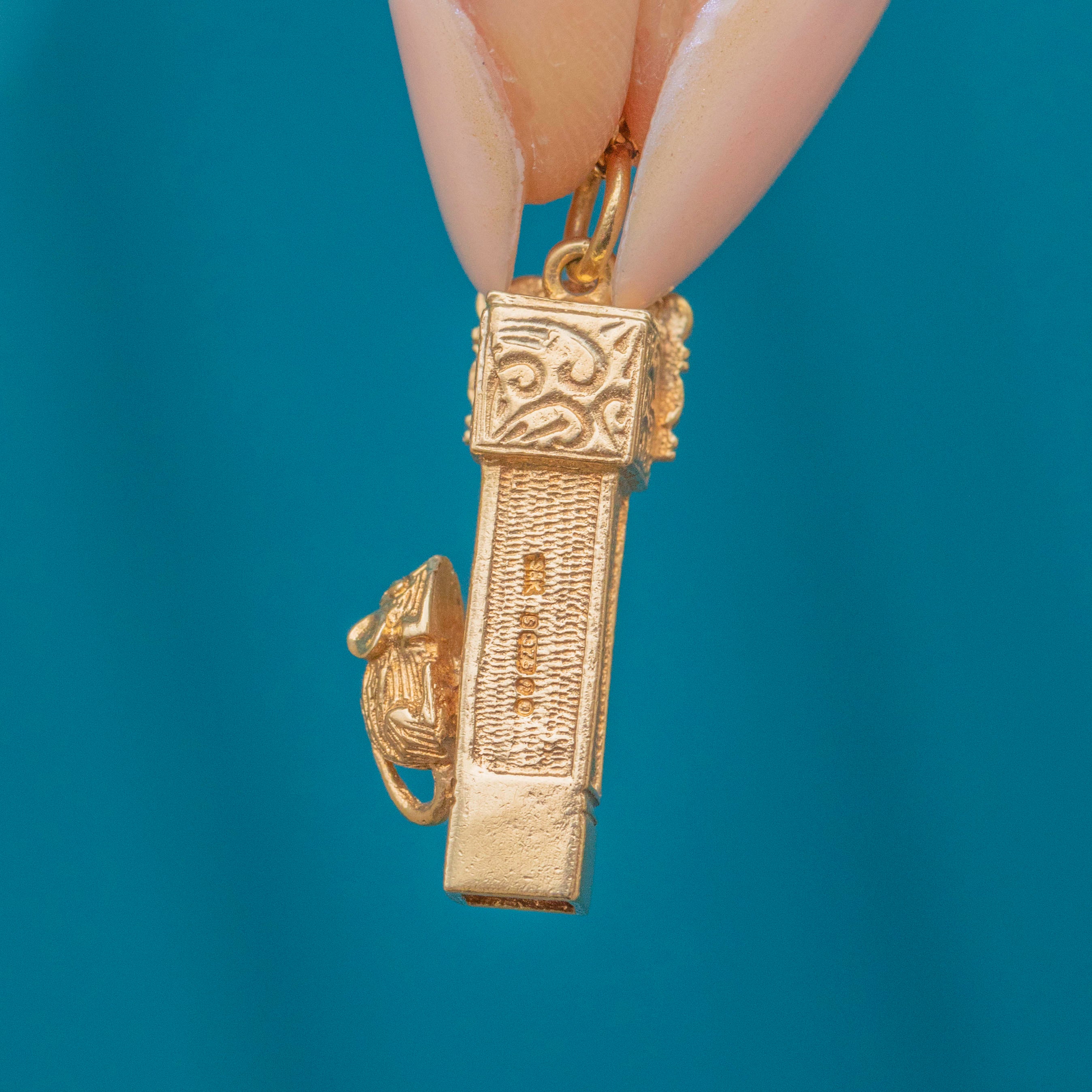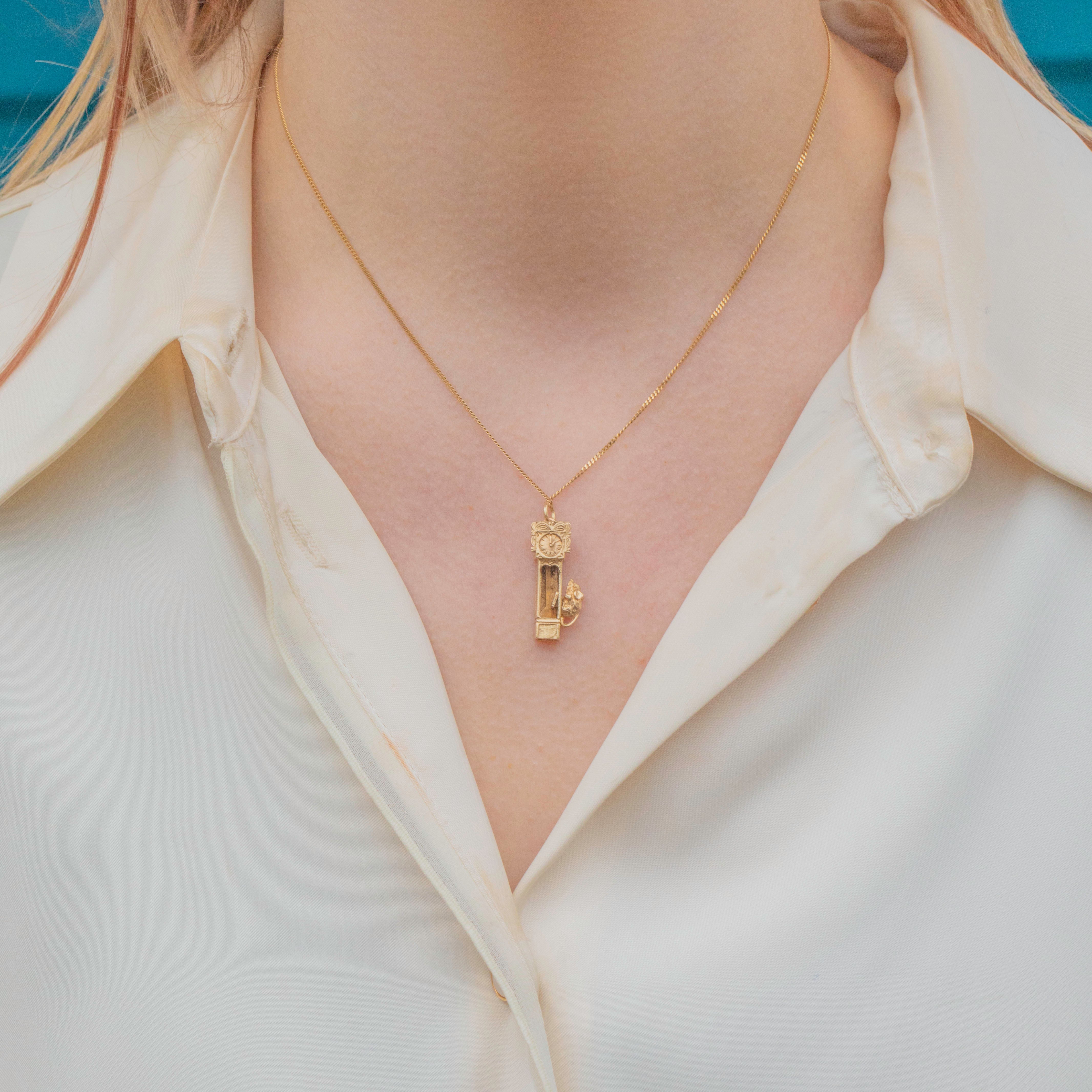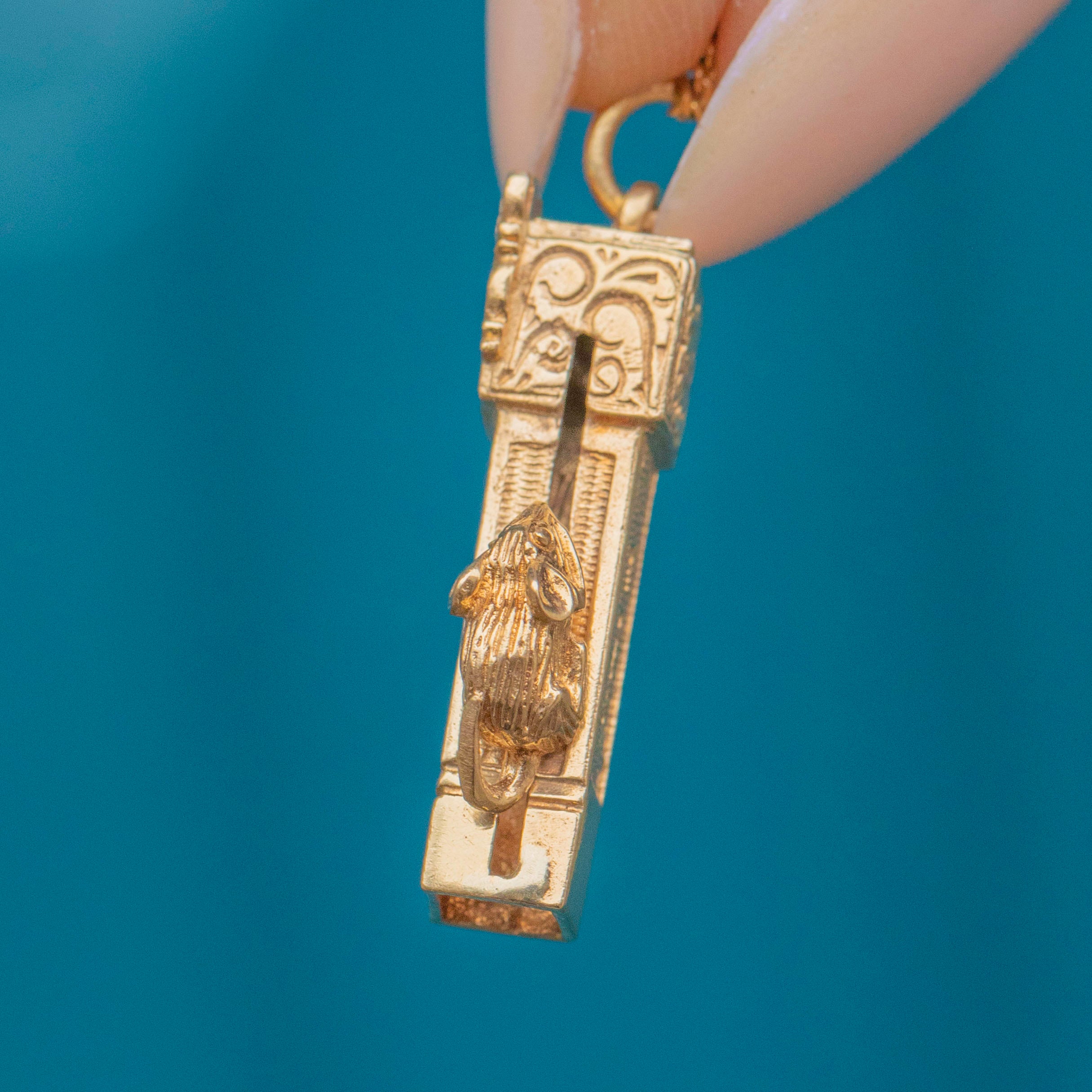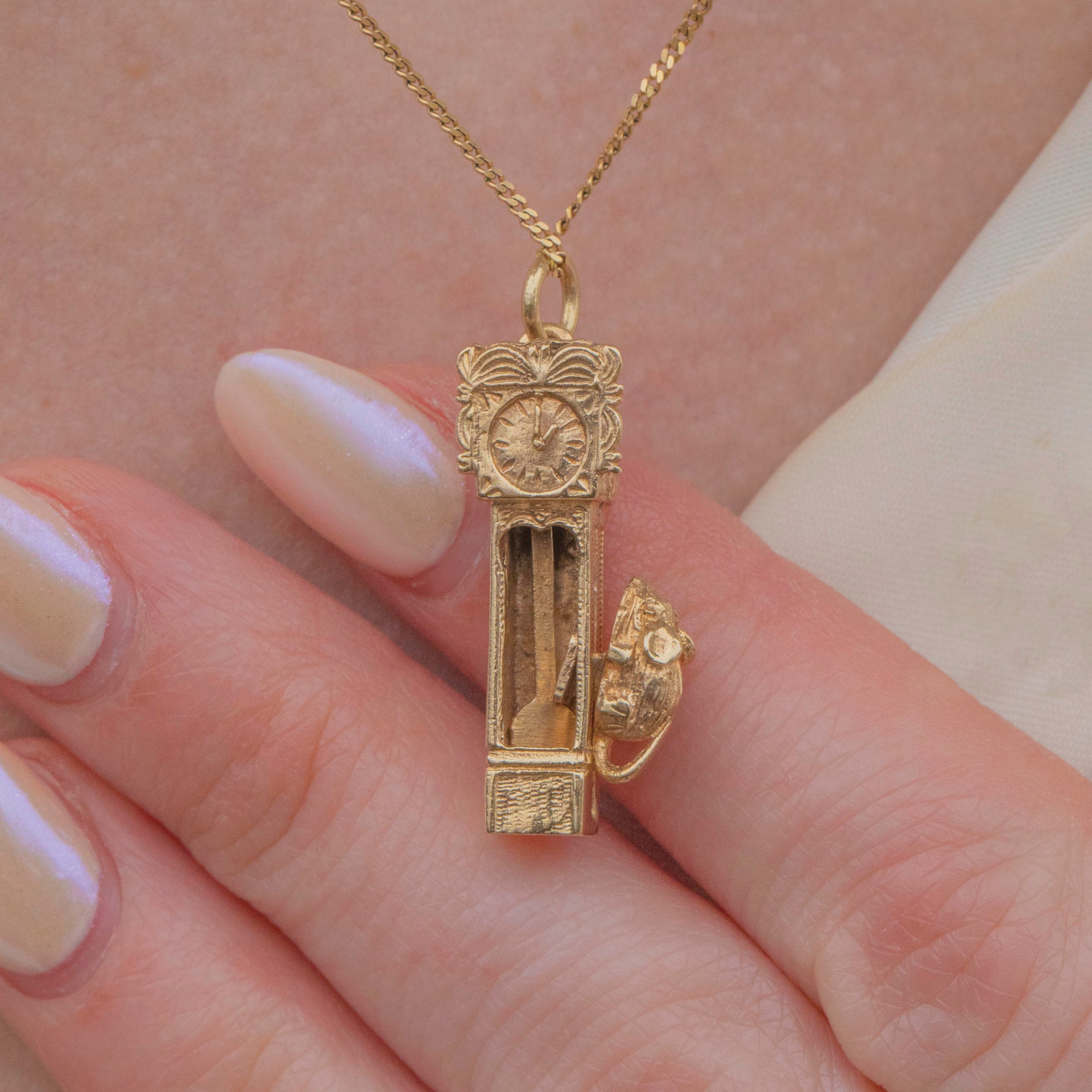 Embrace nostalgia with this enchanting 9ct Gold Hickory Dickory Dock Charm! Inspired by the beloved nursery rhyme, she features a tiny mouse perched on the clock's edge, sliding vertically upward as if racing against time.
