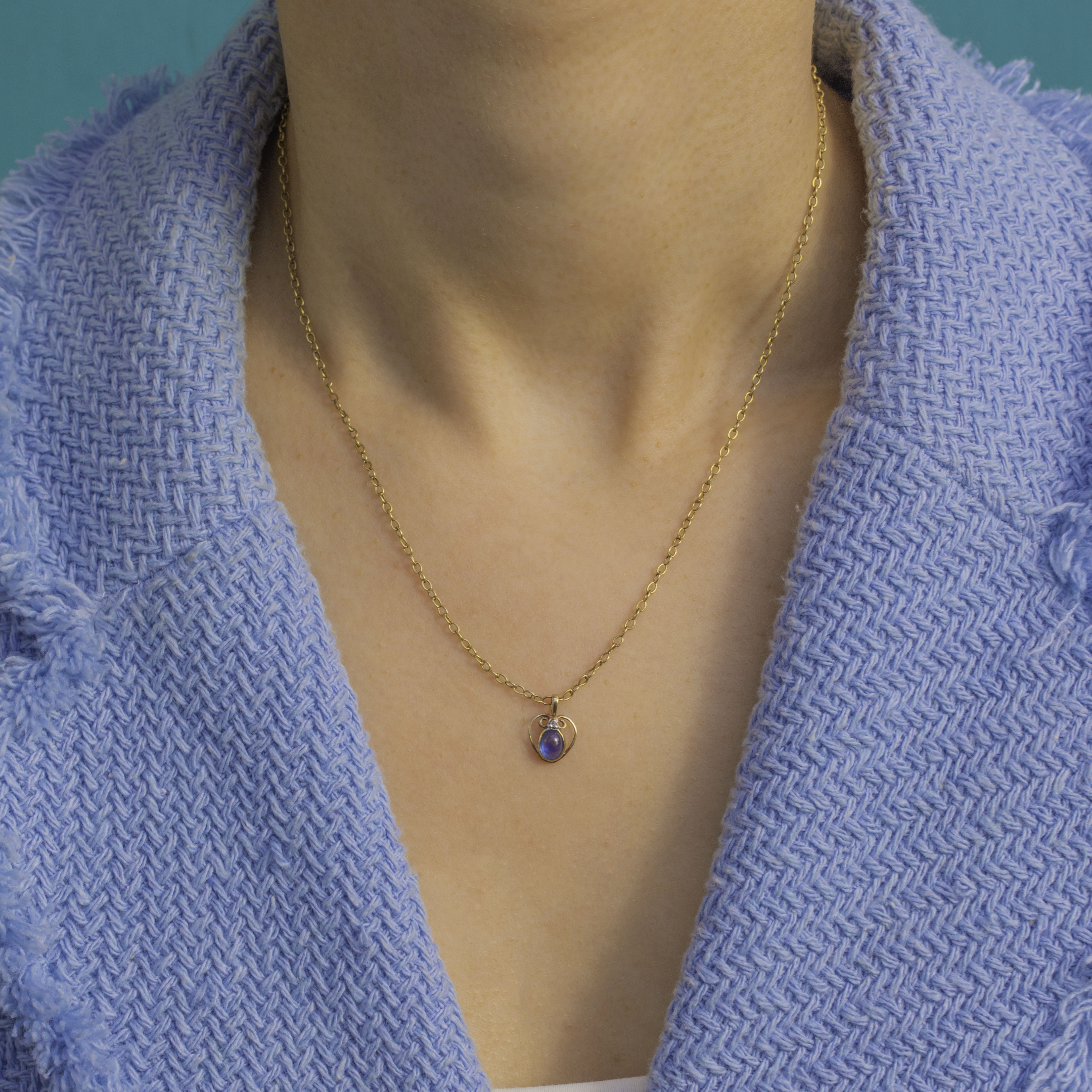 9ct Gold Natural Sapphire Cabochon Diamond Heart Charm