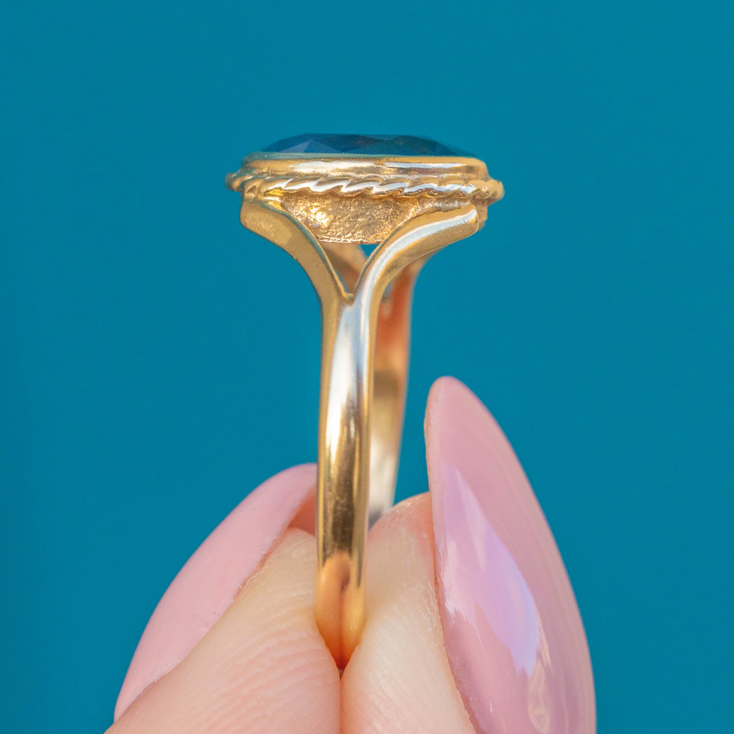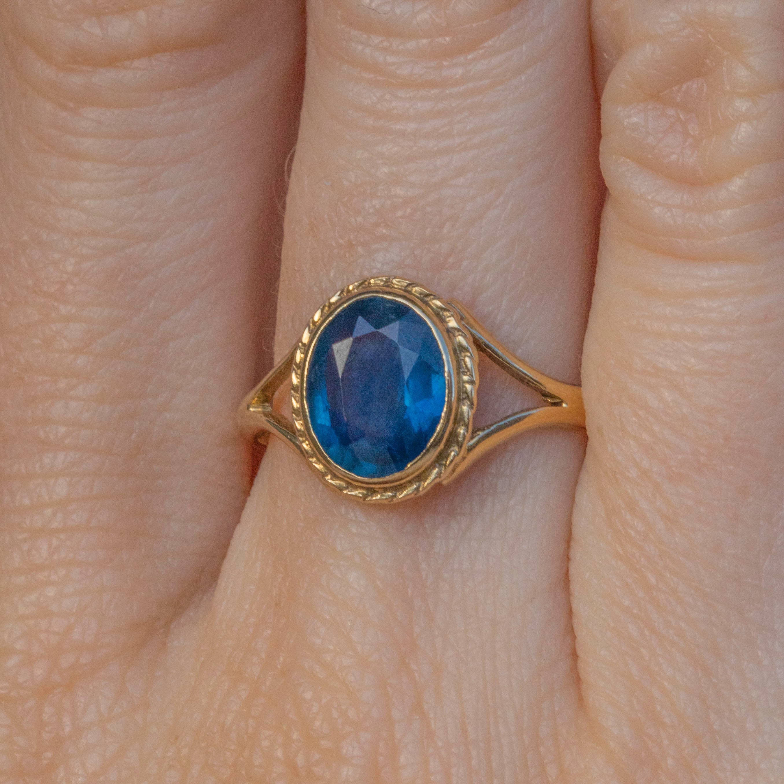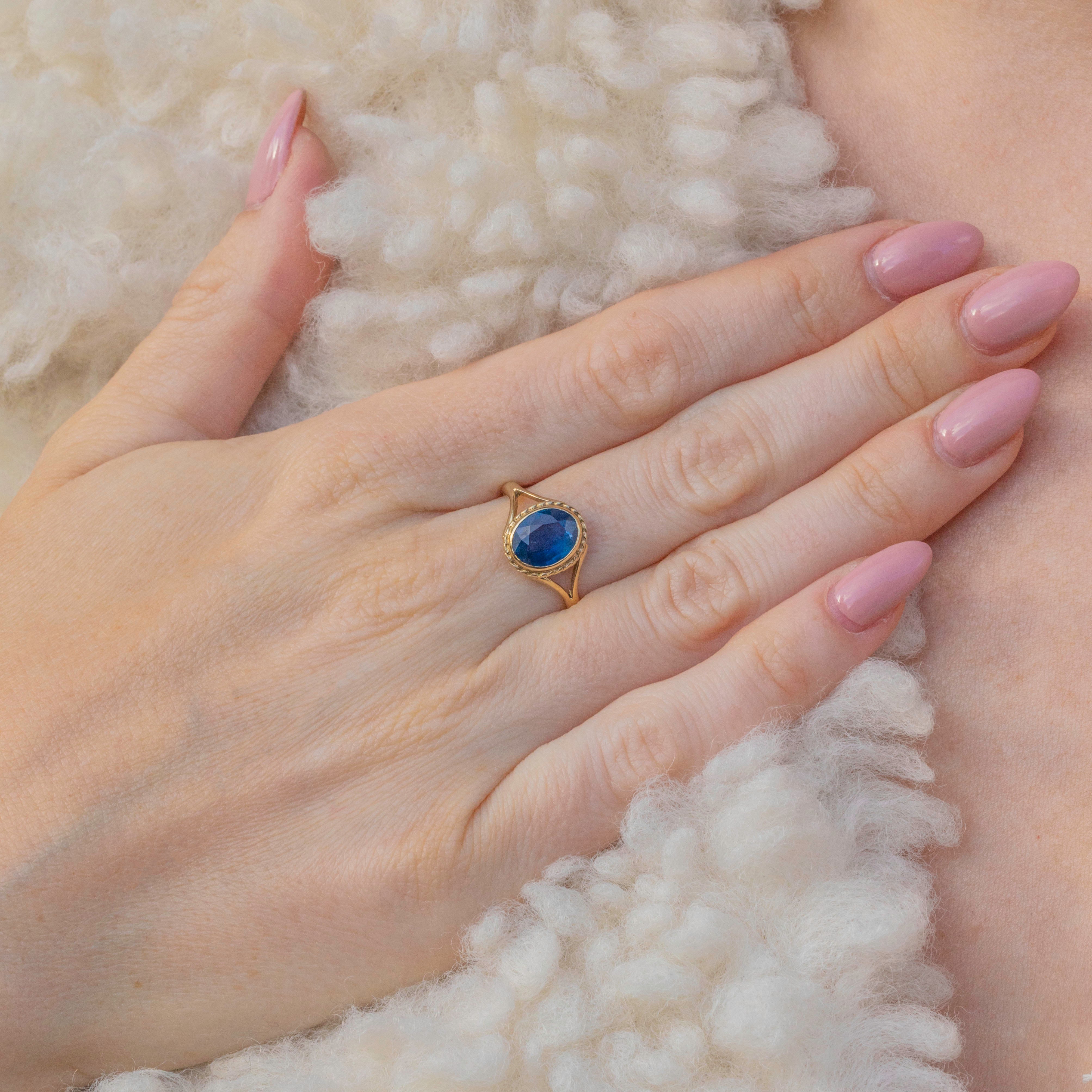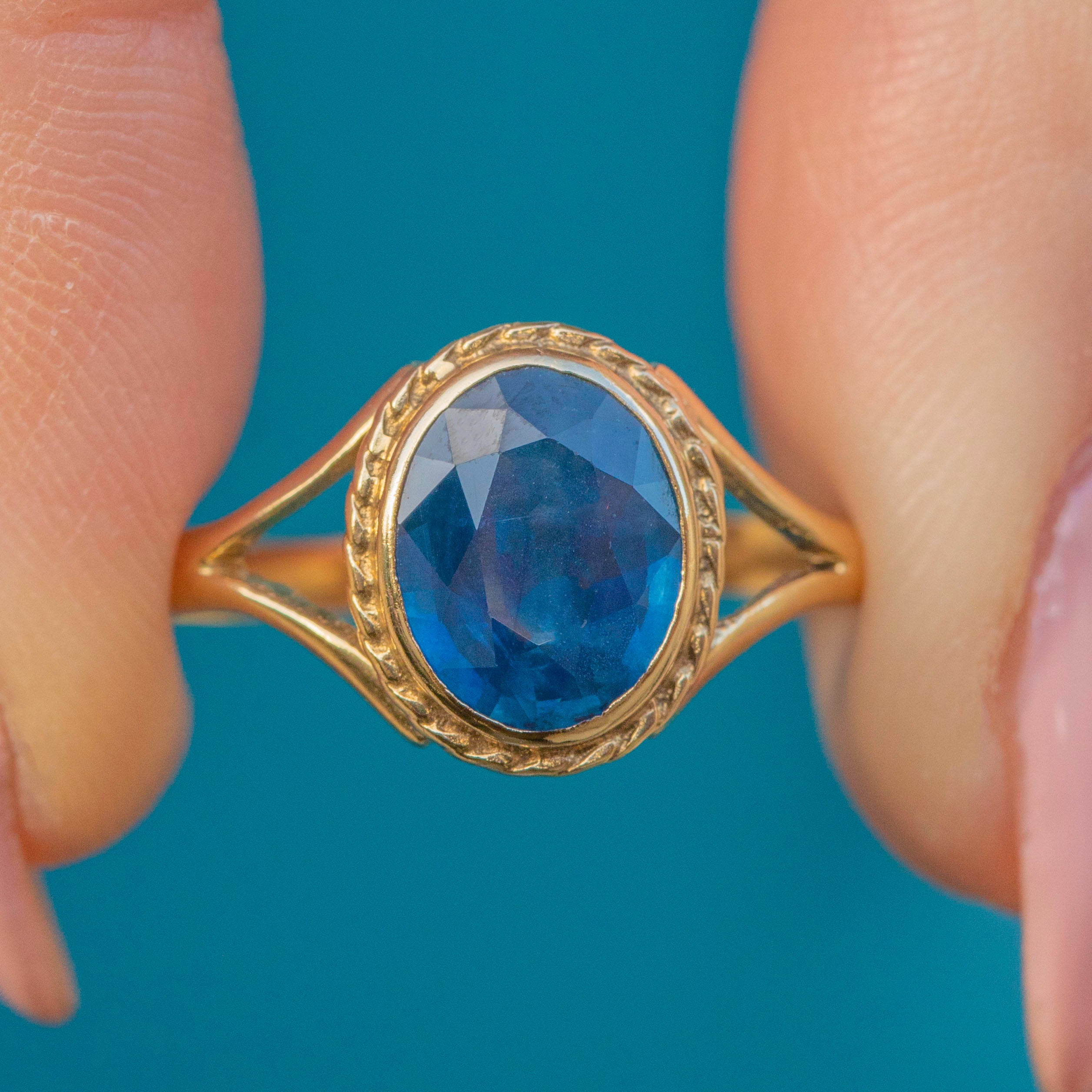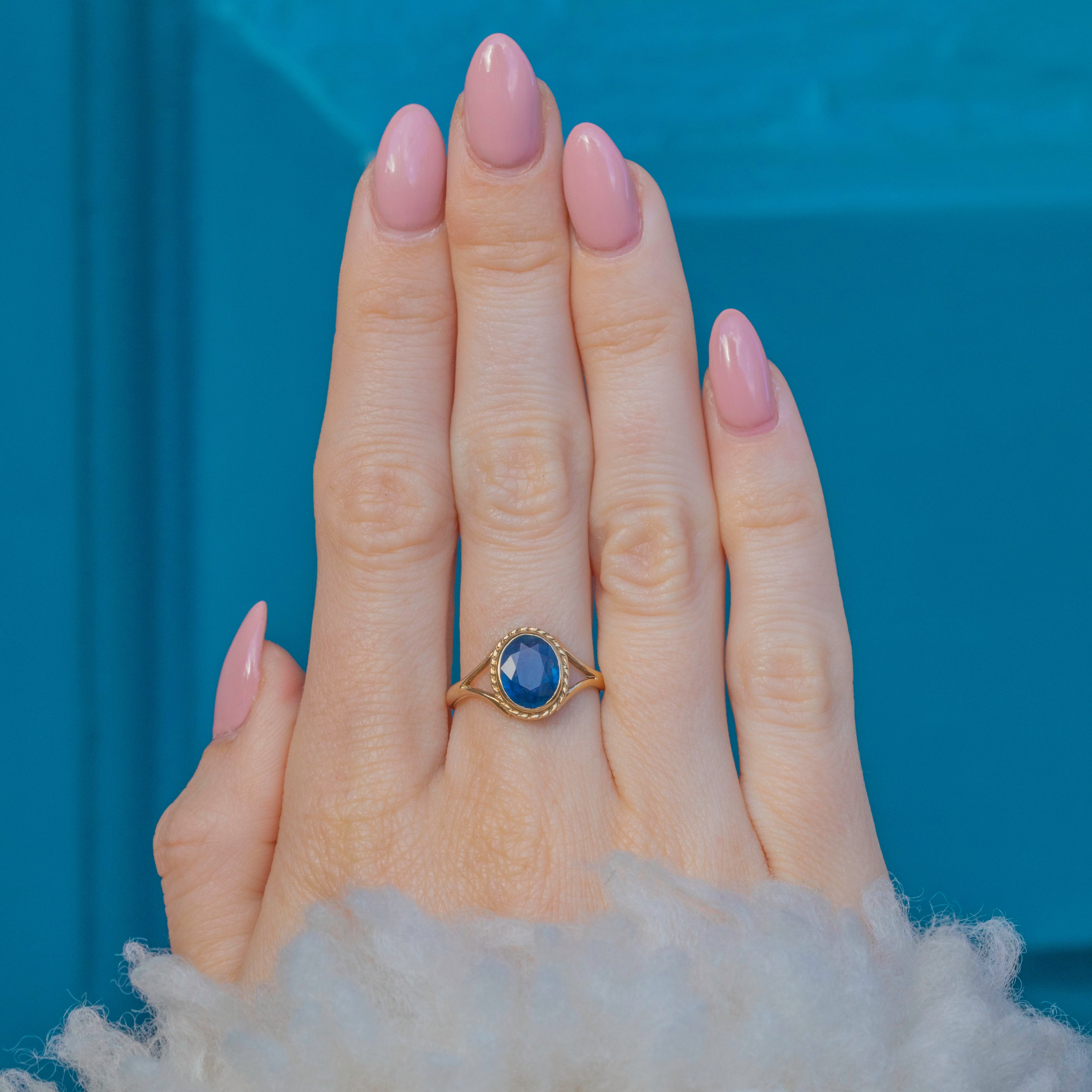 The rich, oval-cut Sapphire is set in an elegant bezel with a rope border, offering a timeless versatility that is perfect for any occasion. Whether you were born in September or simply love classic pieces of vintage jewellery, this Sapphire solitaire ring is a must-have addition to your collection!