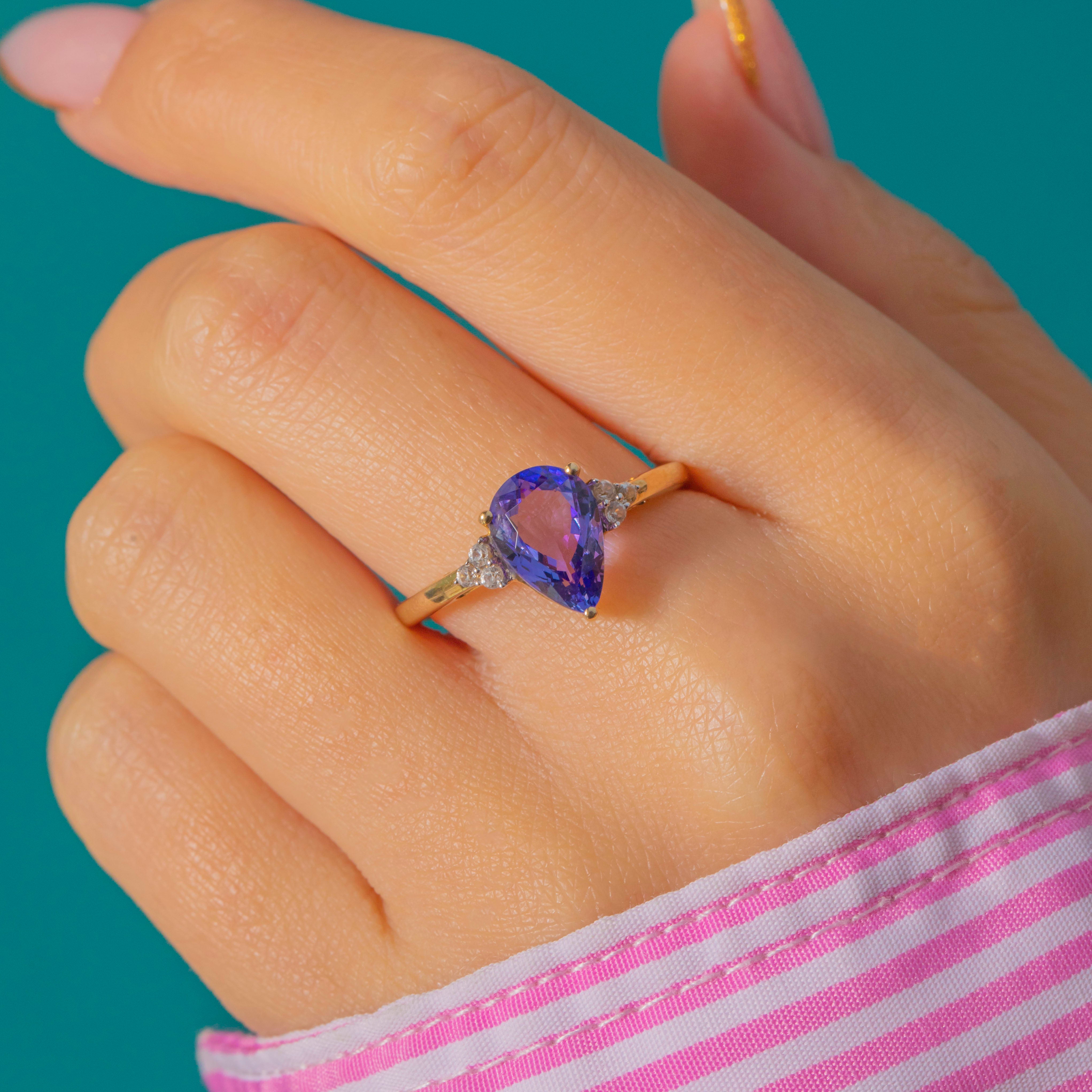 9ct Gold Pear-Shaped Tanzanite Diamond Ring, 1.35ct Tanzanite