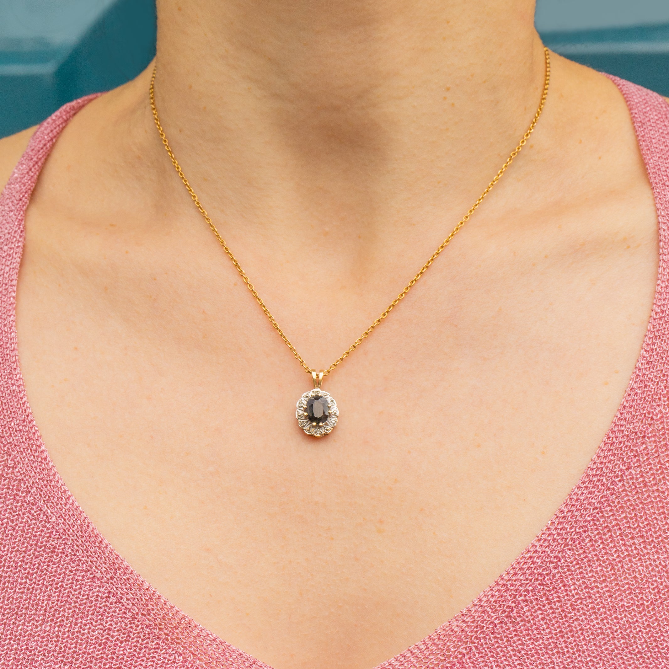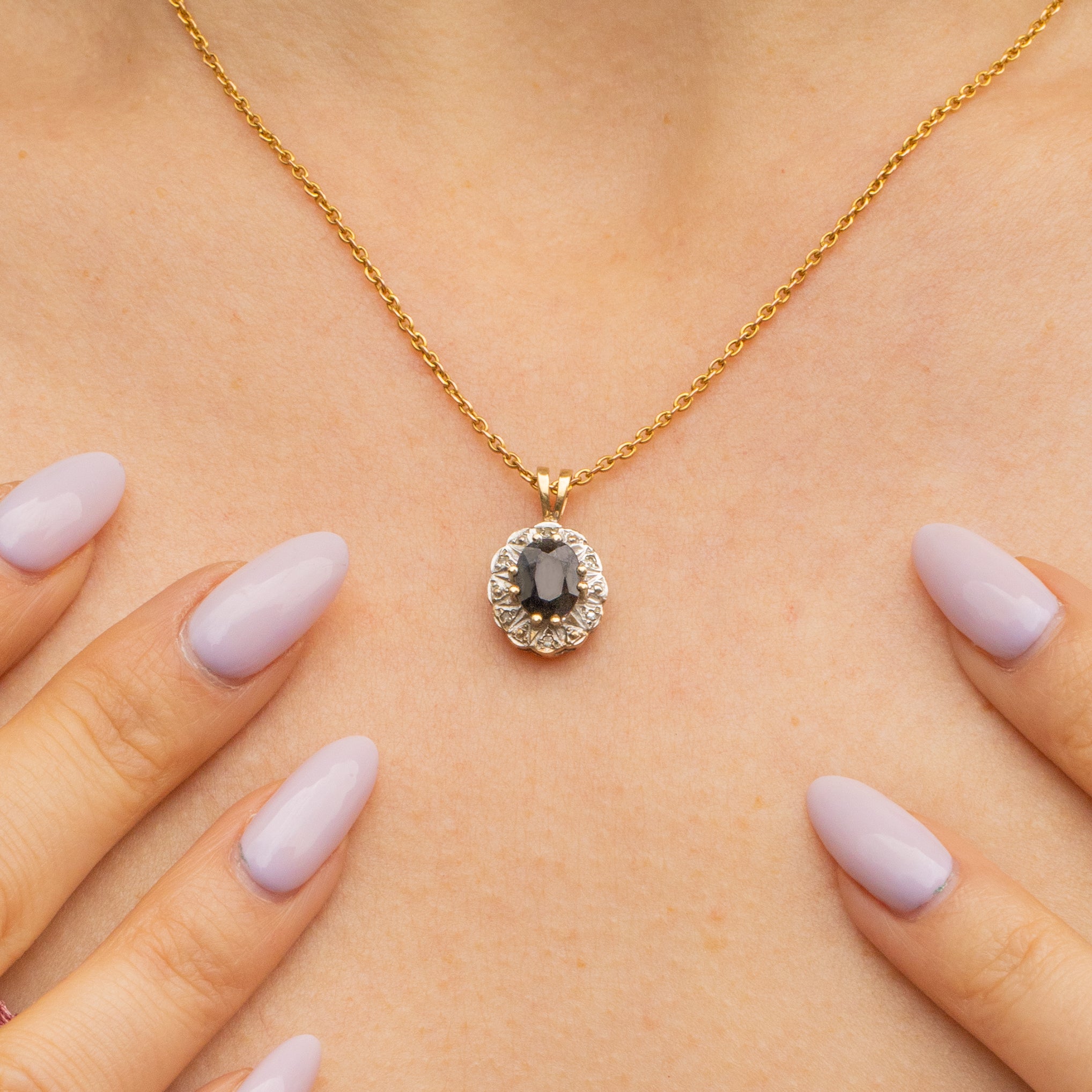 9ct Gold Sapphire & Diamond Cluster Pendant, 0.80ct Sapphire
