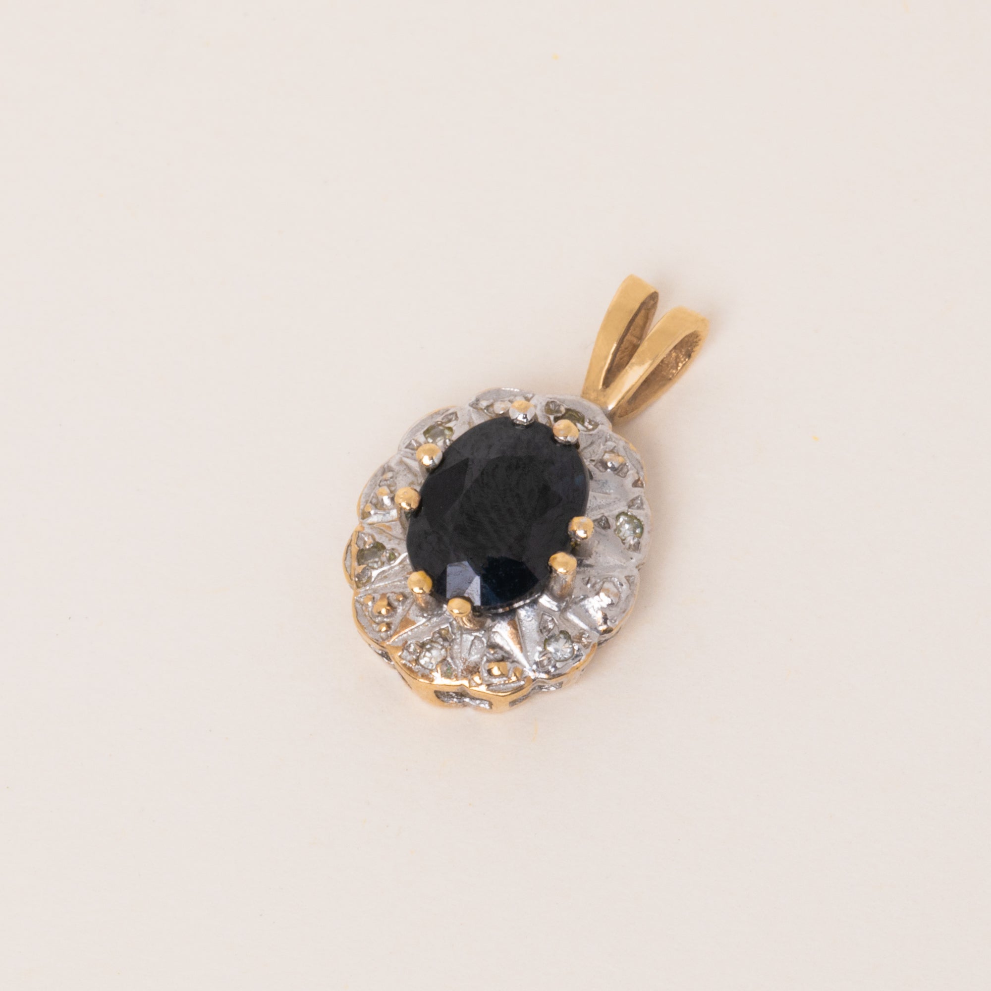 EXCELLENT. We are pleased to present this 9ct Gold Sapphire Diamond cluster charm in mint condition! The Sapphire and surrounding Diamonds are secure within their settings, with no damage to note. Both the white and yellow Gold have retained great form and the bale is securely soldered to the main body. This Vintage charm will become your new go-to piece!