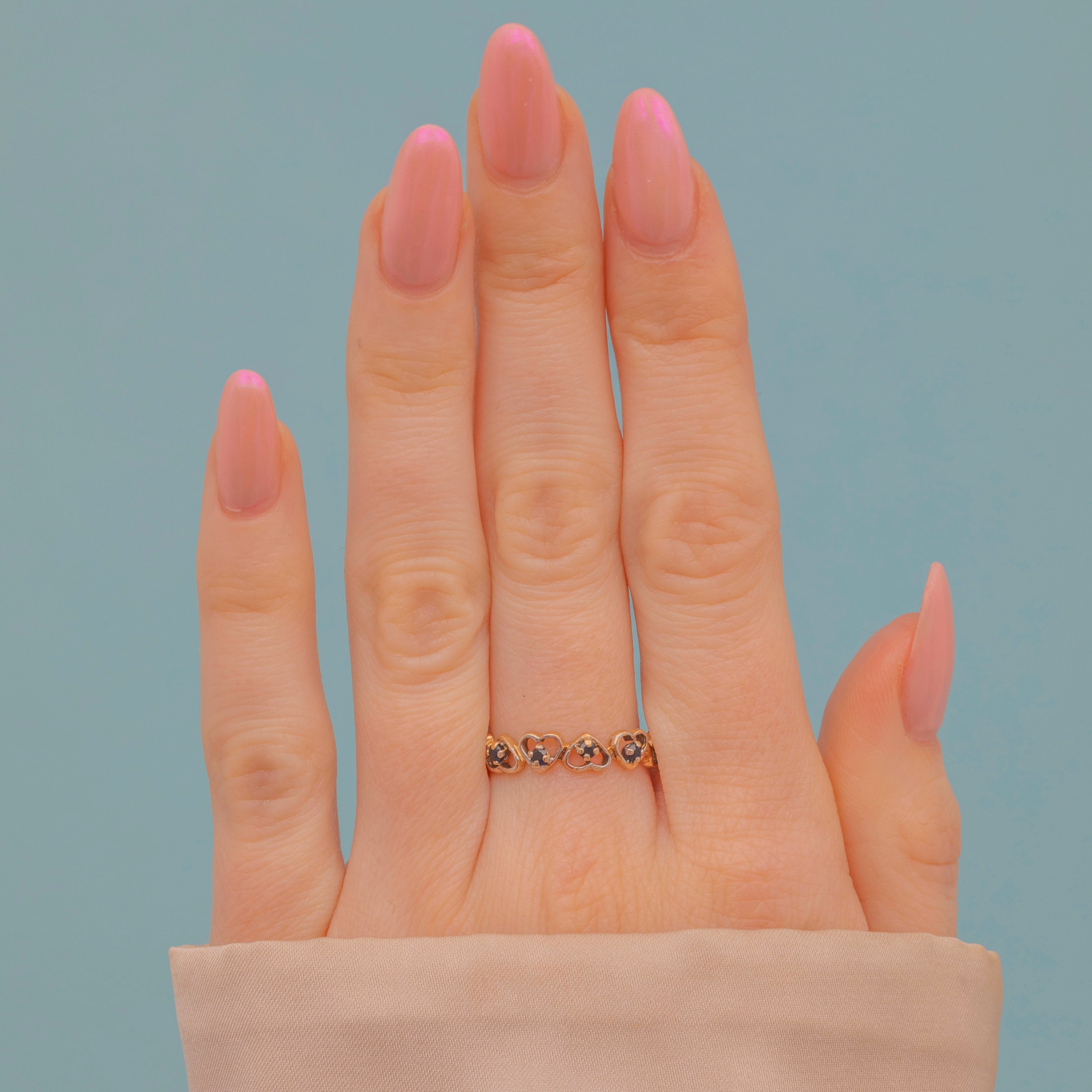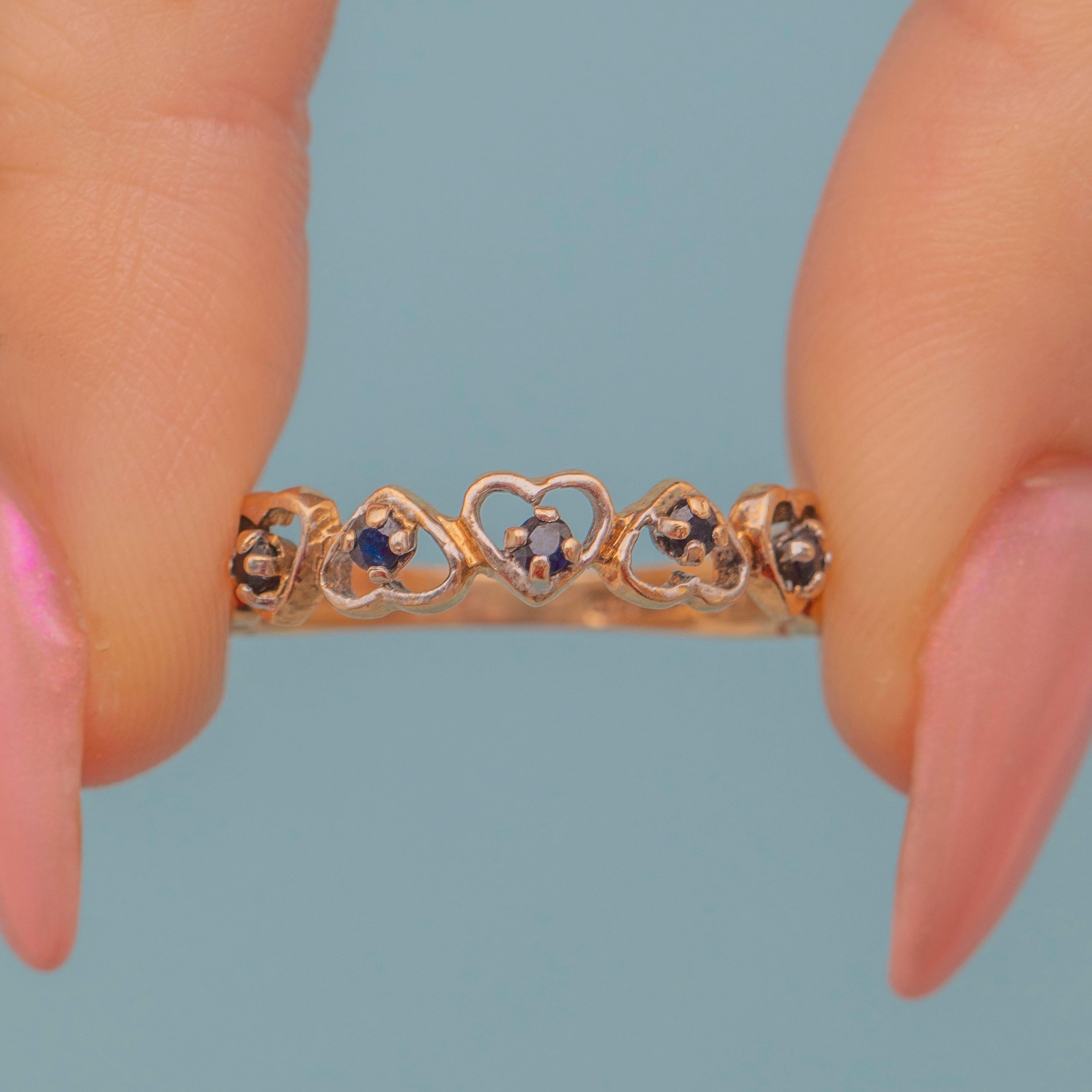 This 9ct Gold Sapphire heart half-eternity ring is a must have for those who love a good ring stack.