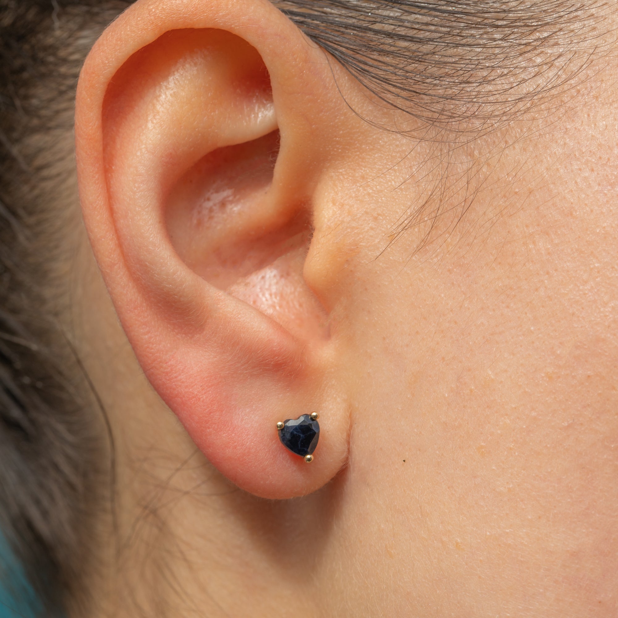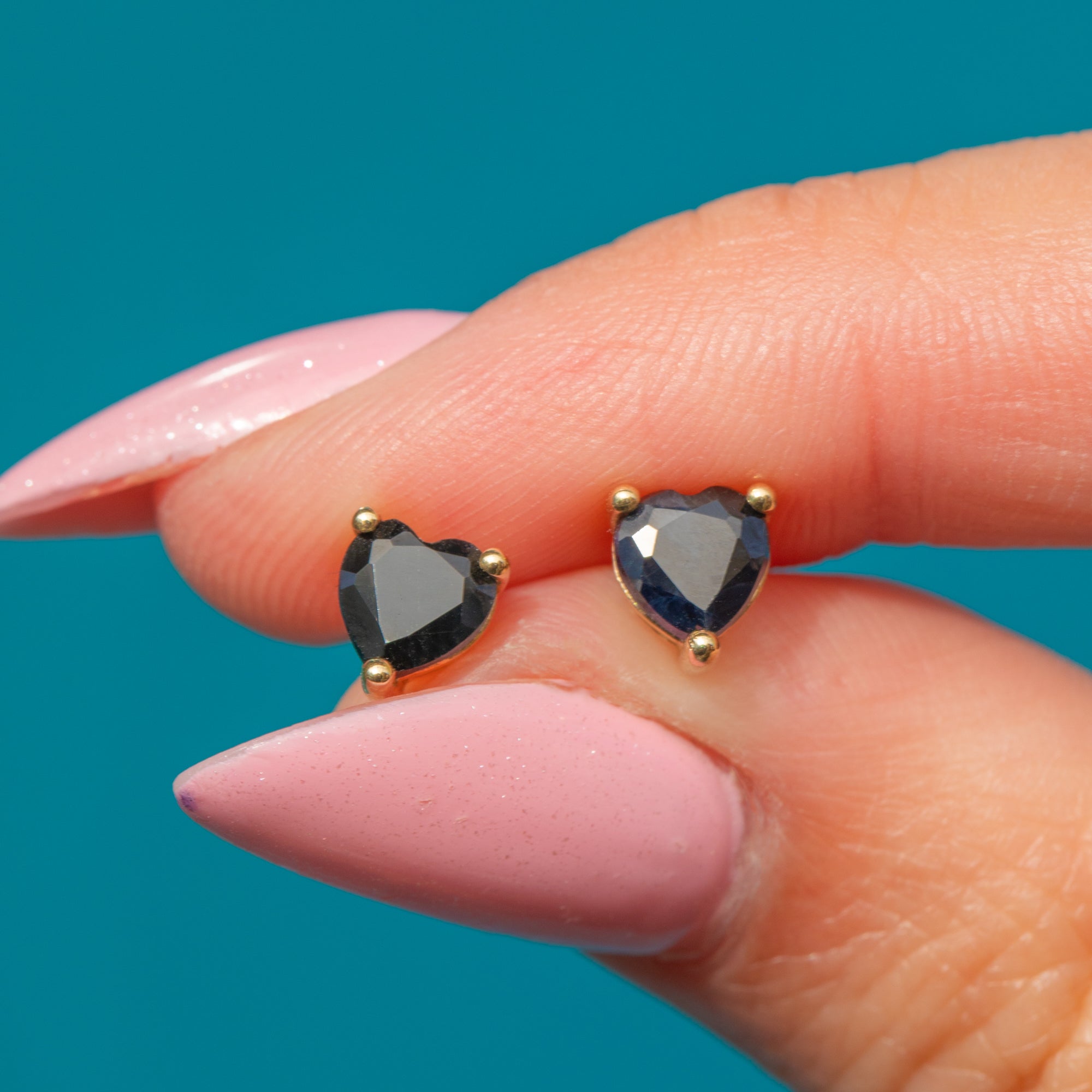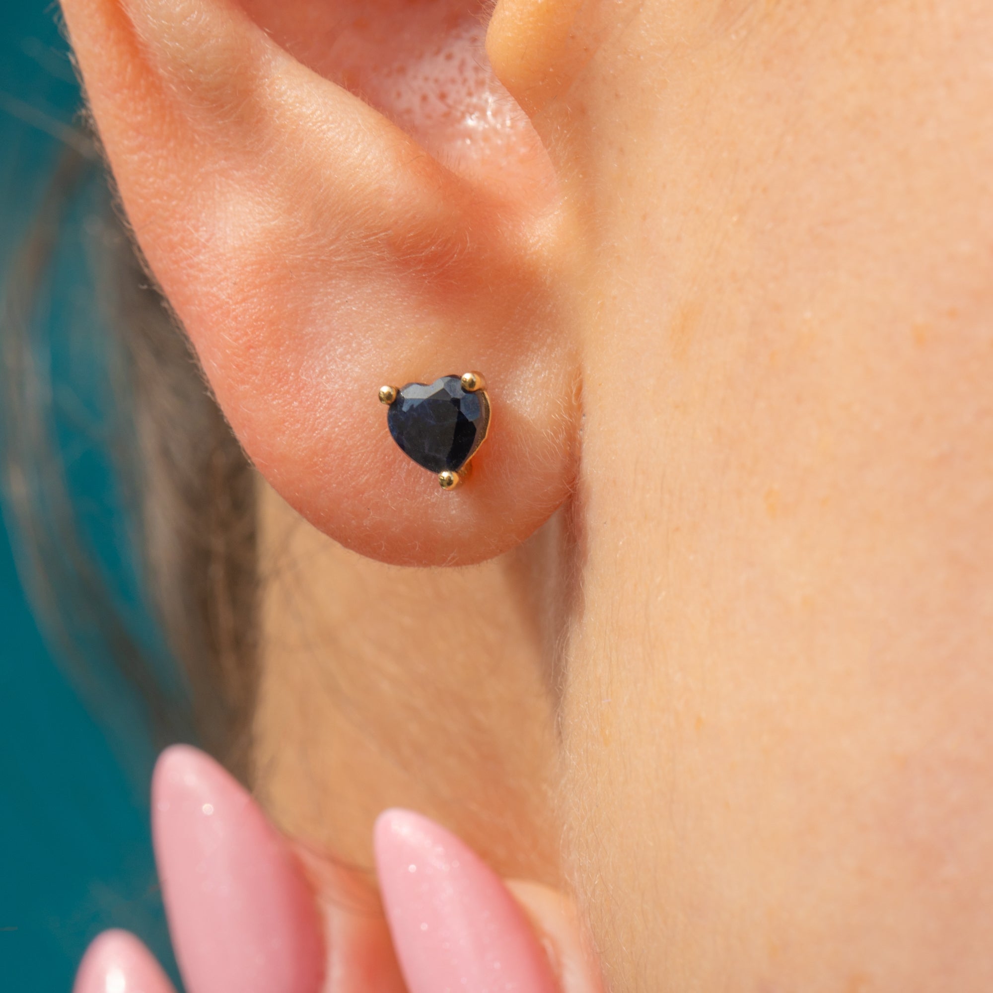 These 9ct Gold Sapphire heart stud earrings are the perfect pair to add a pop of colour and elegance to any attire!