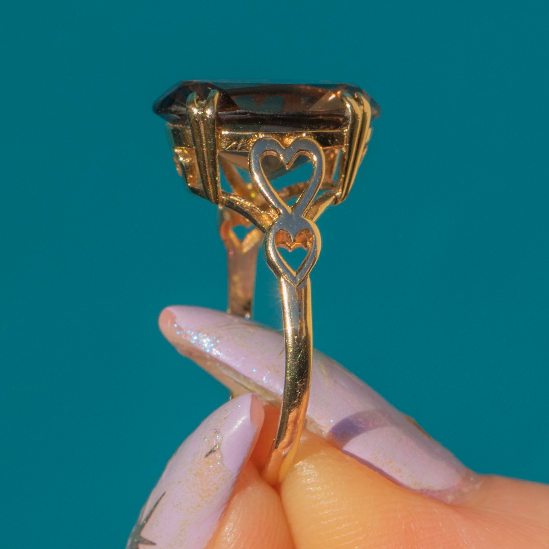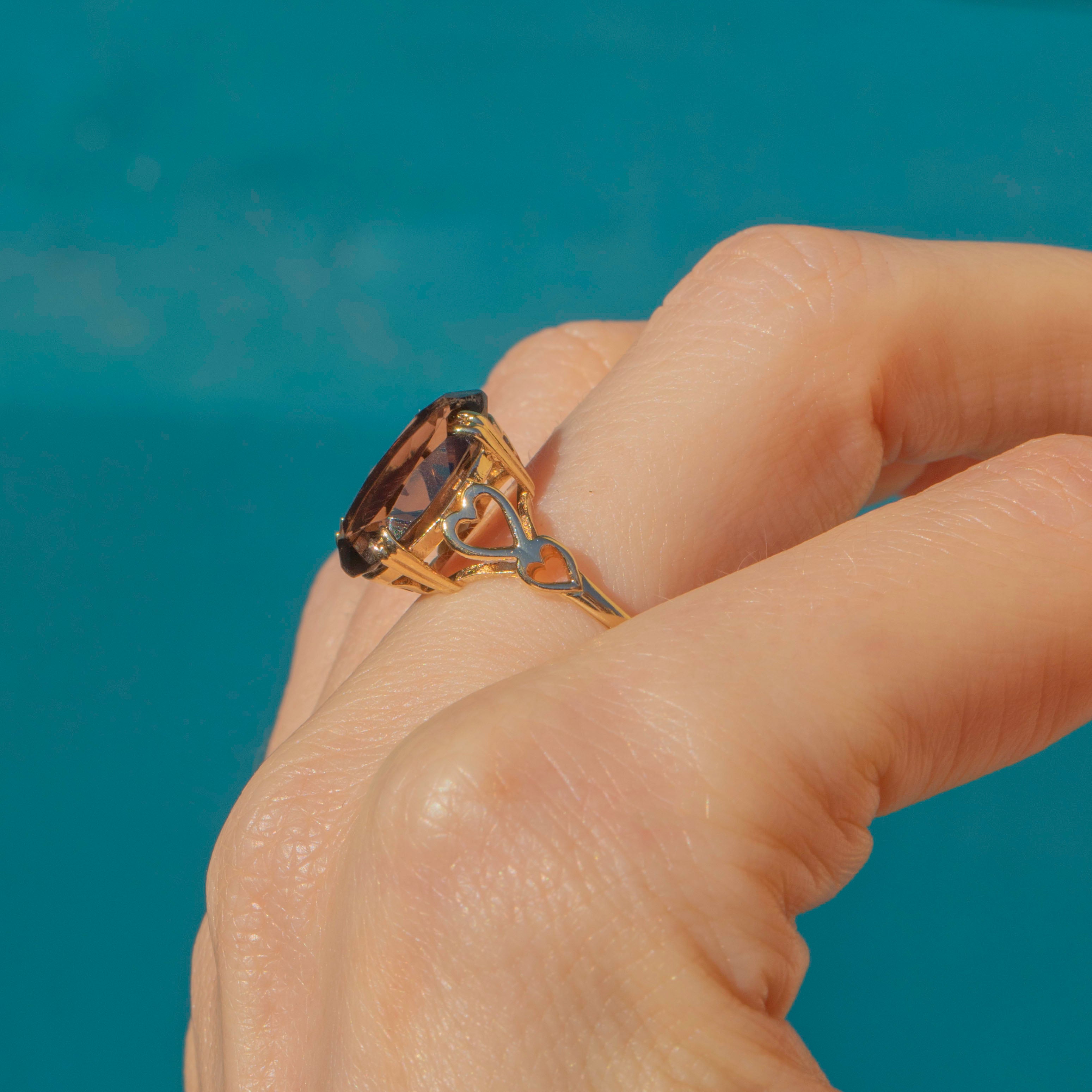 9ct Gold Smokey Quartz Ring, Heart Shoulders