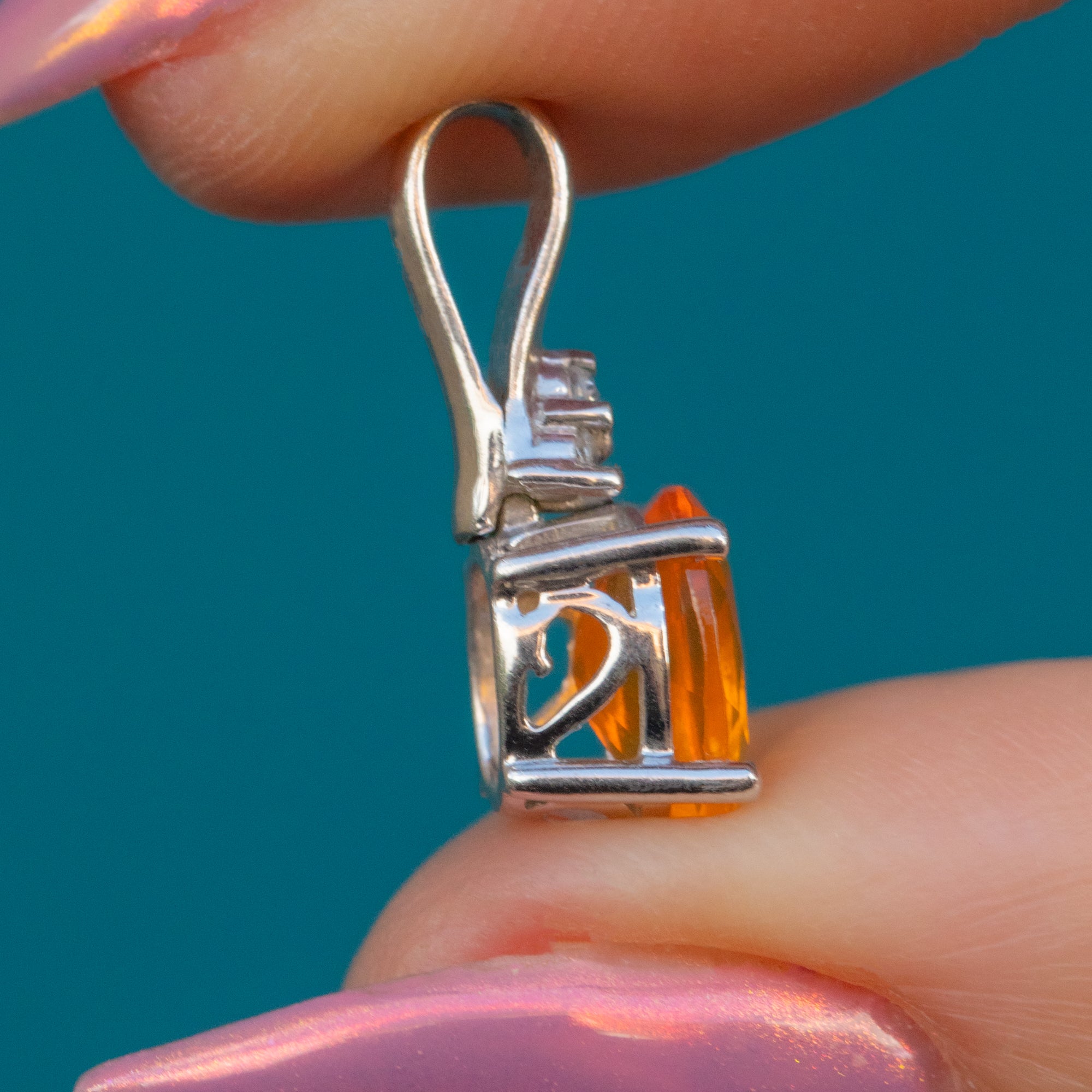 If it's vibrant you're looking for, look no further than this 9ct Gold Spessartine Garnet Diamond charm! The vivid tangerine hue is what gives this Garnet its Spessartine name, and her fiery hues can be seen from afar.
