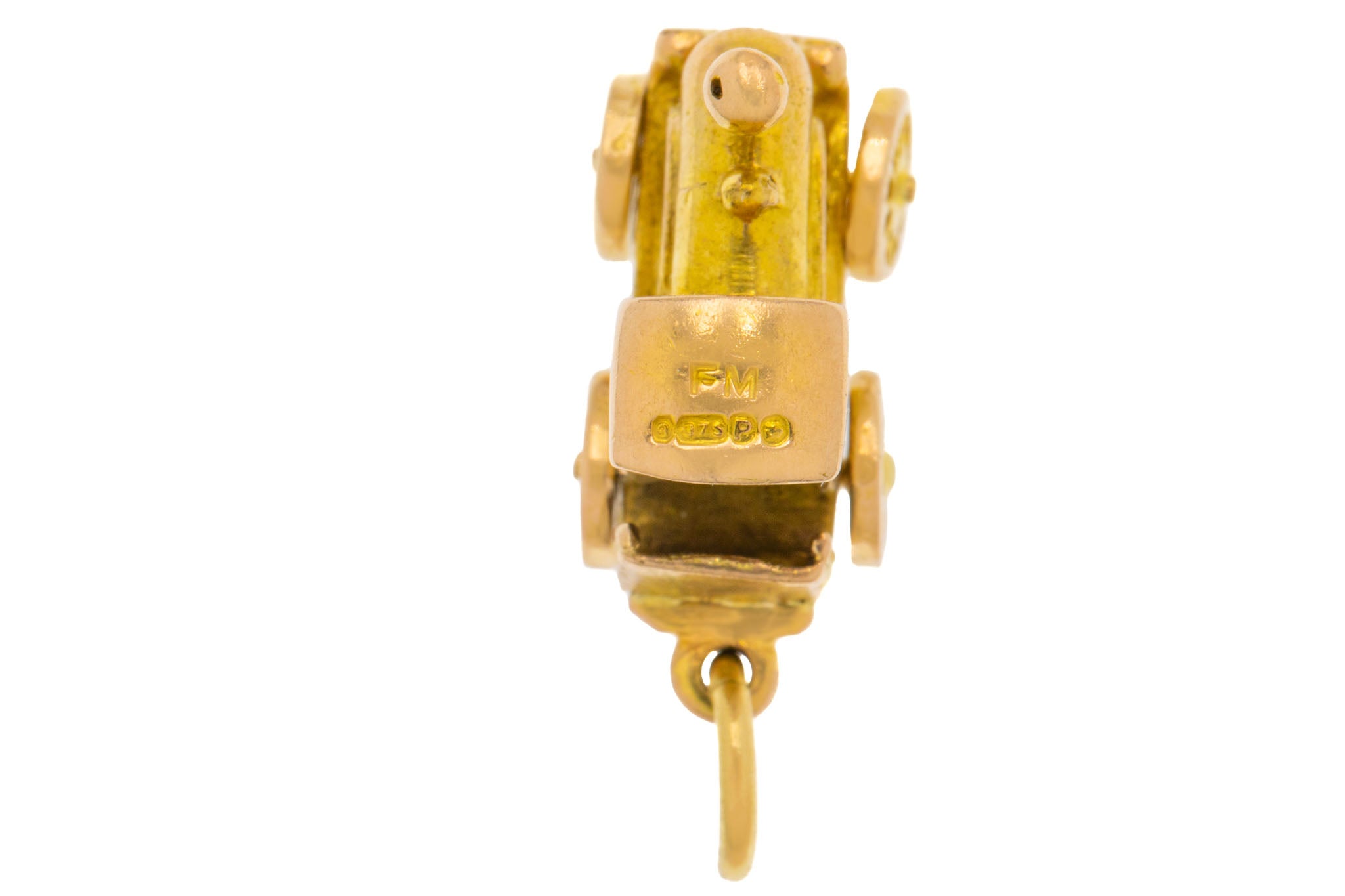 Introducing this very smart 9ct Gold steam train charm! Standing proud, this train pedant is crafted from glossy 9ct Gold and flaunts many charming details. A fun articulating charm, watch how the wheels move.