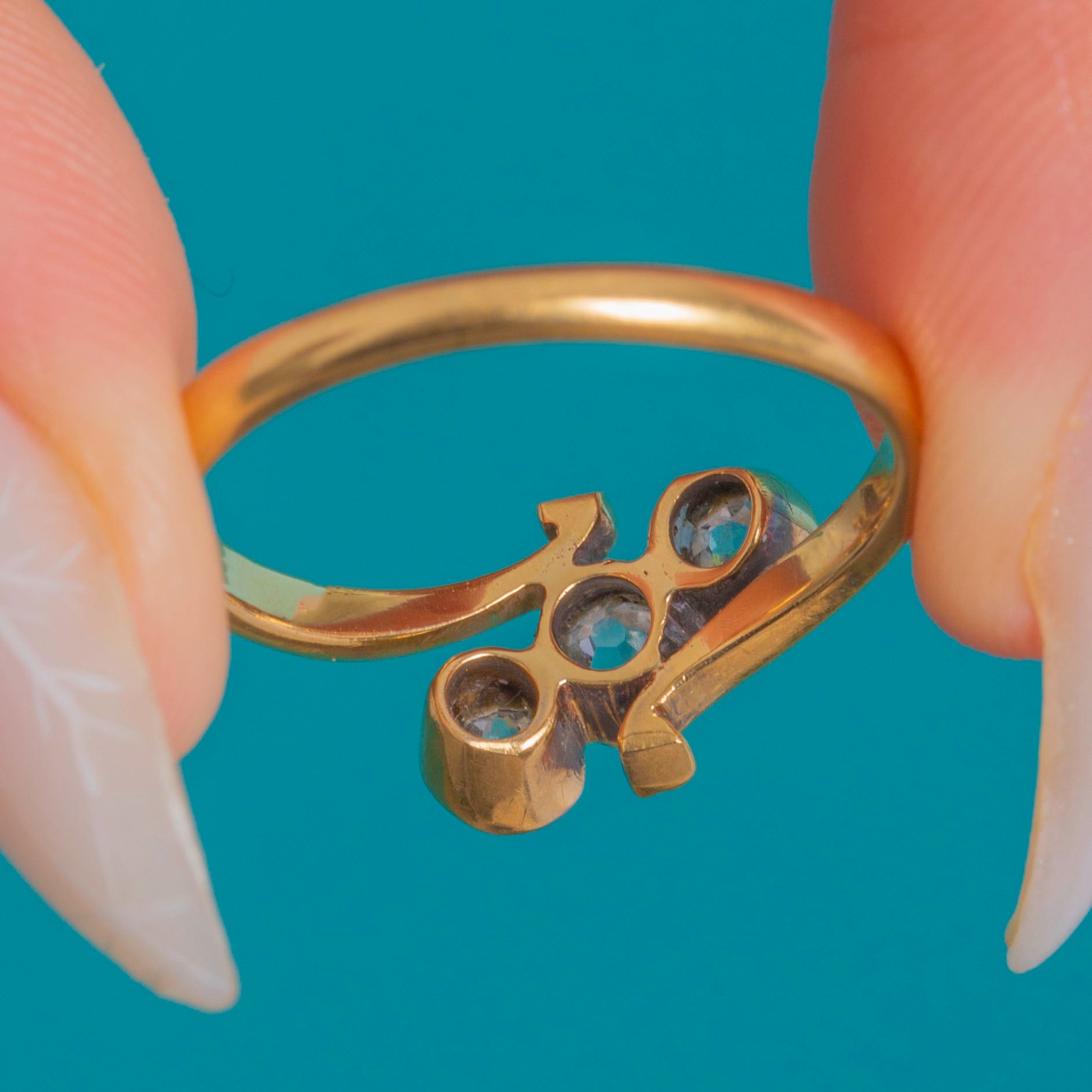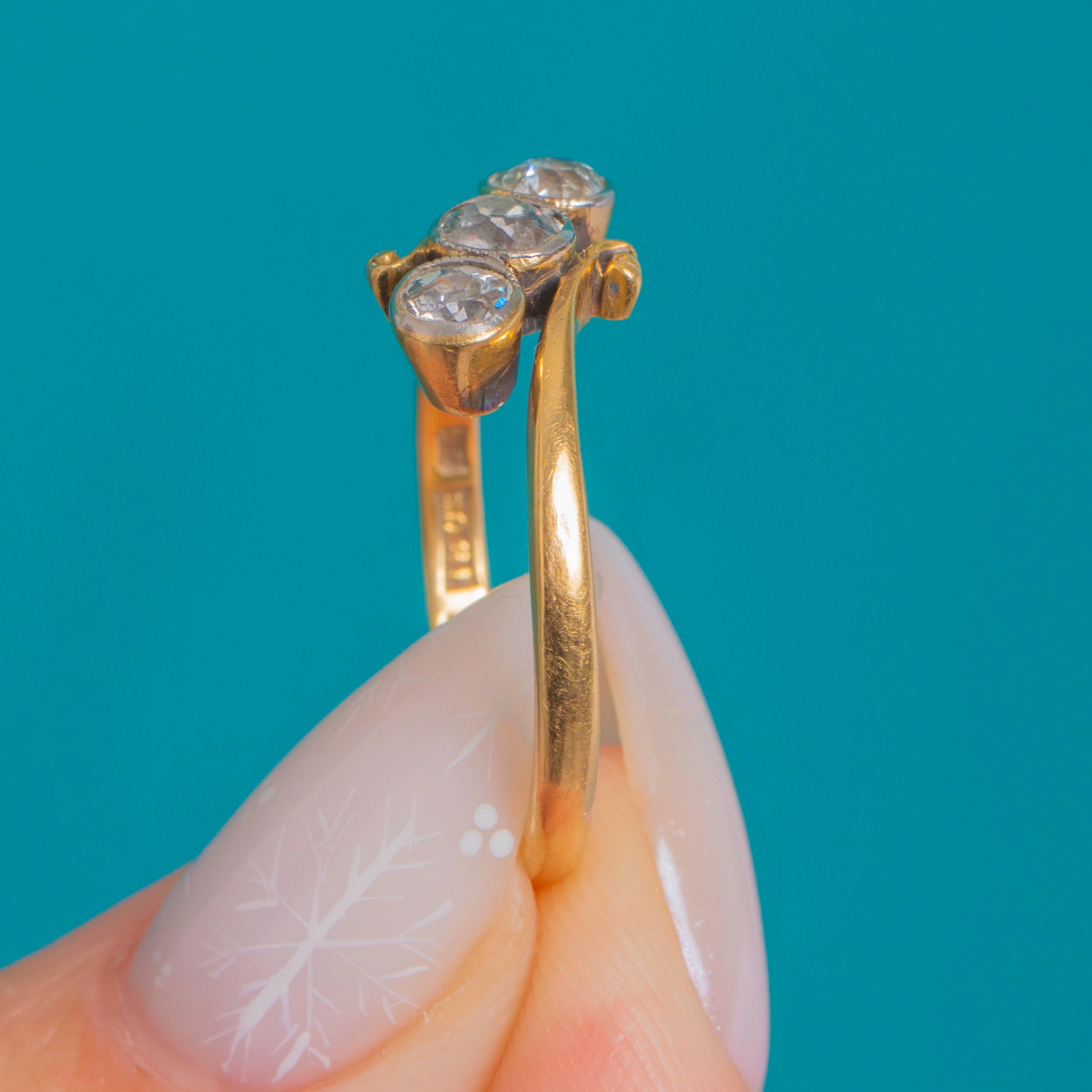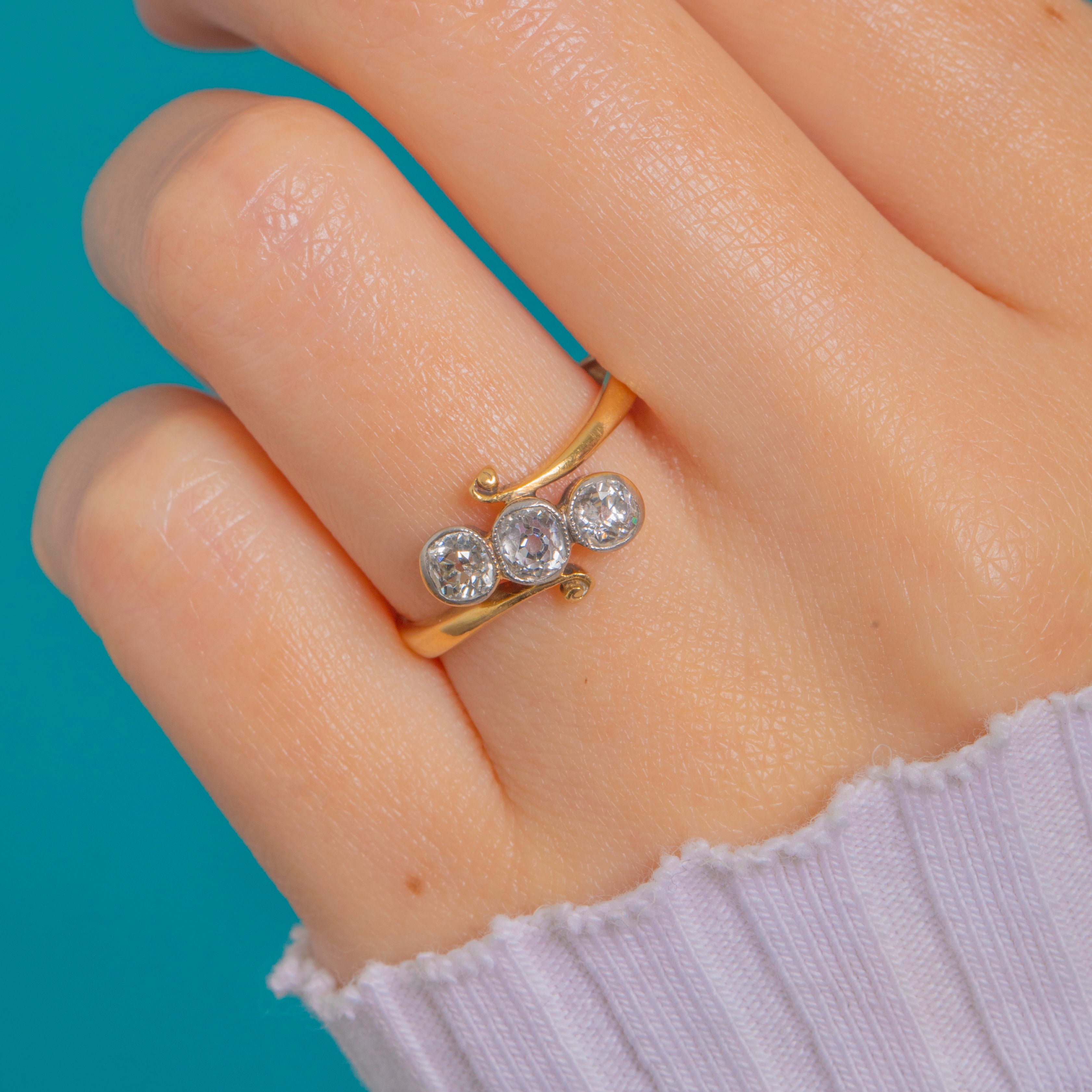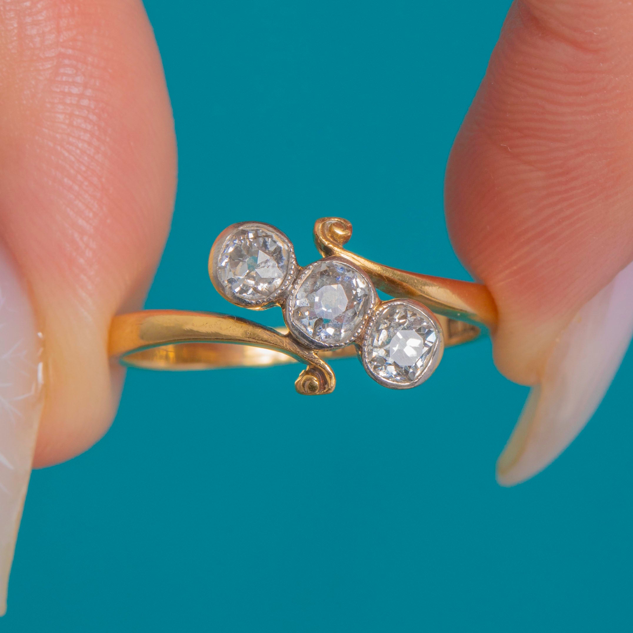 Antique 0.50ct Old Mine Cut Diamond Twist Trilogy Ring - 18ct Gold Item added