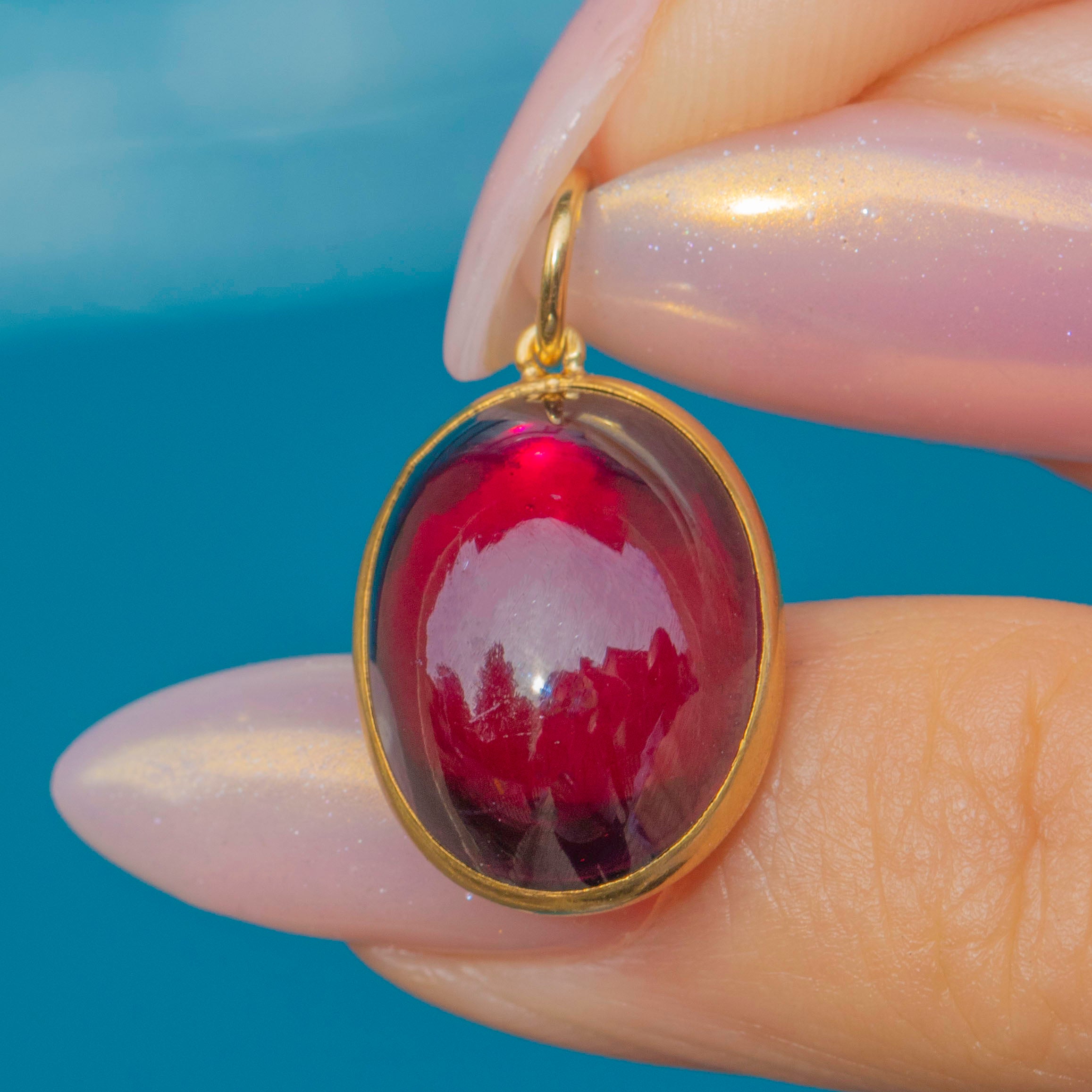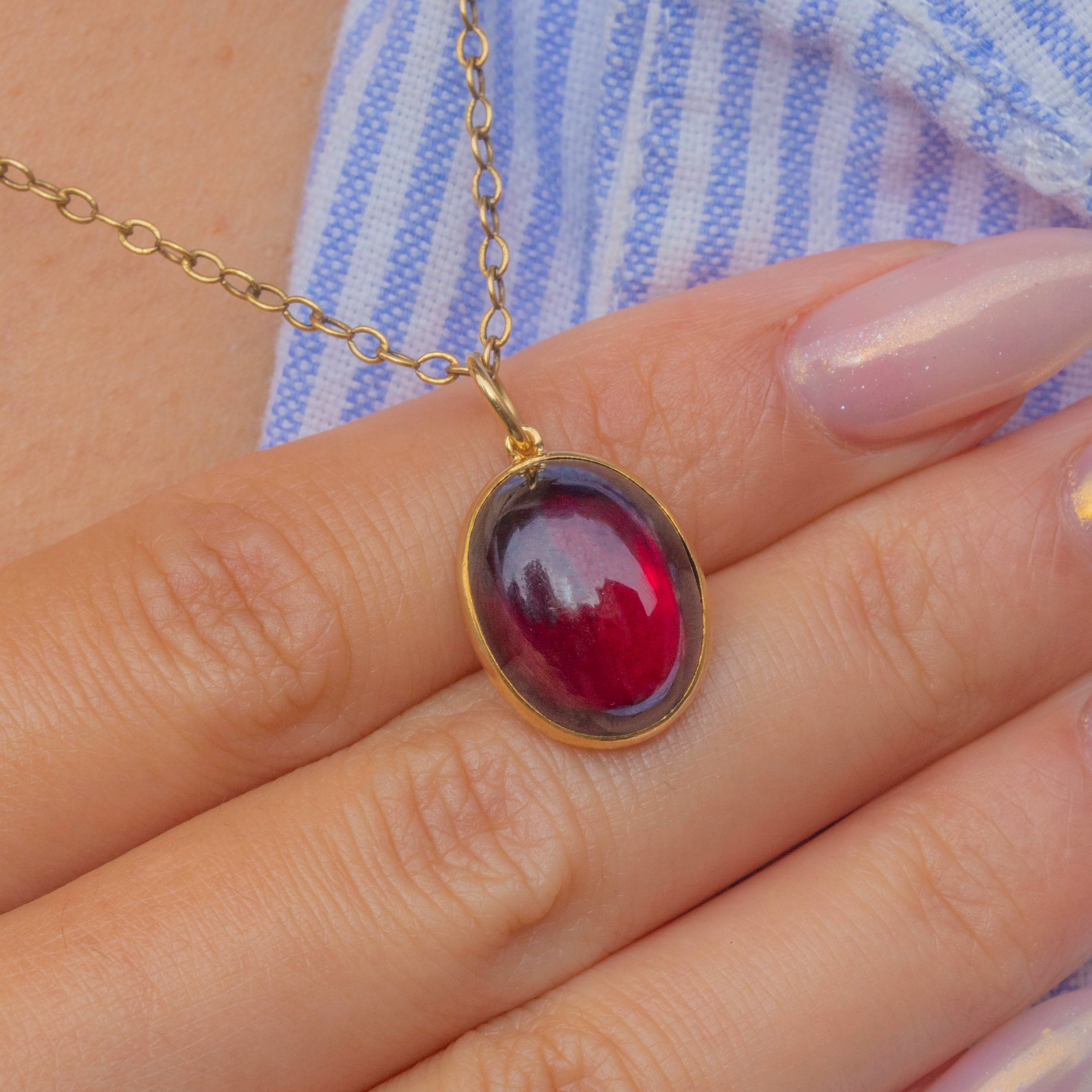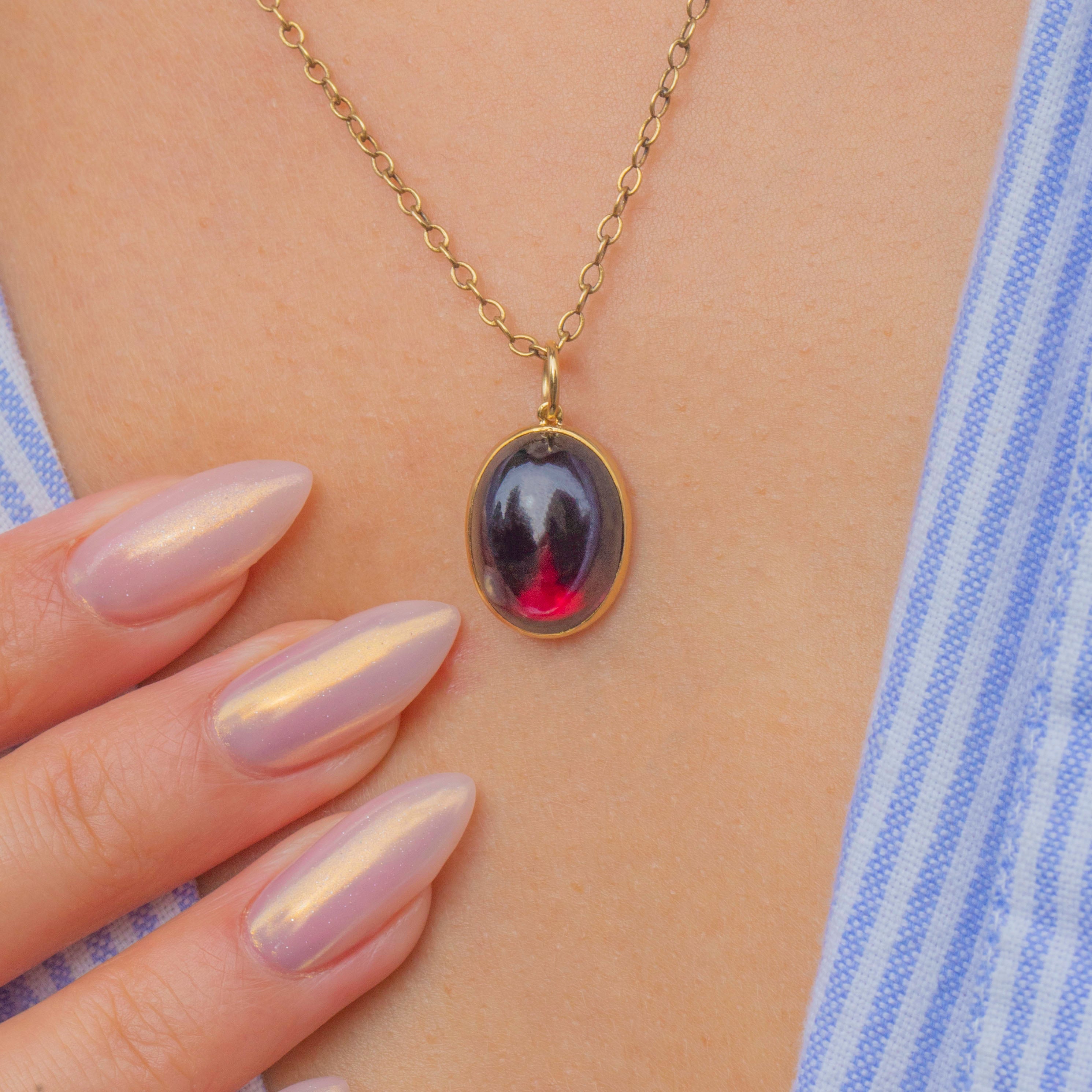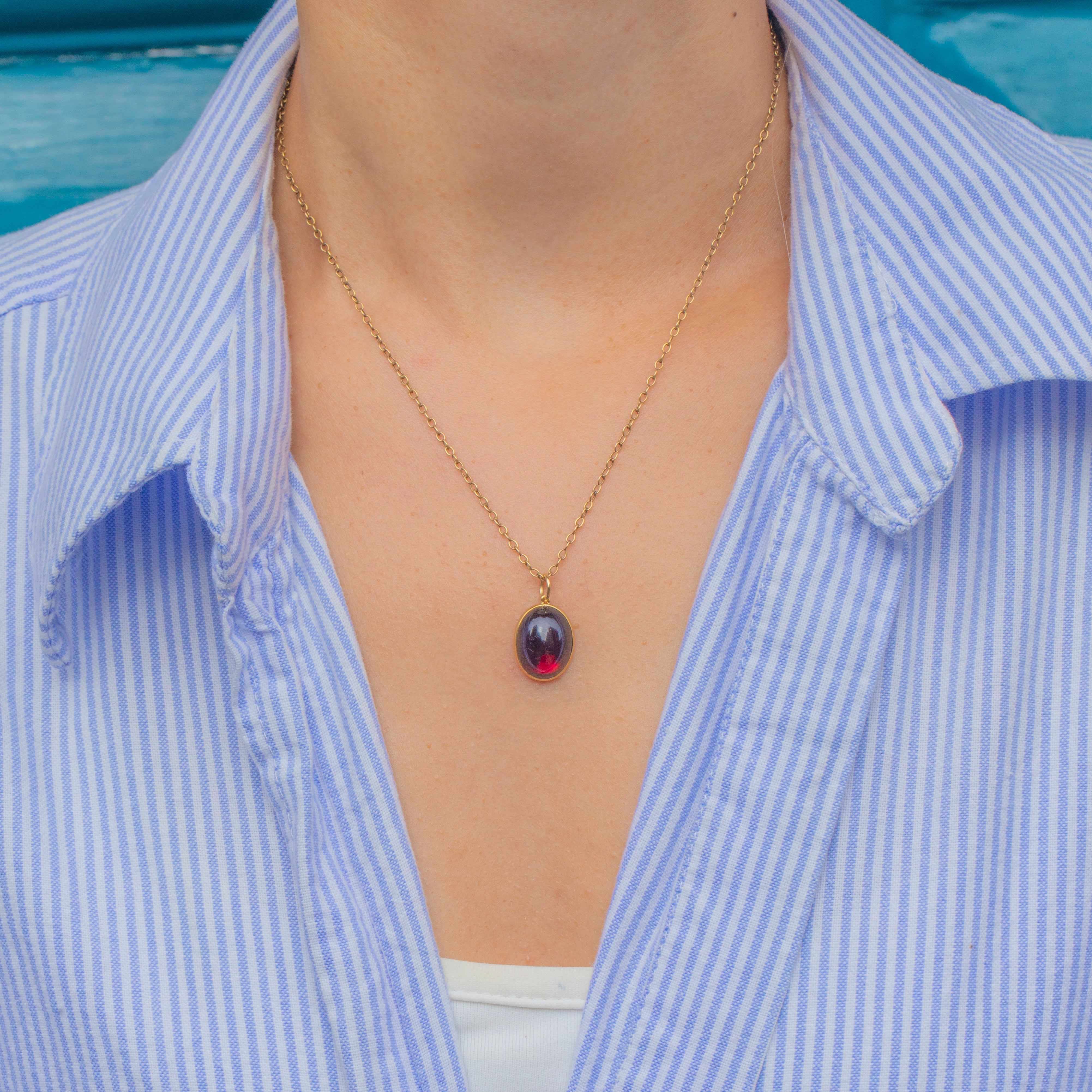 EXCELLENT: The pendant is beautifully preserved. The Garnet cabochon is intact with a deep, vibrant colour, and the 14ct Gold setting is secure with minimal signs of age-related wear. A fine example of Victorian jewellery, ready to wear and enjoy.