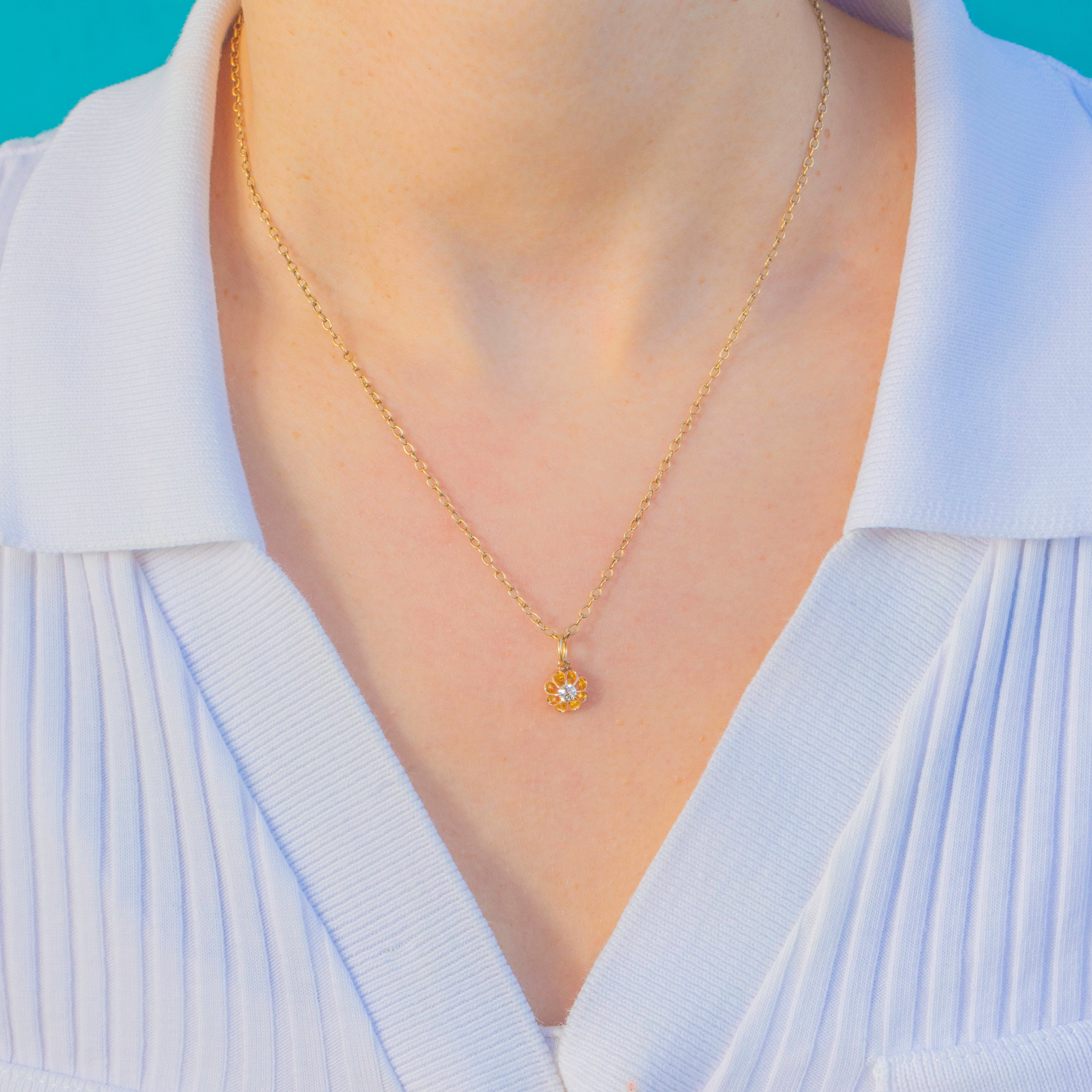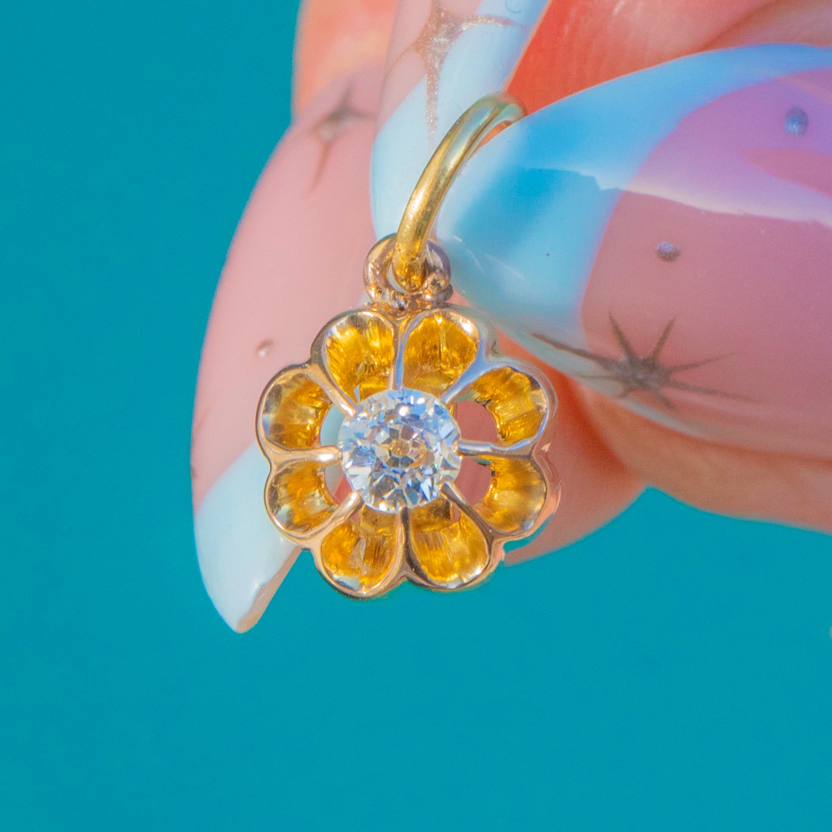 Antique 14ct Gold Old Mine Cut Diamond Buttercup Charm