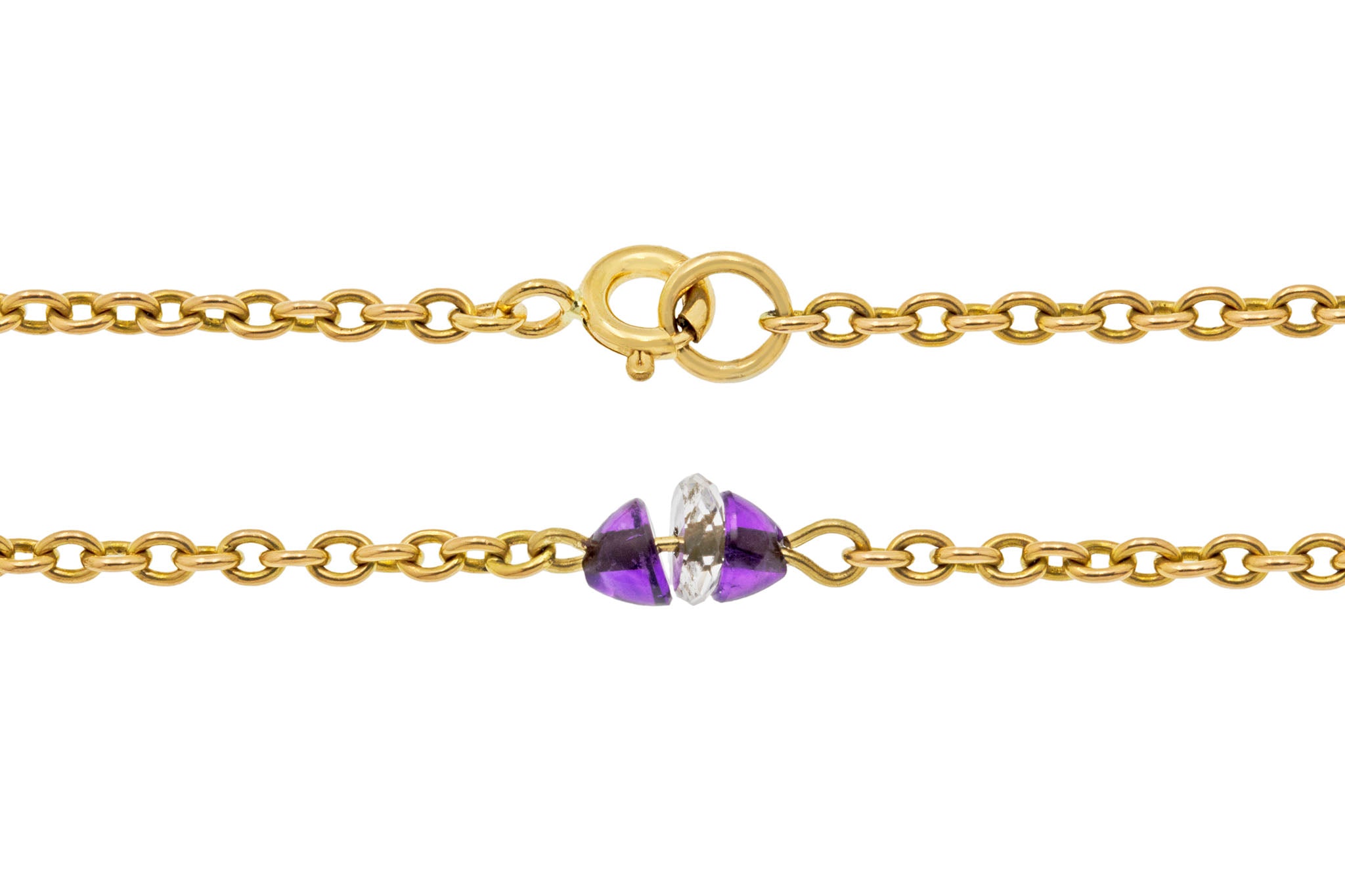 16" Antique 15ct Gold Amethyst Rock Crystal Integral Necklace