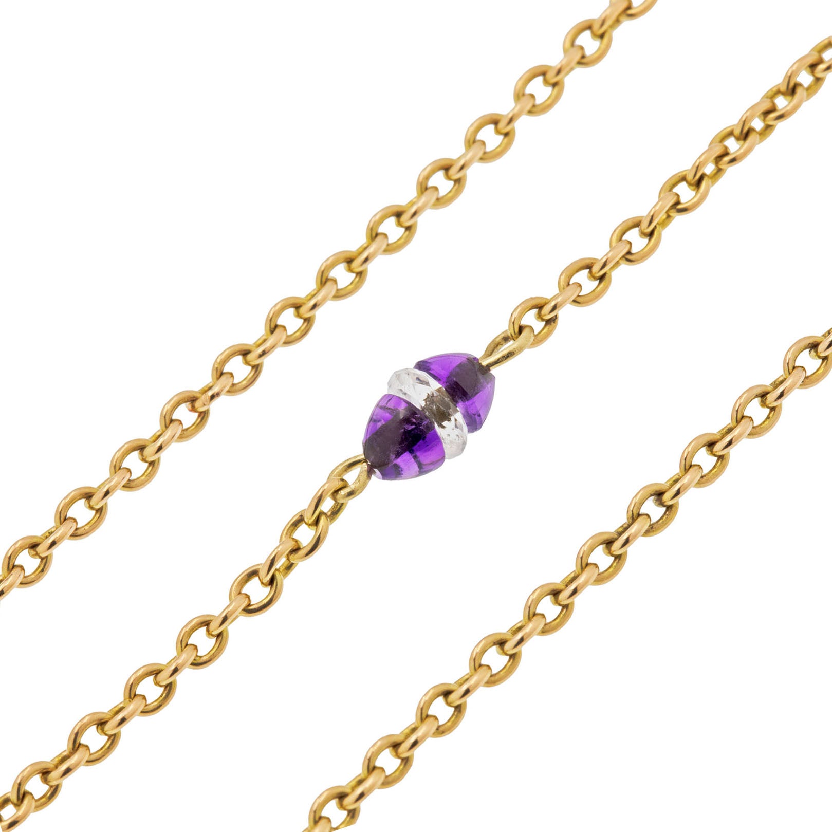 MATERIALS: Tests as 15ct Gold chain, 18ct Gold bolt-ring & jump-ring, Amethyst, Rock Crystal.
