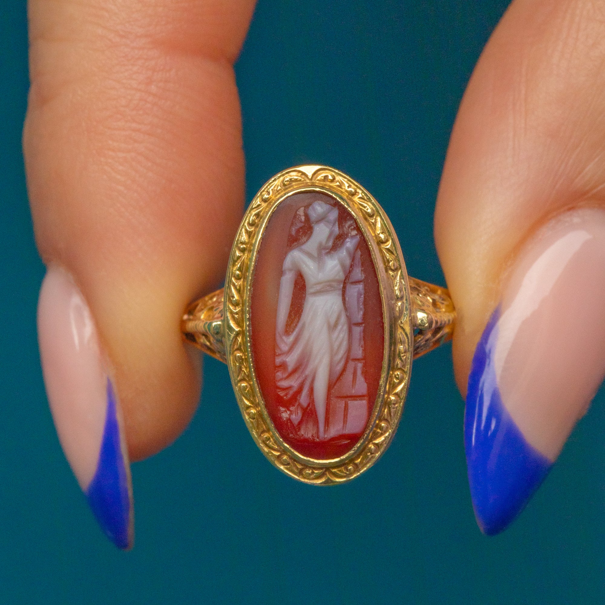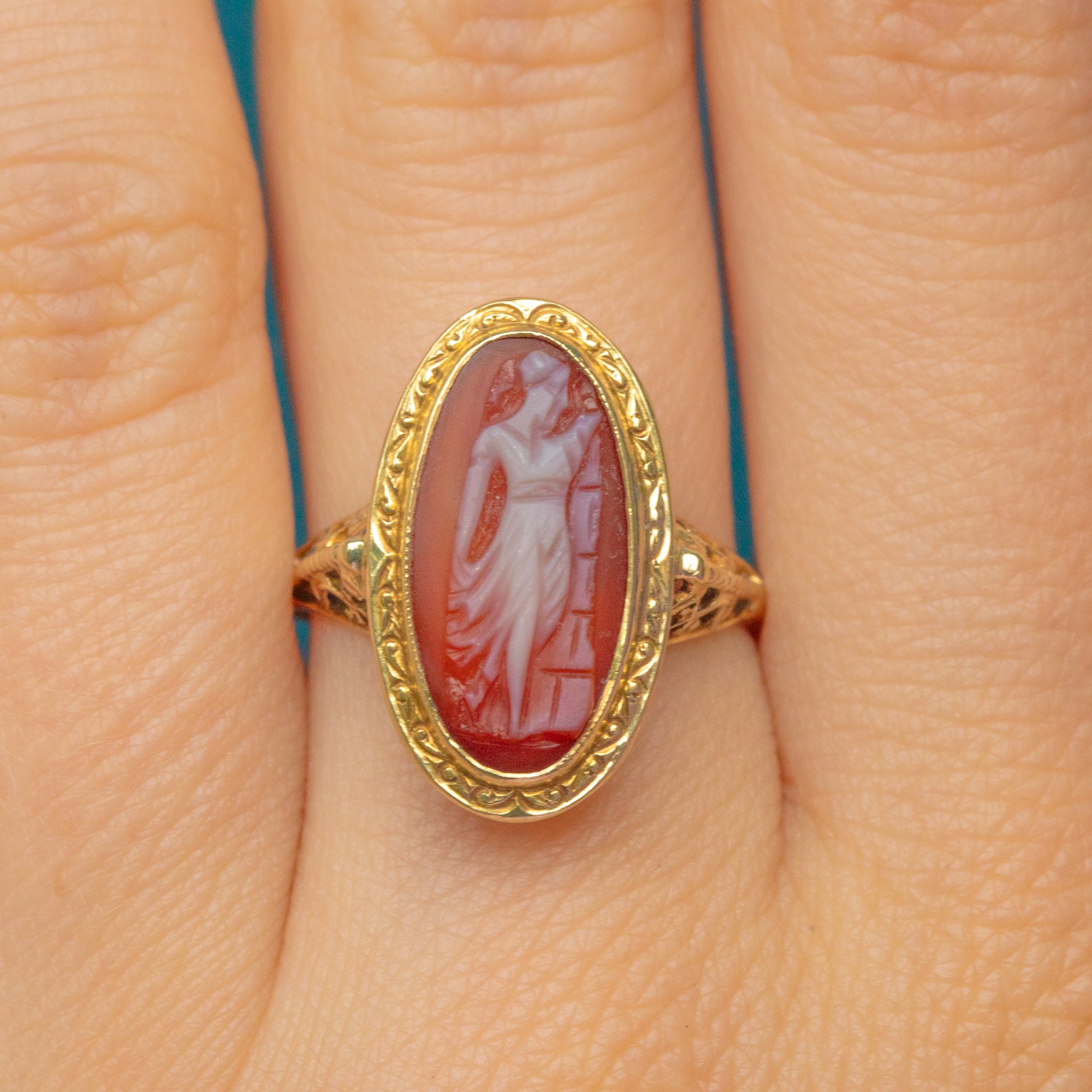 Antique 15ct Gold Carved Portrait Cameo Ring
