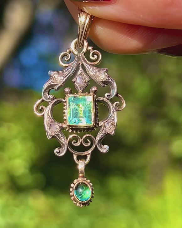 Antique 15ct Gold Emerald Rose-Cut Diamond Drop Pendant, c.1890 Item added