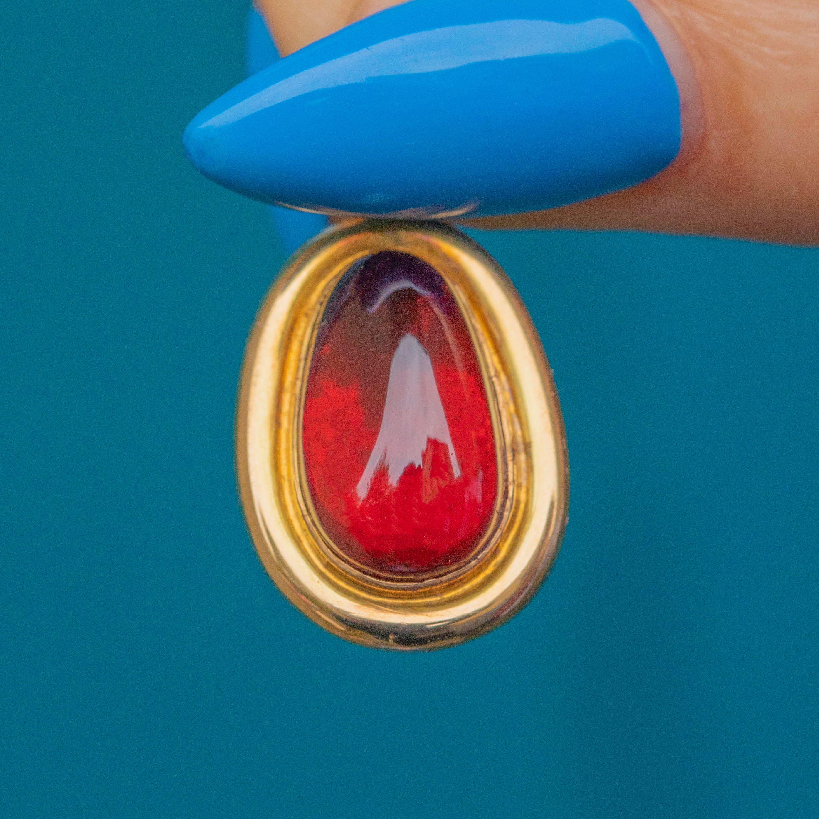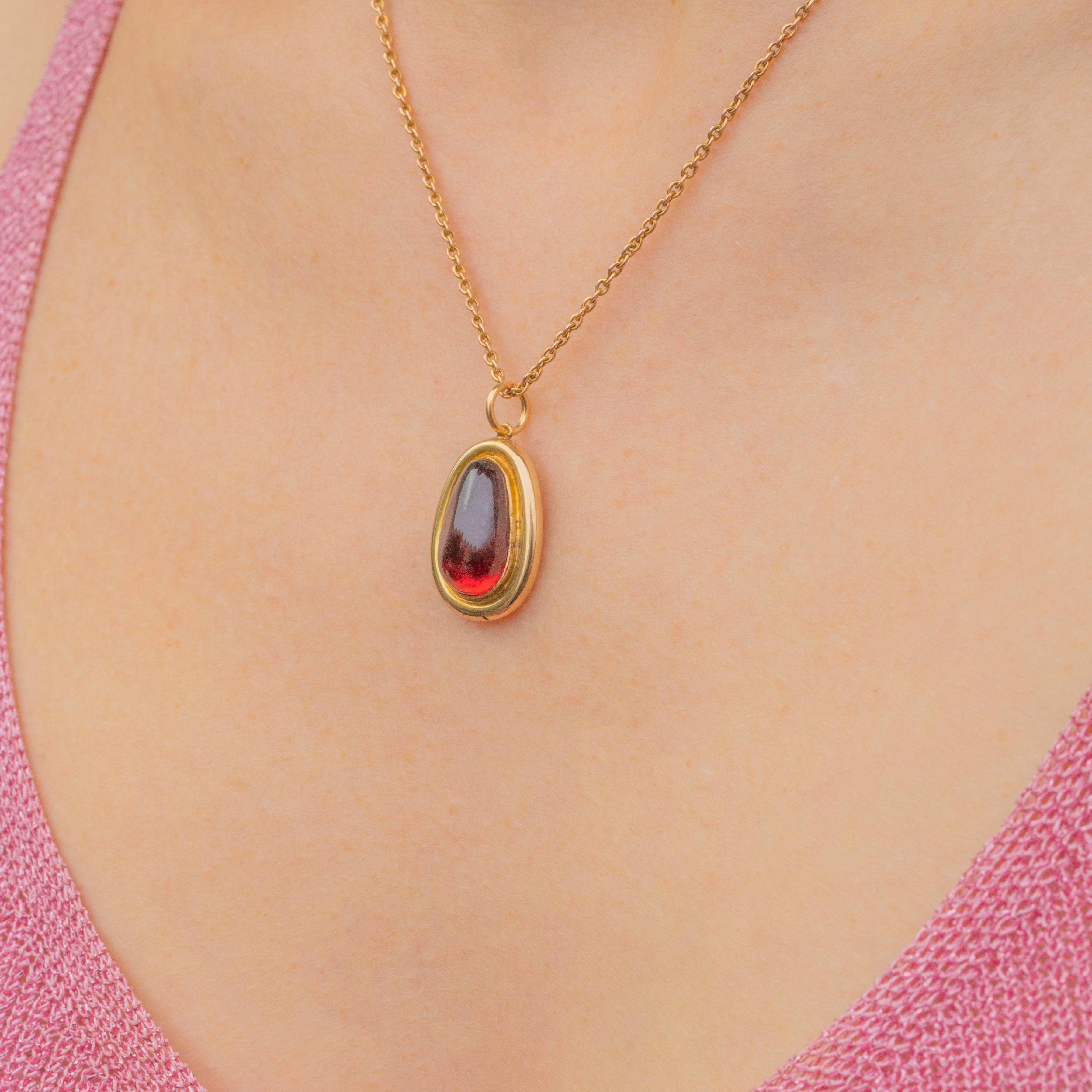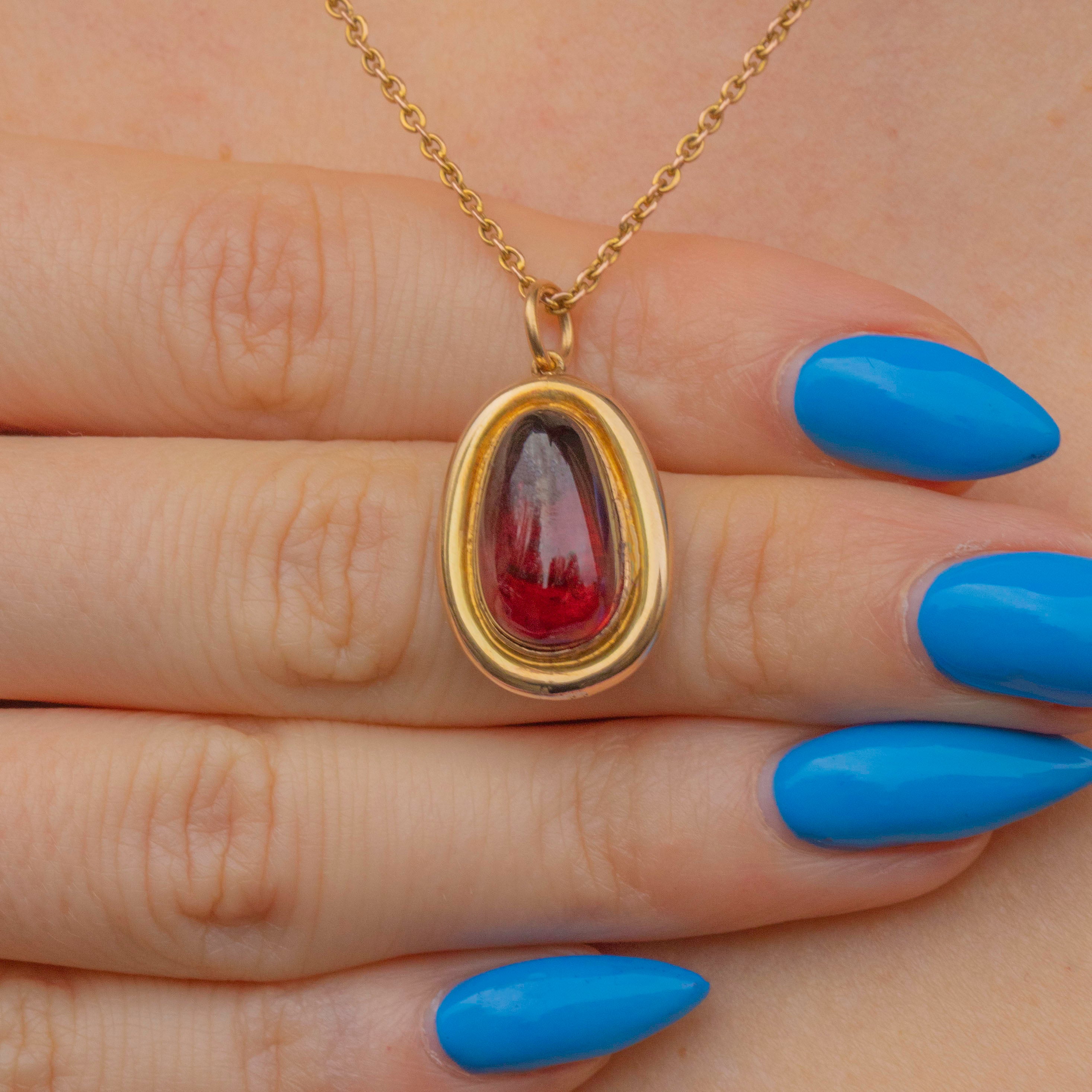 Add a touch of crimson beauty to your collection with this antique 15ct Gold Garnet cabochon pendant!