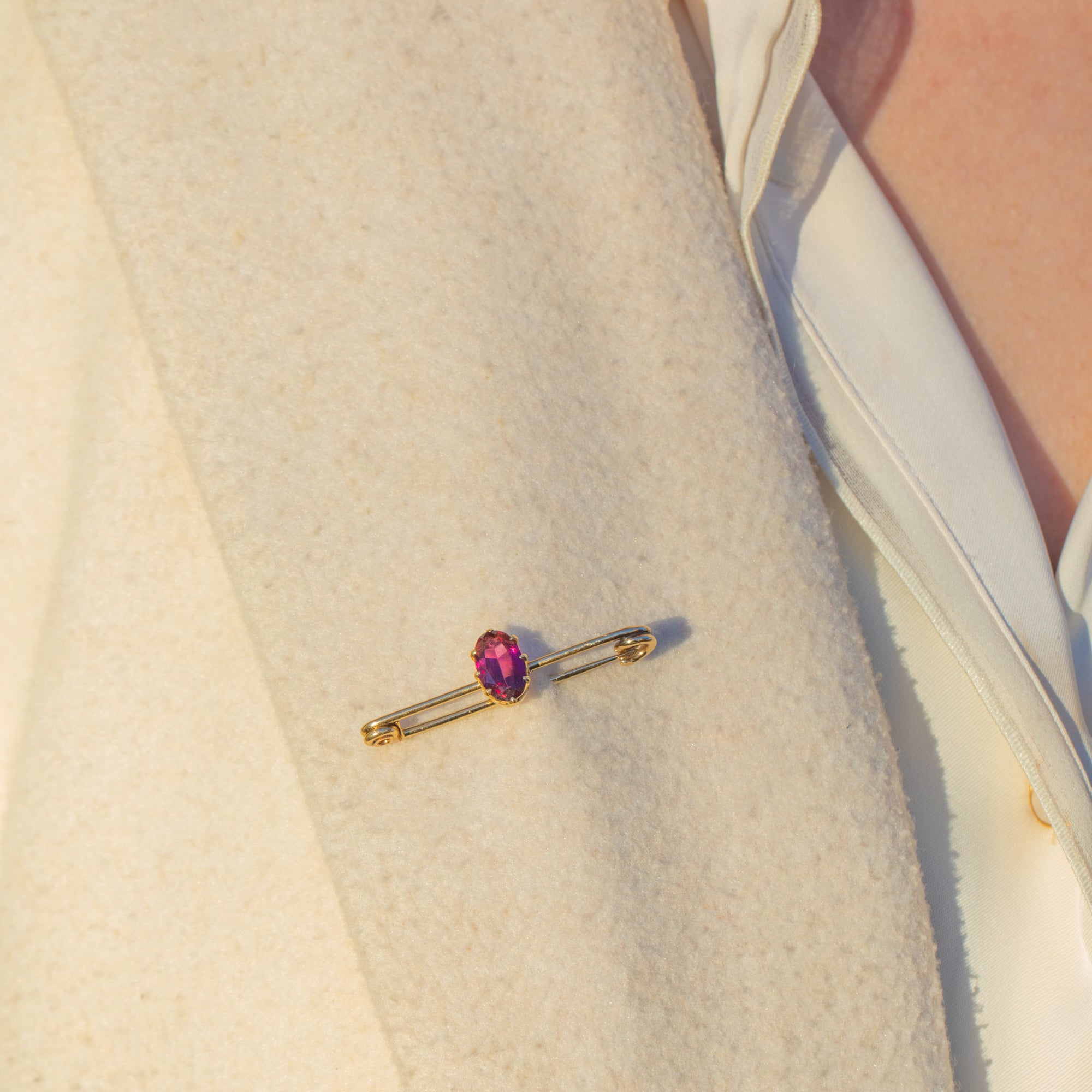 EXCELLENT. This antique 15ct Gold oval Garnet stock pin is in excellent condition. The Garnet has a crisp set of facets, free from chips or abrasions, securely set within its claws. The Gold has an even saturation throughout and the pin slots into its fitting securely, allowing you to wear this exquisite Victorian Garnet stock pin with absolute confidence!