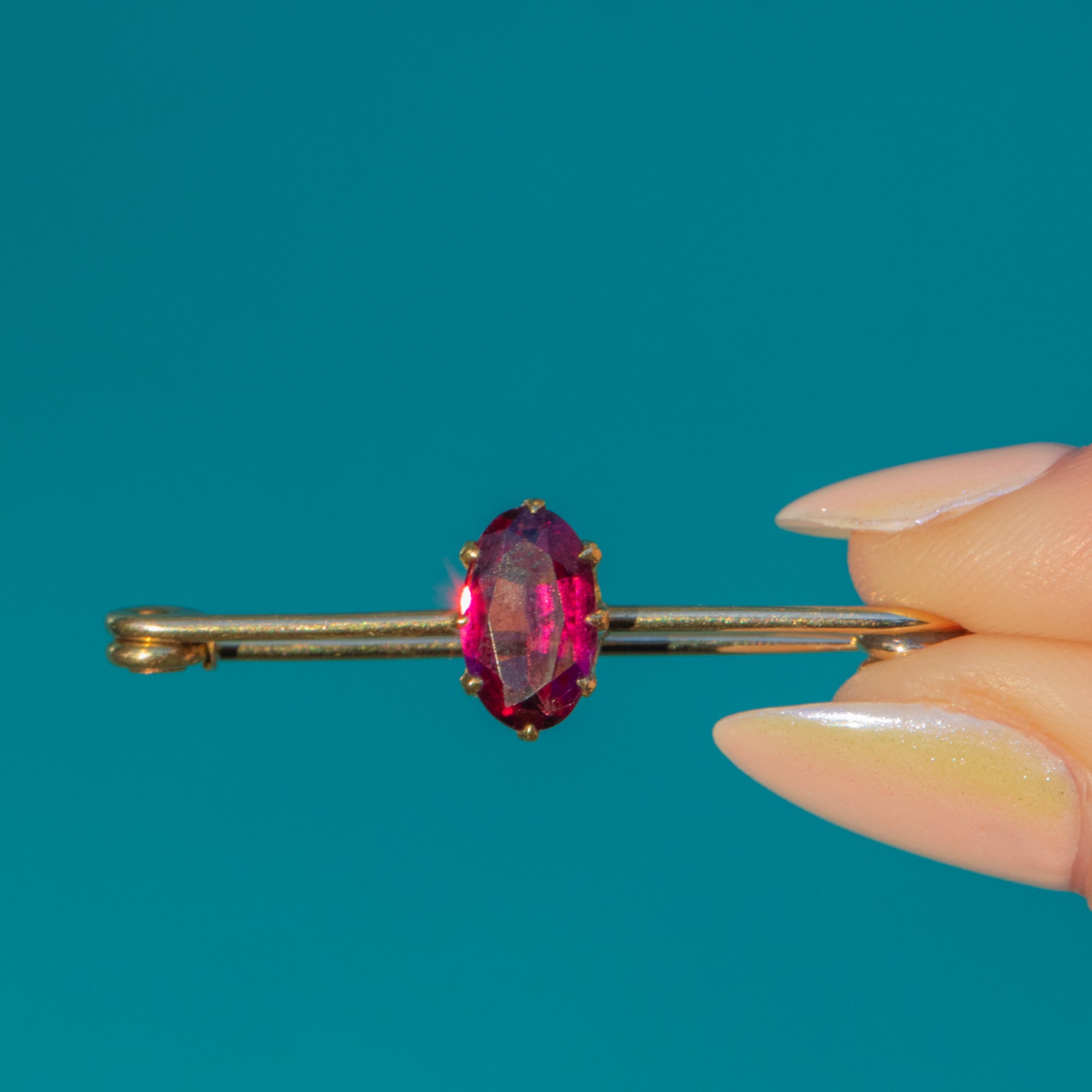 This glorious antique 15ct Gold oval Garnet stock pin will make a versatile addition to your collection! Crafted from solid 15ct Gold, this Victorian pin boasts a delicious 1.55ct Garnet, flashing merlot hues as its facets catch the light, perfectly complemented by its buttery Gold settings.