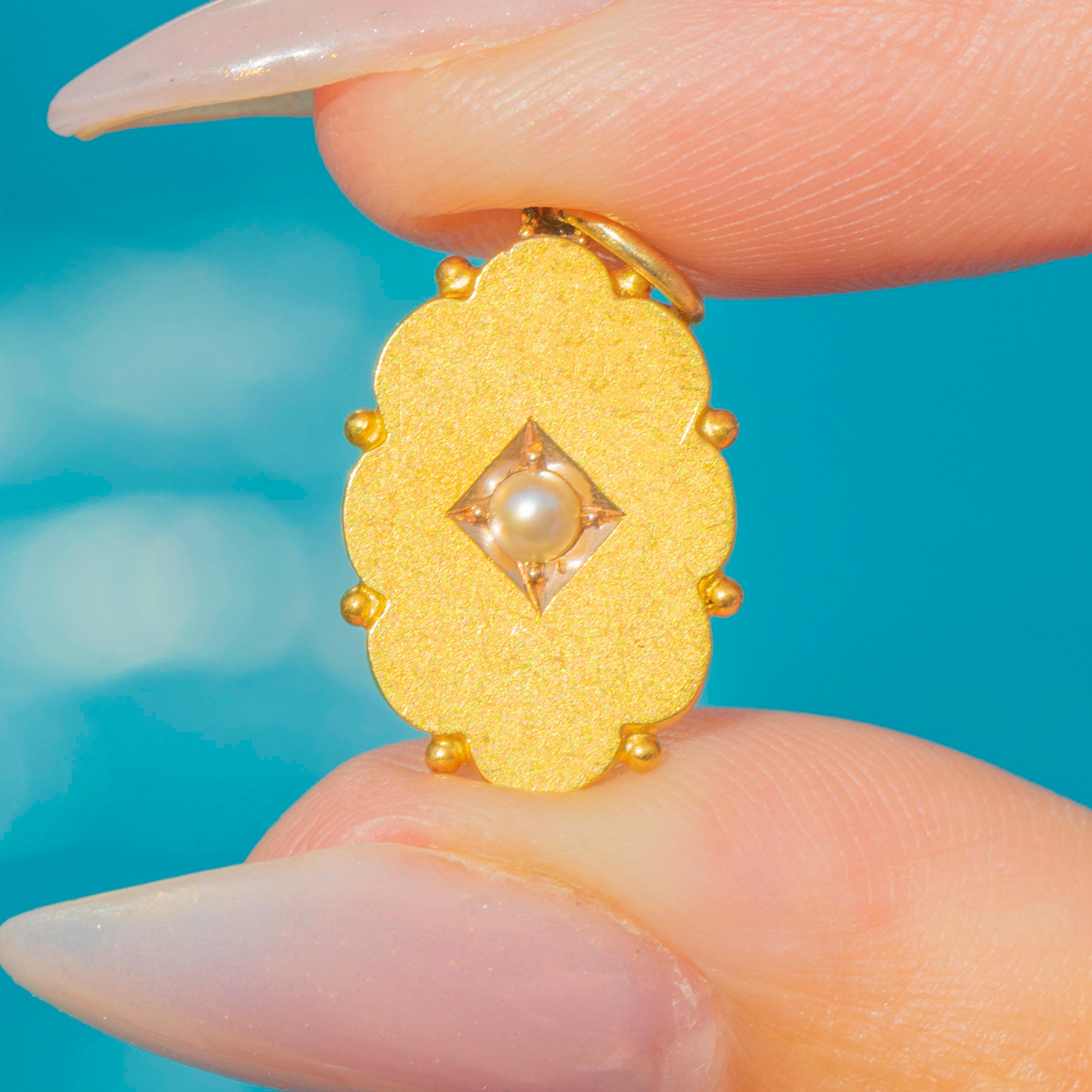 Antique 15ct Gold Pearl Scallop Edge Pendant
