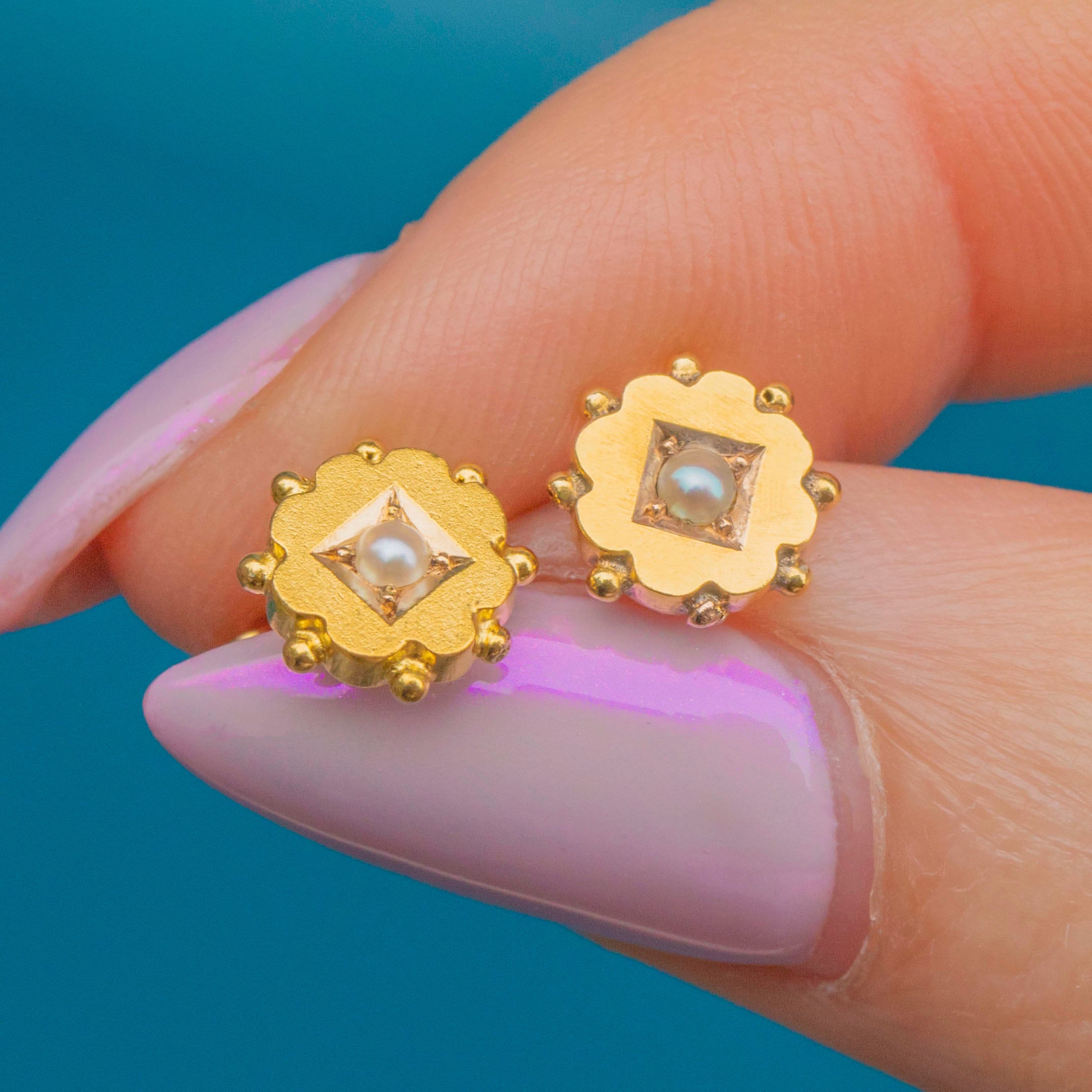 Perfect for everyday wear or to complement an antique necklace or brooch, these Victorian Pearl studs capture the understated beauty of the late 19th to early 20th century design.