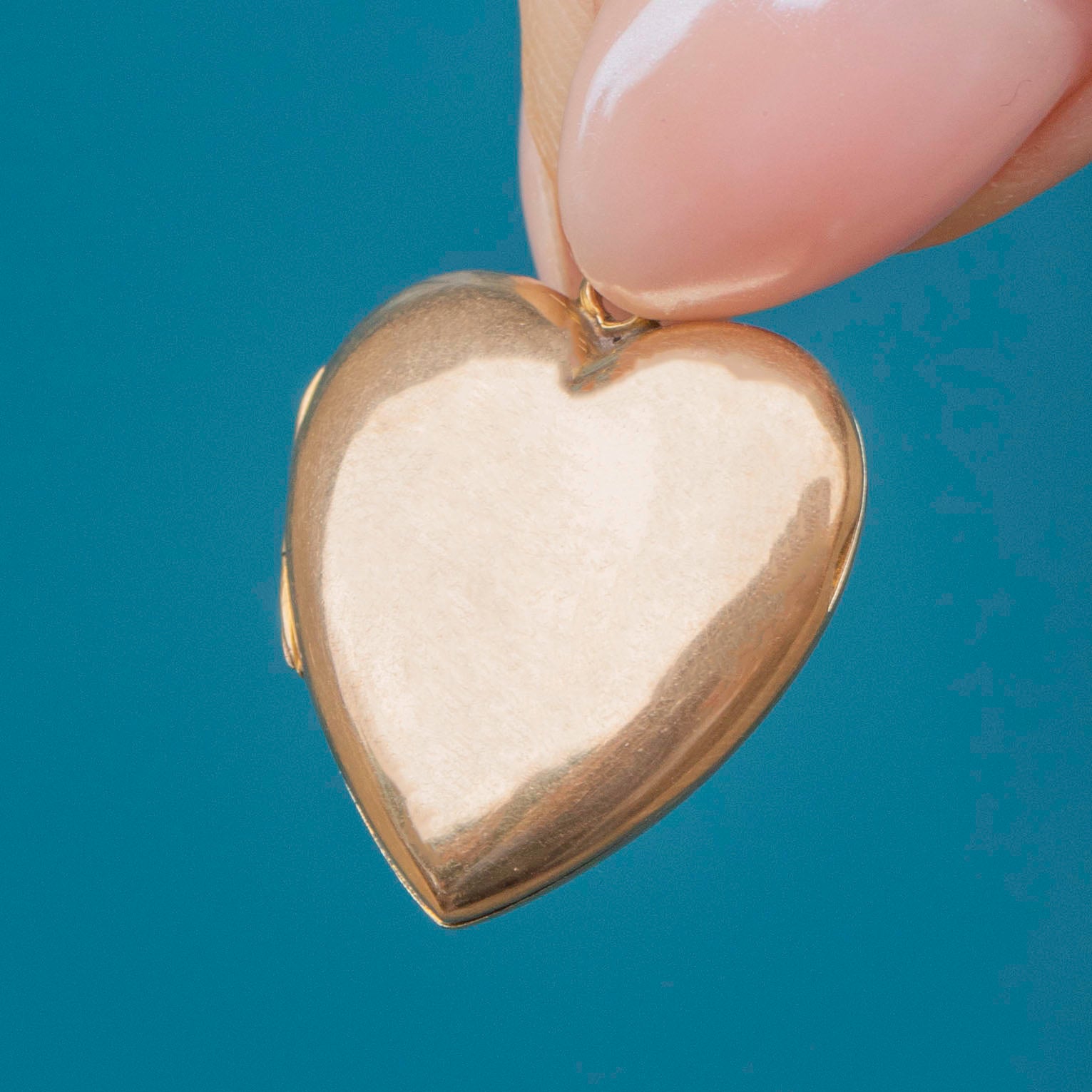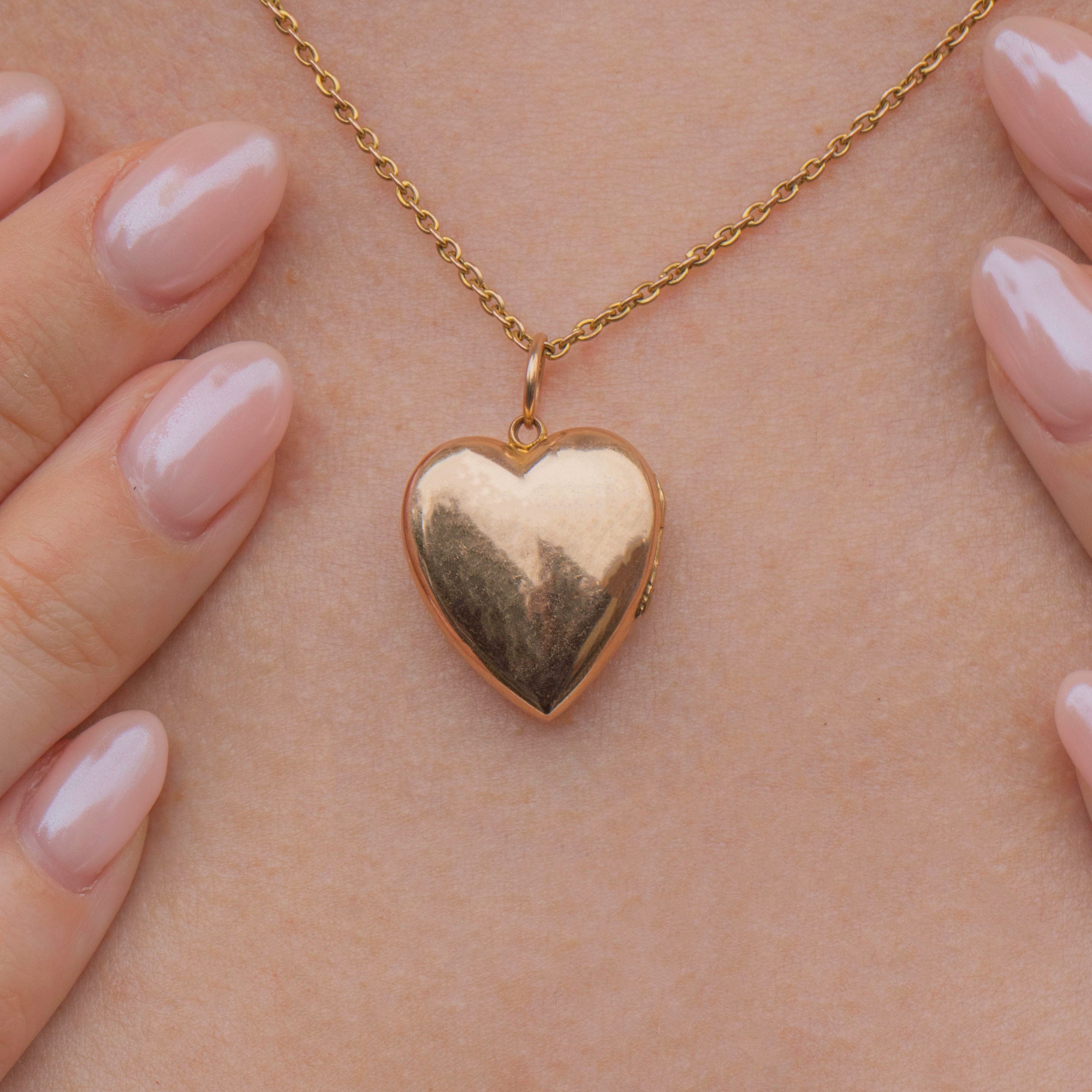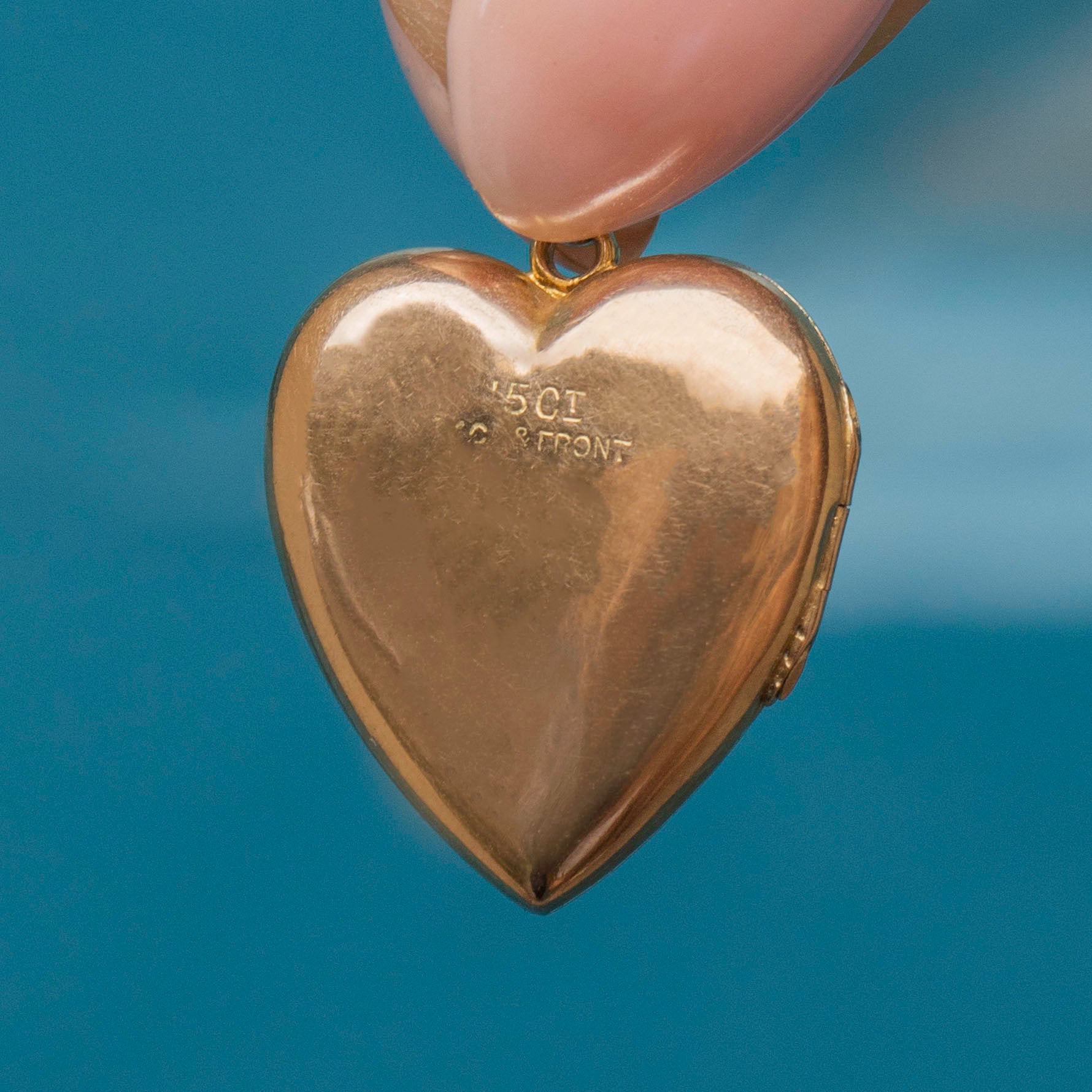VERY GOOD. A beautiful 15ct Gold puffy heart locket in lovely condition. Although she flaunts a couple of dings to the exterior of the piece, her 15ct Gold has a mouthwatering sun-kissed hue with wonderful reflective qualities. To the inside there is some darkening to the edge of the hearts but she homes two frames allowing you to keep the contents safely inside, and her doors shut with a firm click. This antique heart locket provides a taste of the beauty of Victorian history!