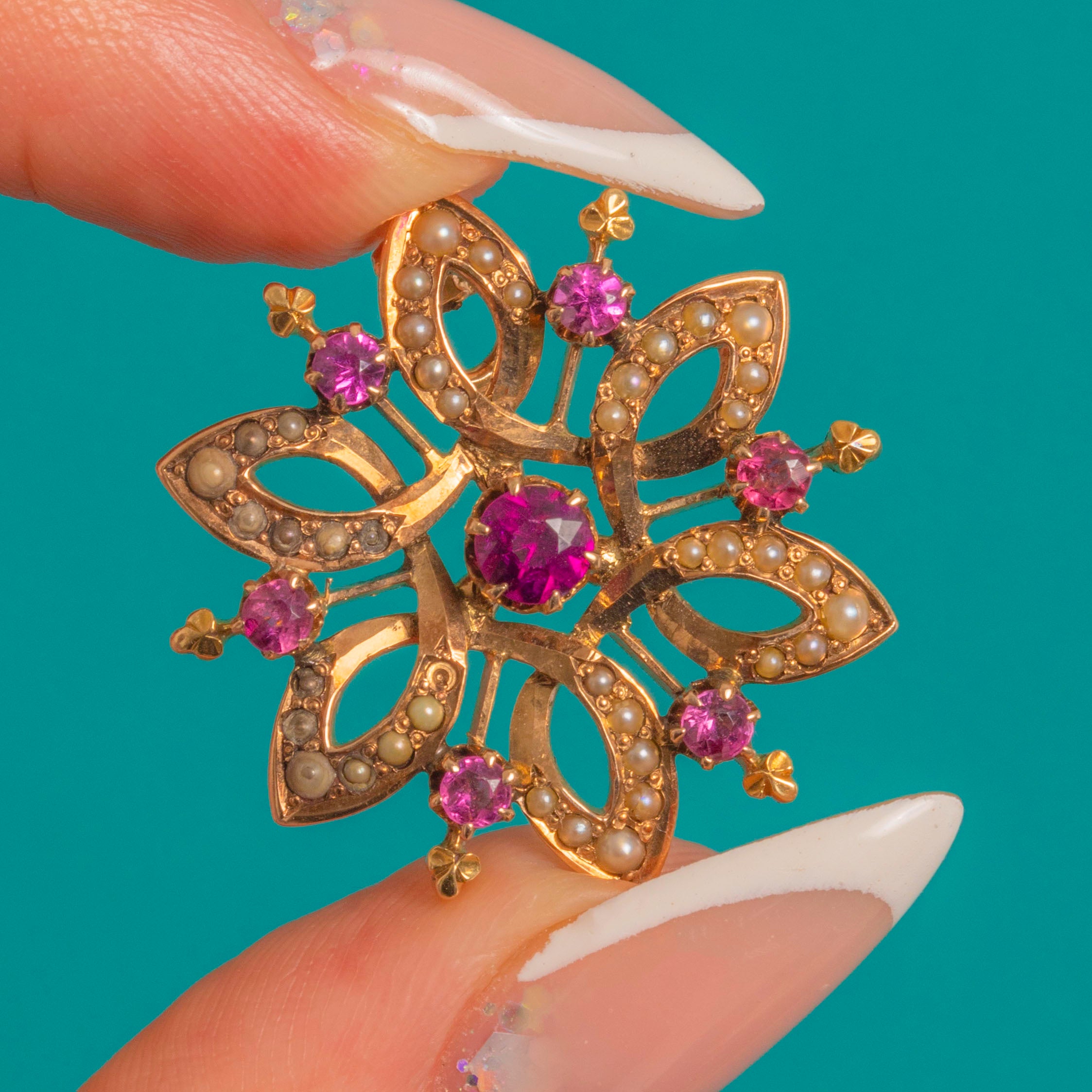 Antique 15ct Gold Rhodolite Garnet Pearl Star Cluster Pendant Item added