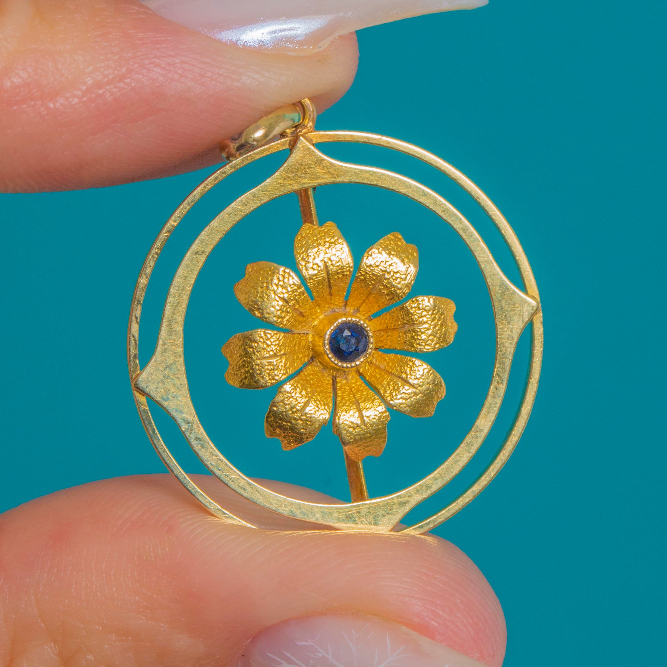 Antique 15ct Gold Sapphire Flower Circle Pendant, c.1900 Edwardian Item added