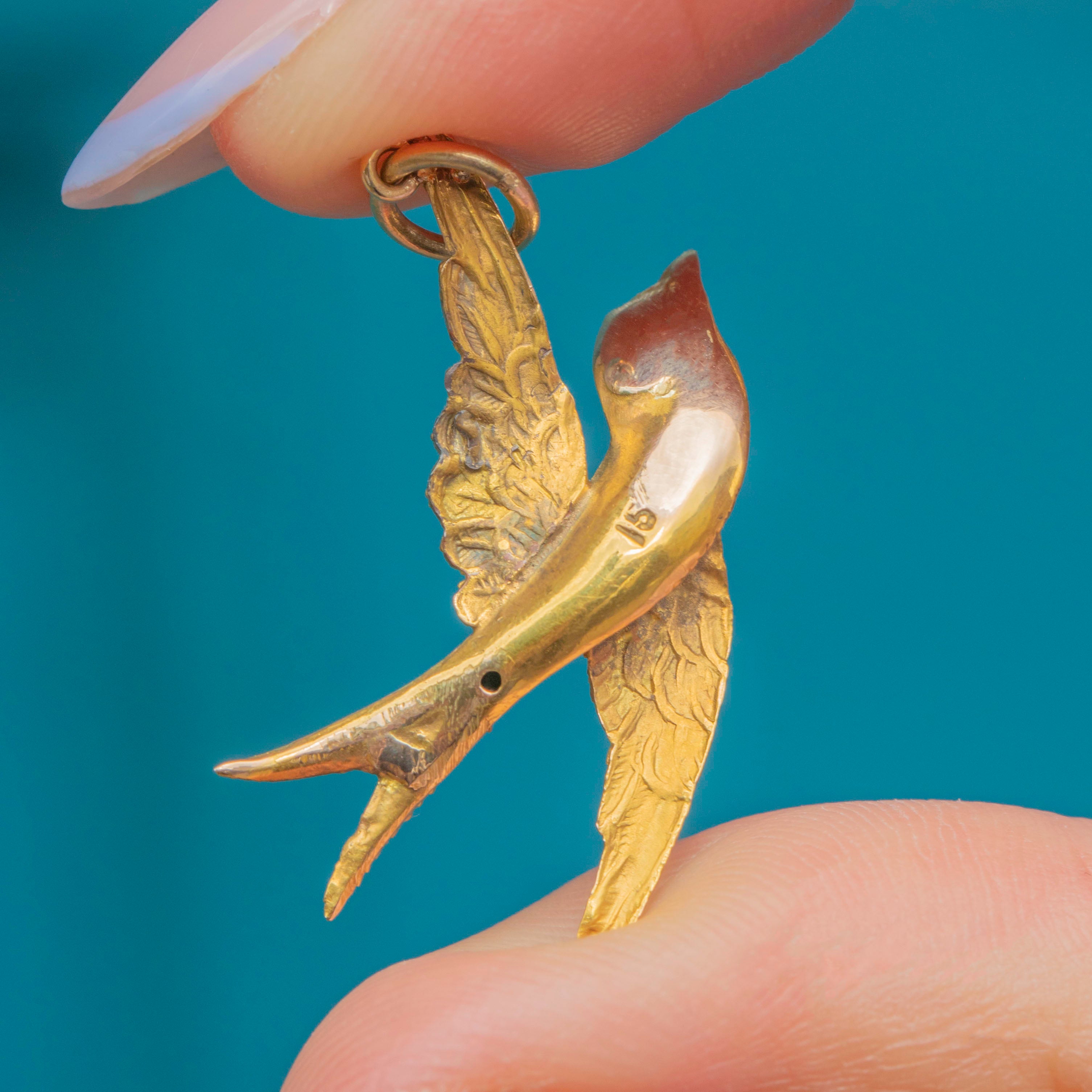 Add a touch of Victorian charm to your attire with this antique 15ct Gold swallow pendant!