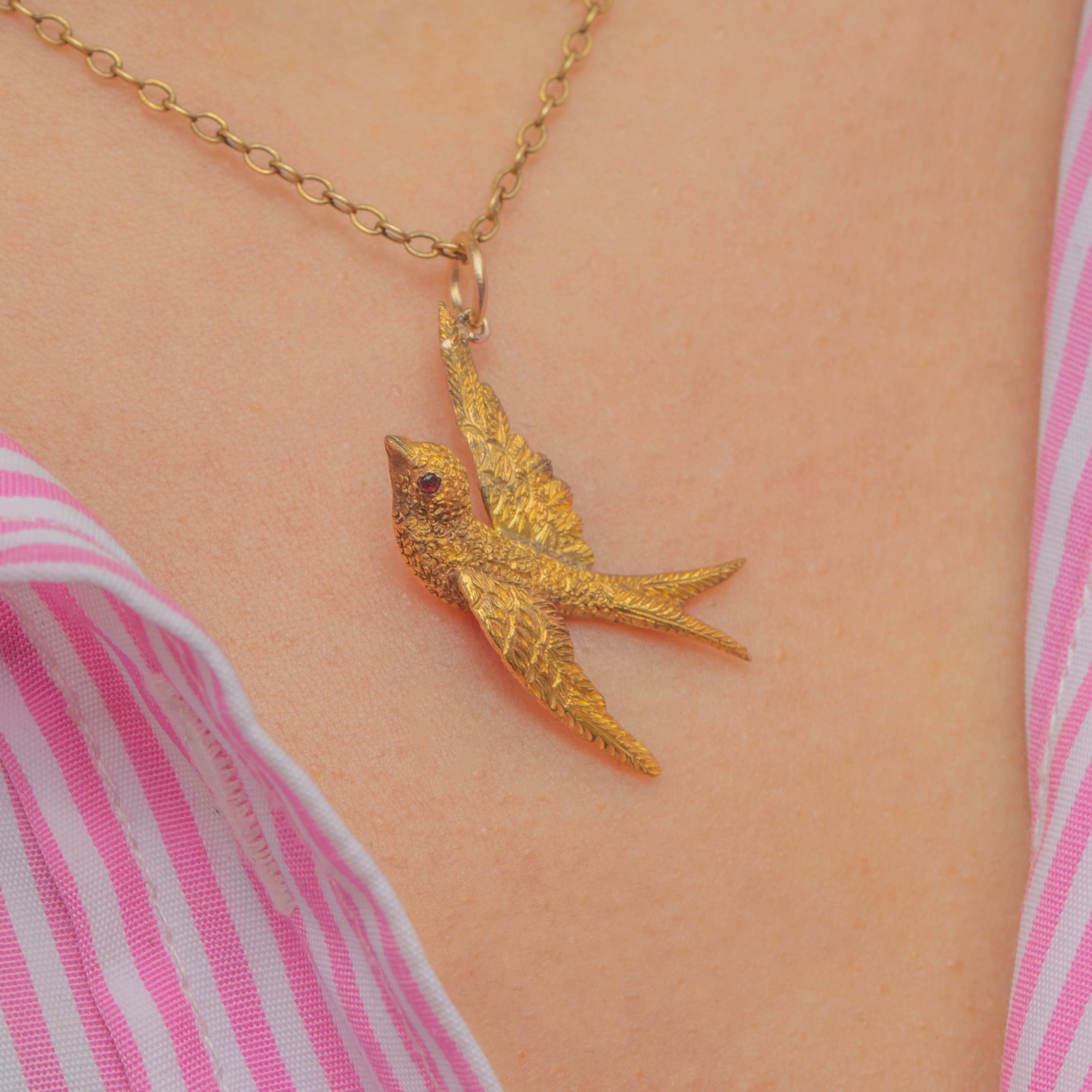 A quintessentially Victorian motif, this 15ct Gold swallow pendant radiates antique charm and is a must-have for your collection!