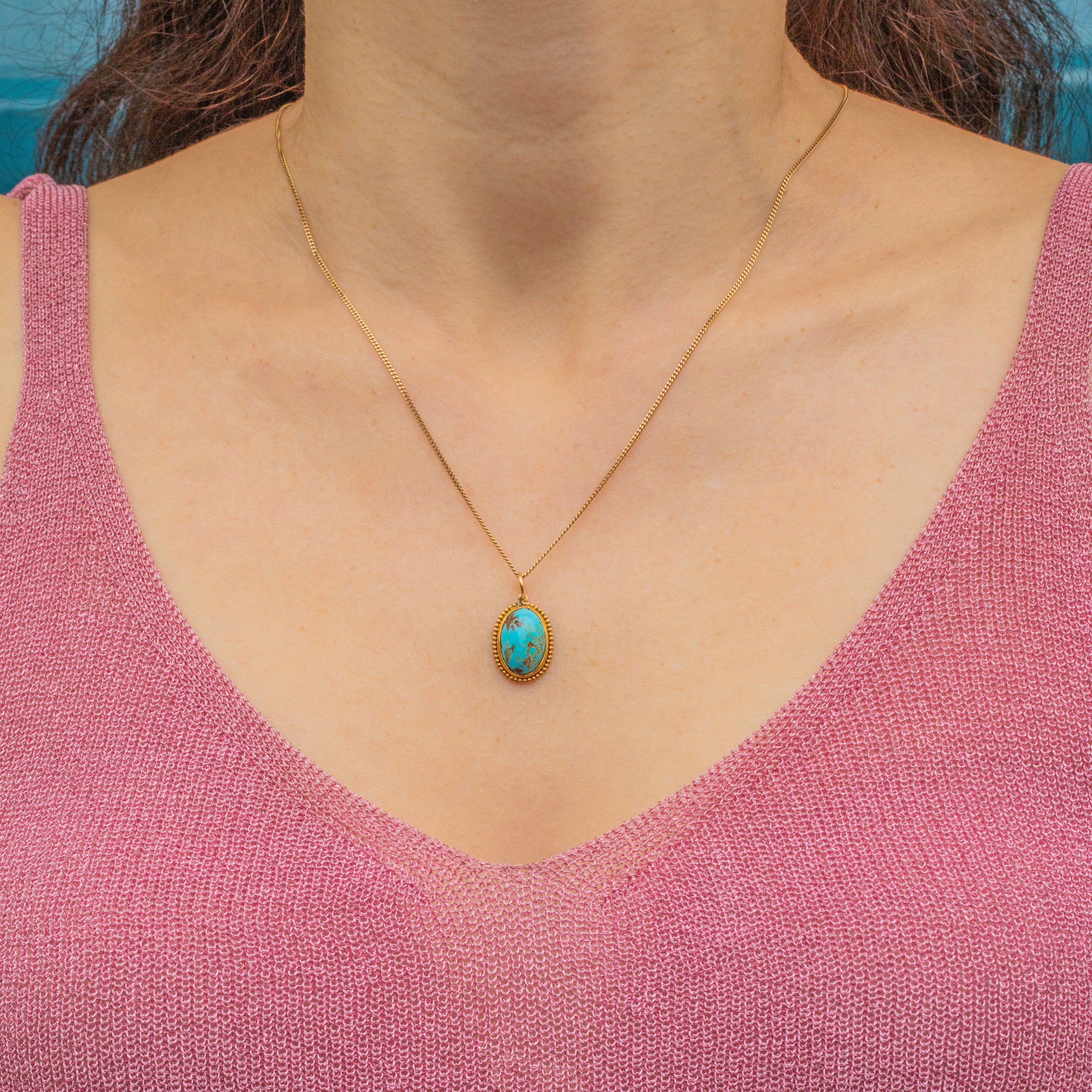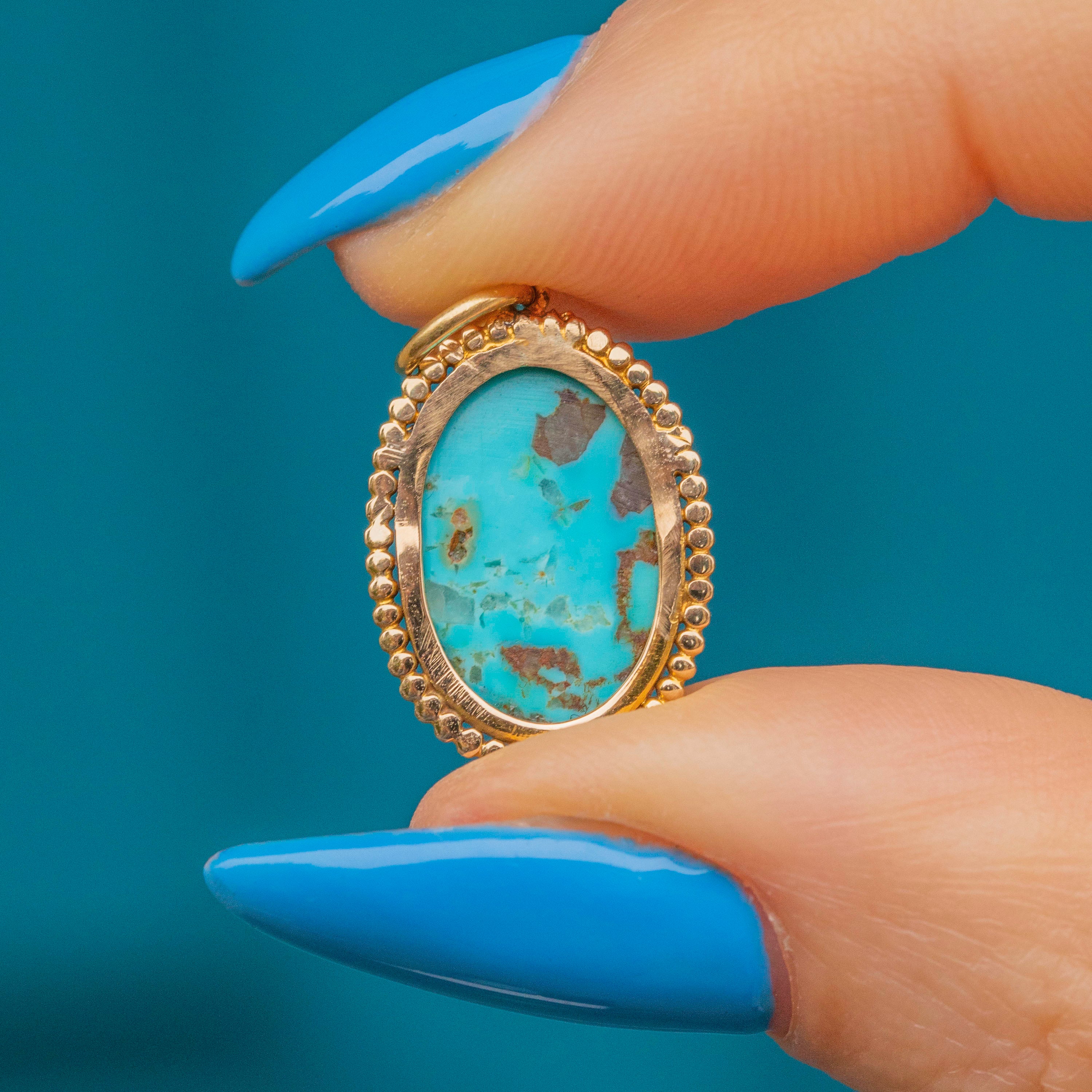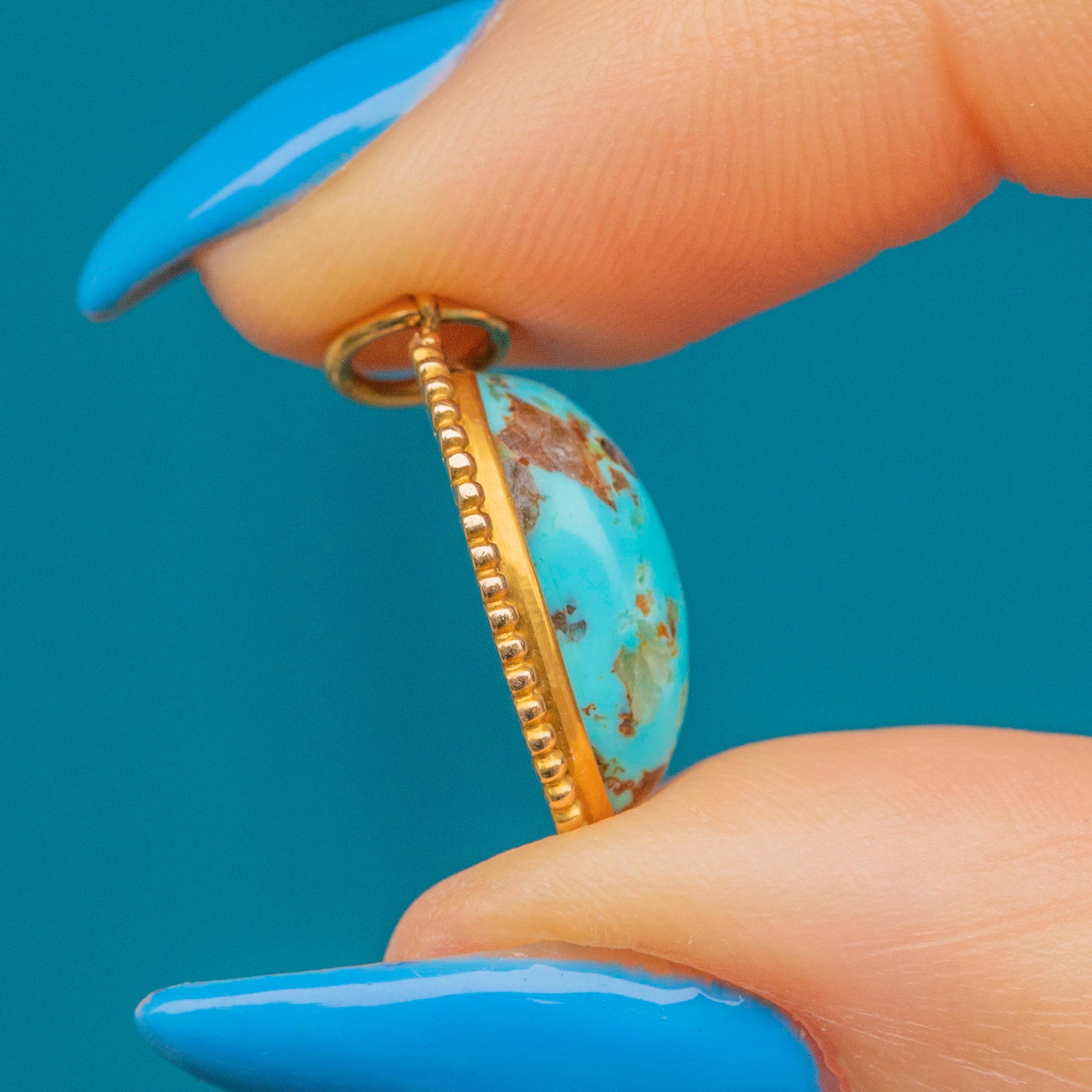 Add a pop of colour to your collection with this antique 15ct Gold Turquoise cabochon pendant!