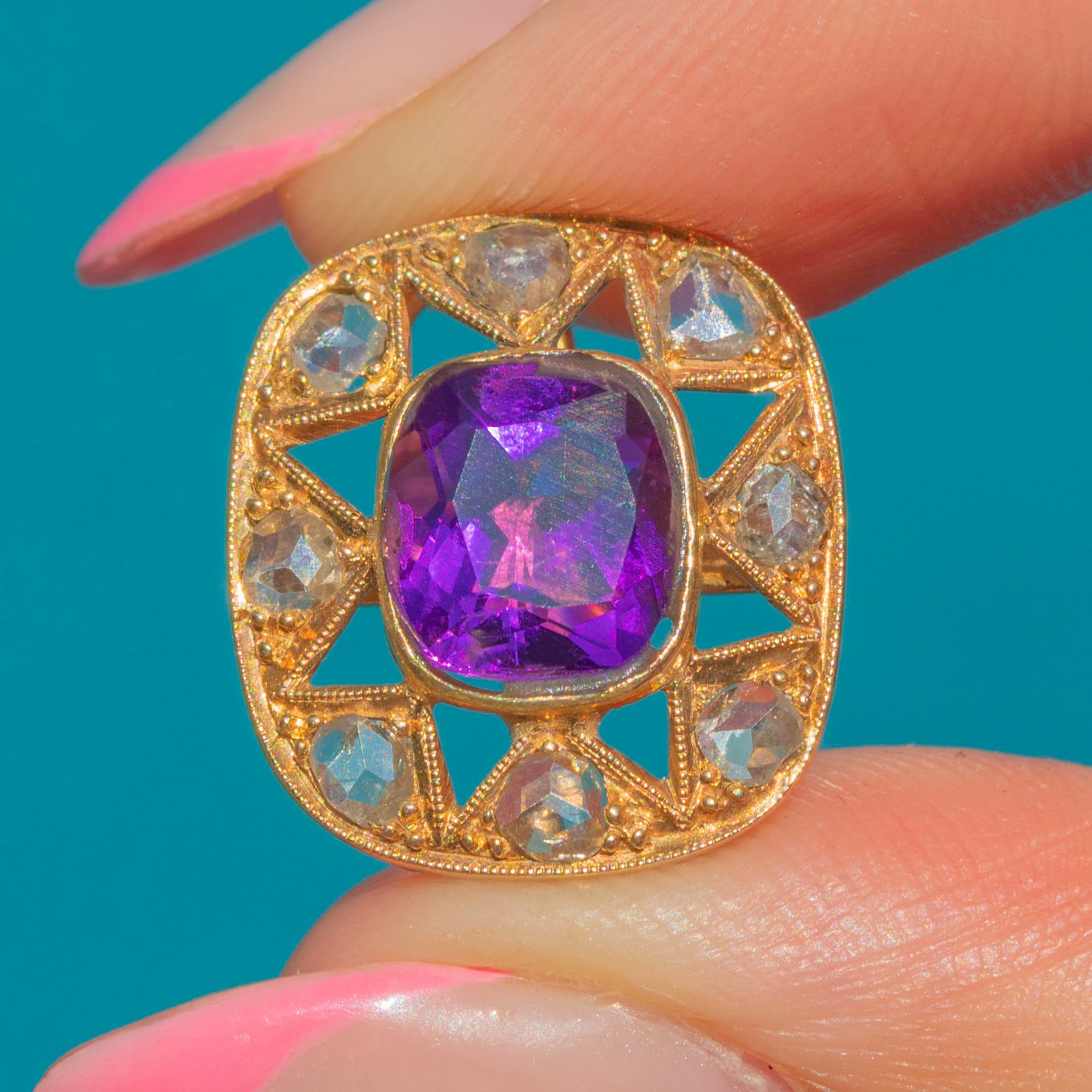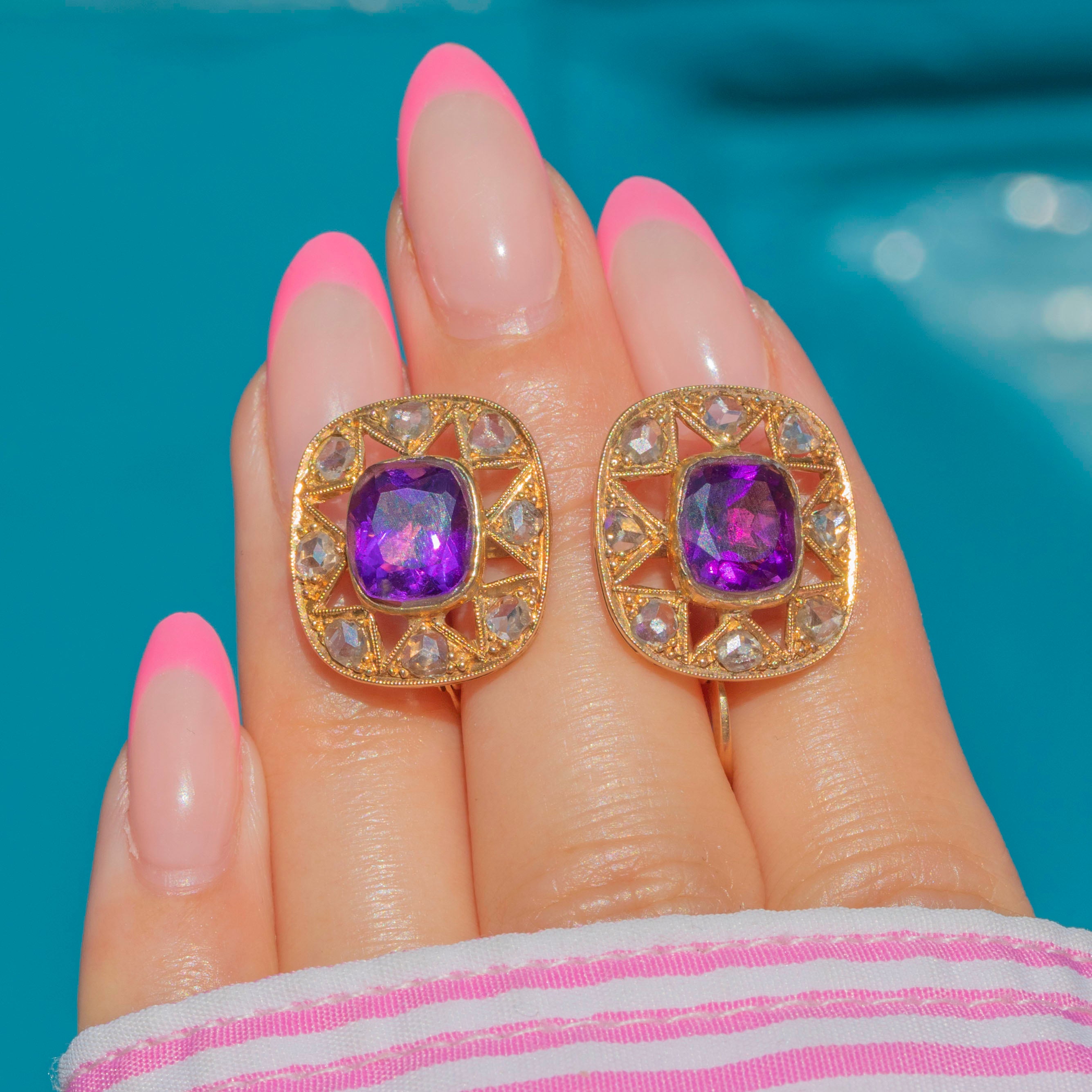 We love their gorgeous 18ct Gold openwork borders, she has the most tantalisingly rich, saturated tone. We're certain these Victorian Amethyst Diamond earrings will quickly become the most coveted pieces in your antique jewellery collection!
