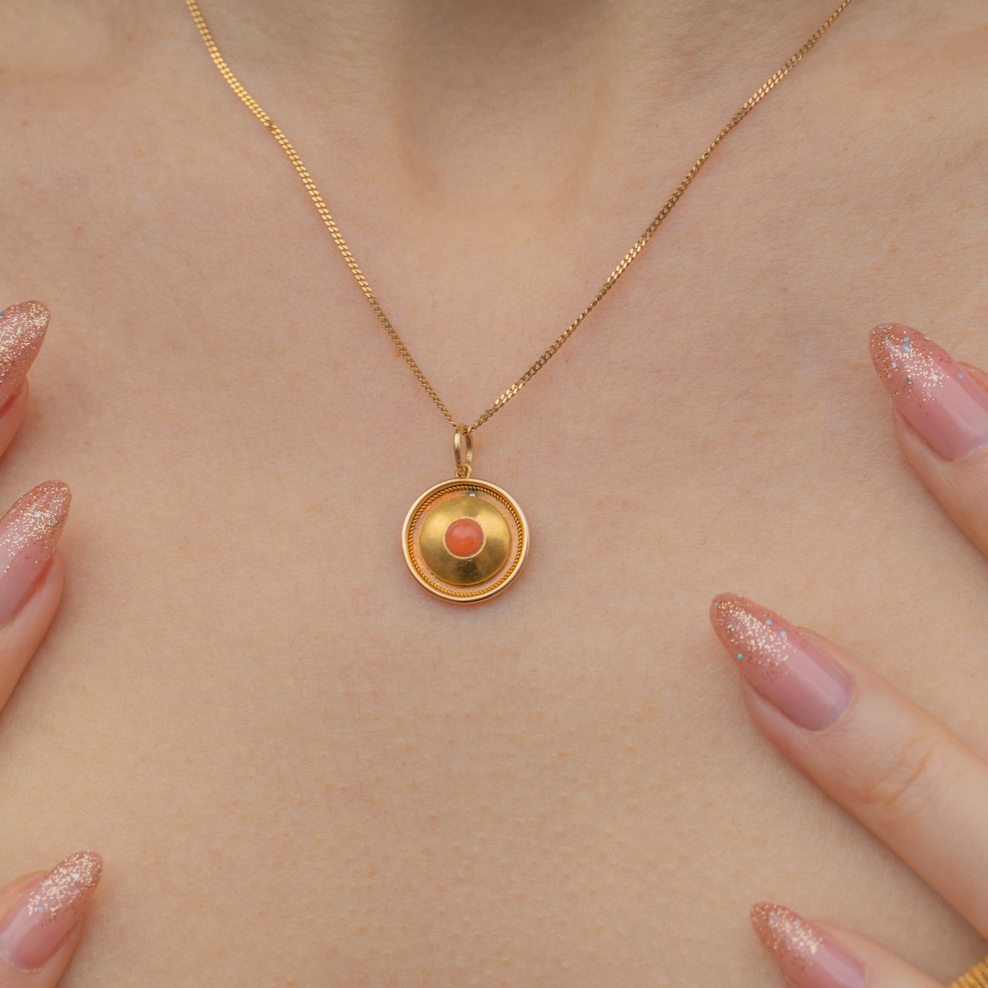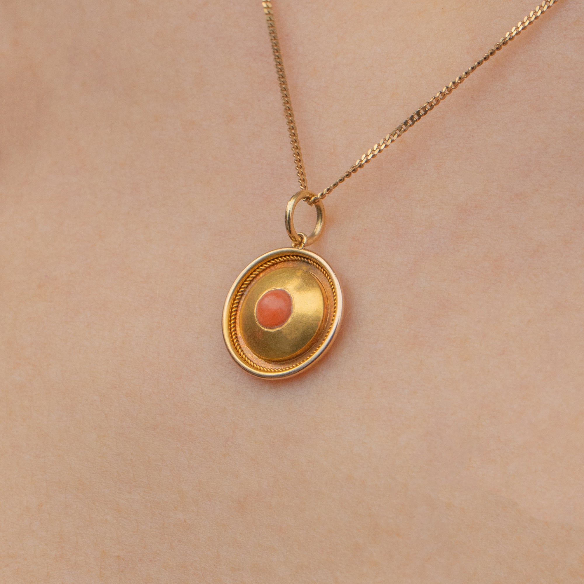 Antique 18ct Gold Coral Disc Charm