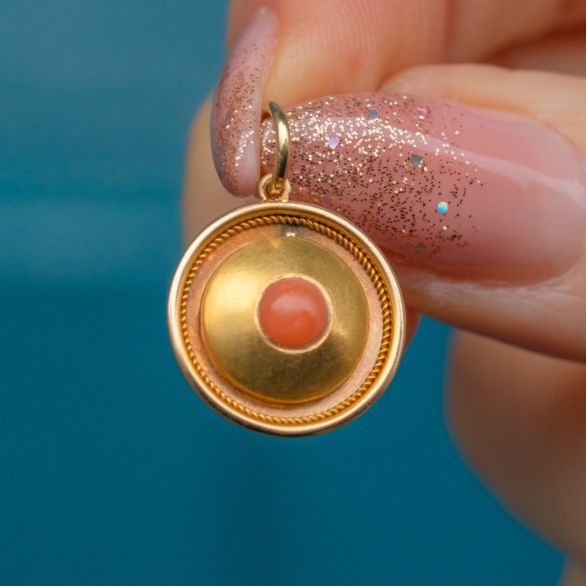This antique 18ct Gold Coral disc charm is a true treasure!
