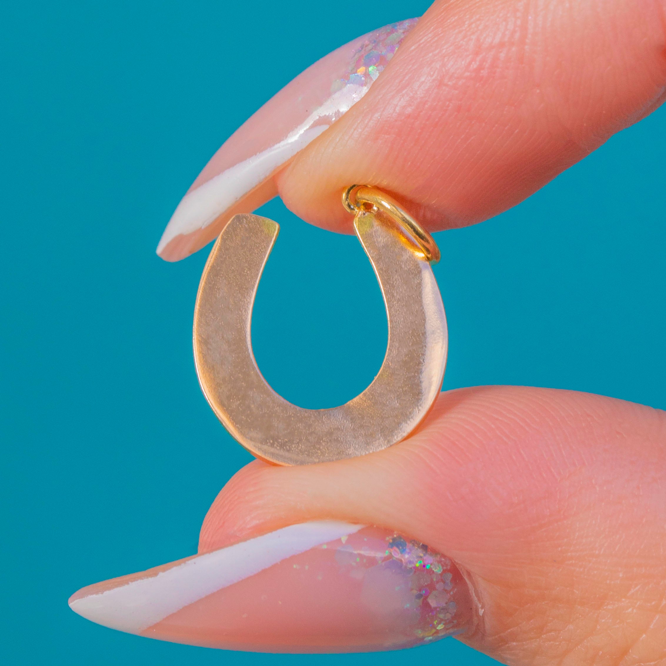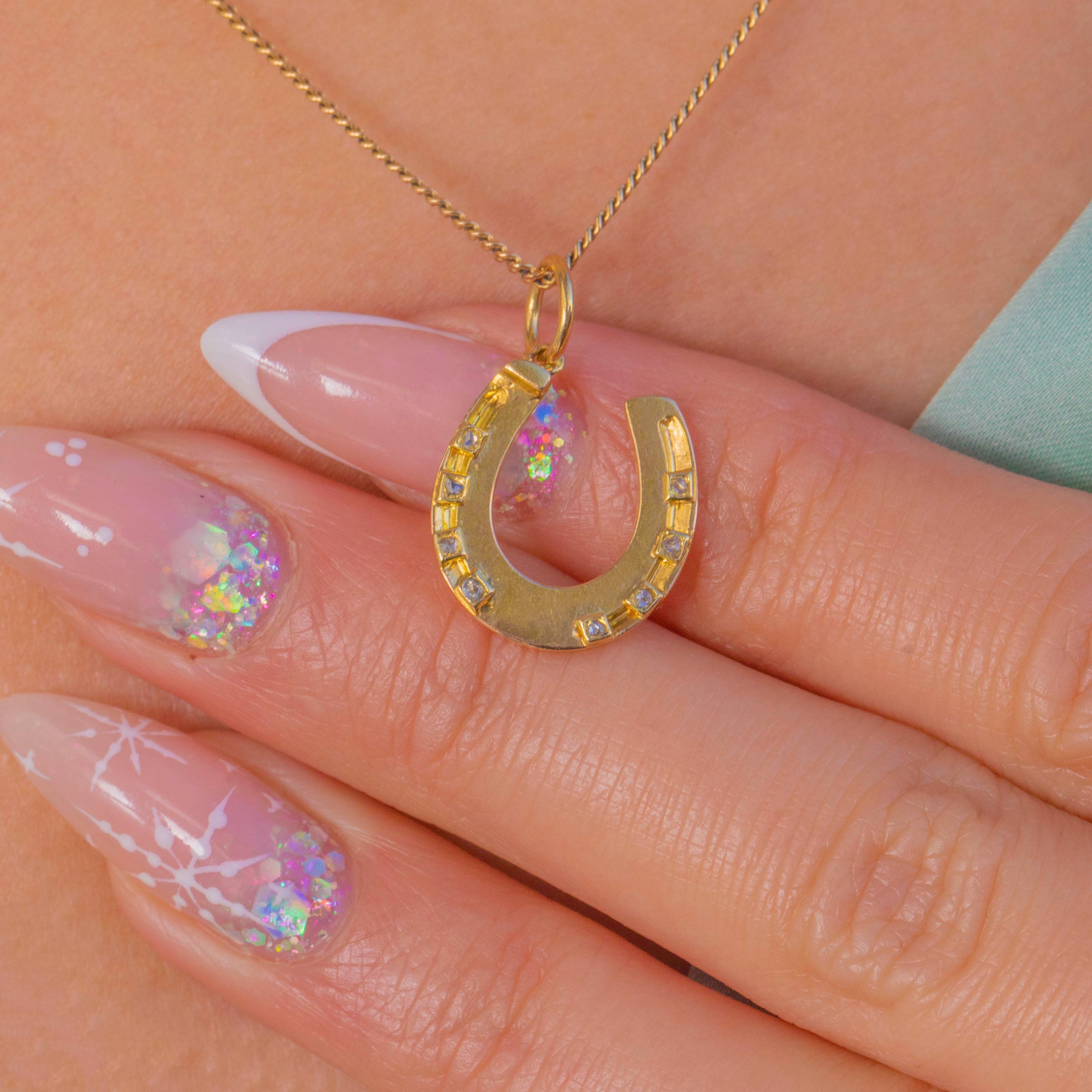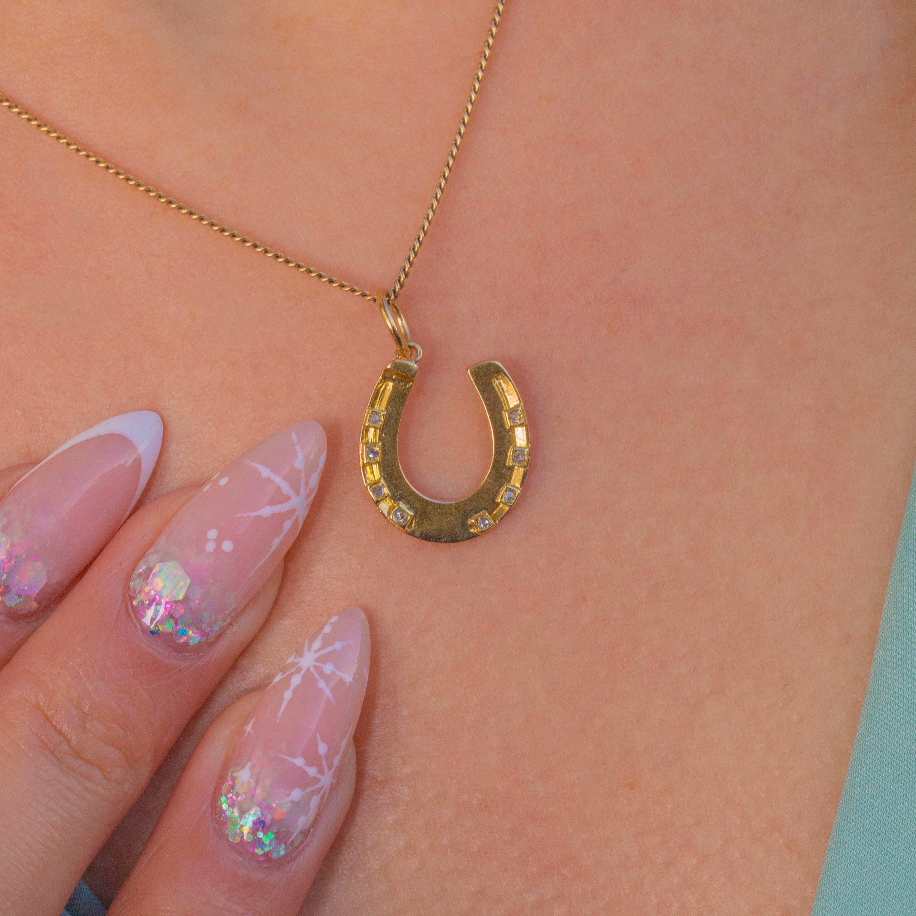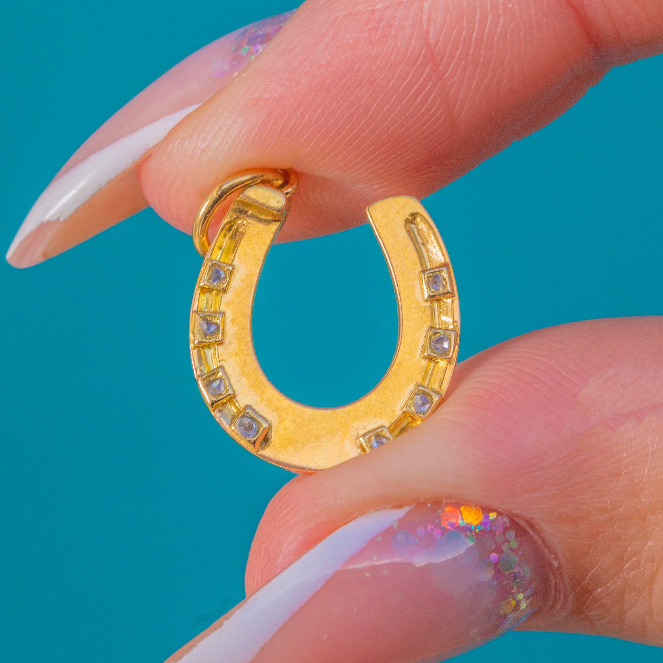 A timeless token of luck and light, this Victorian 18ct Gold Diamond horseshoe charm sparkles with delicate precision. The smooth, petite horseshoe is neatly set with a continuous line of dainty, bright rose-cut Diamonds, each catching the light beautifully against the warm glow of rich 18ct Gold.