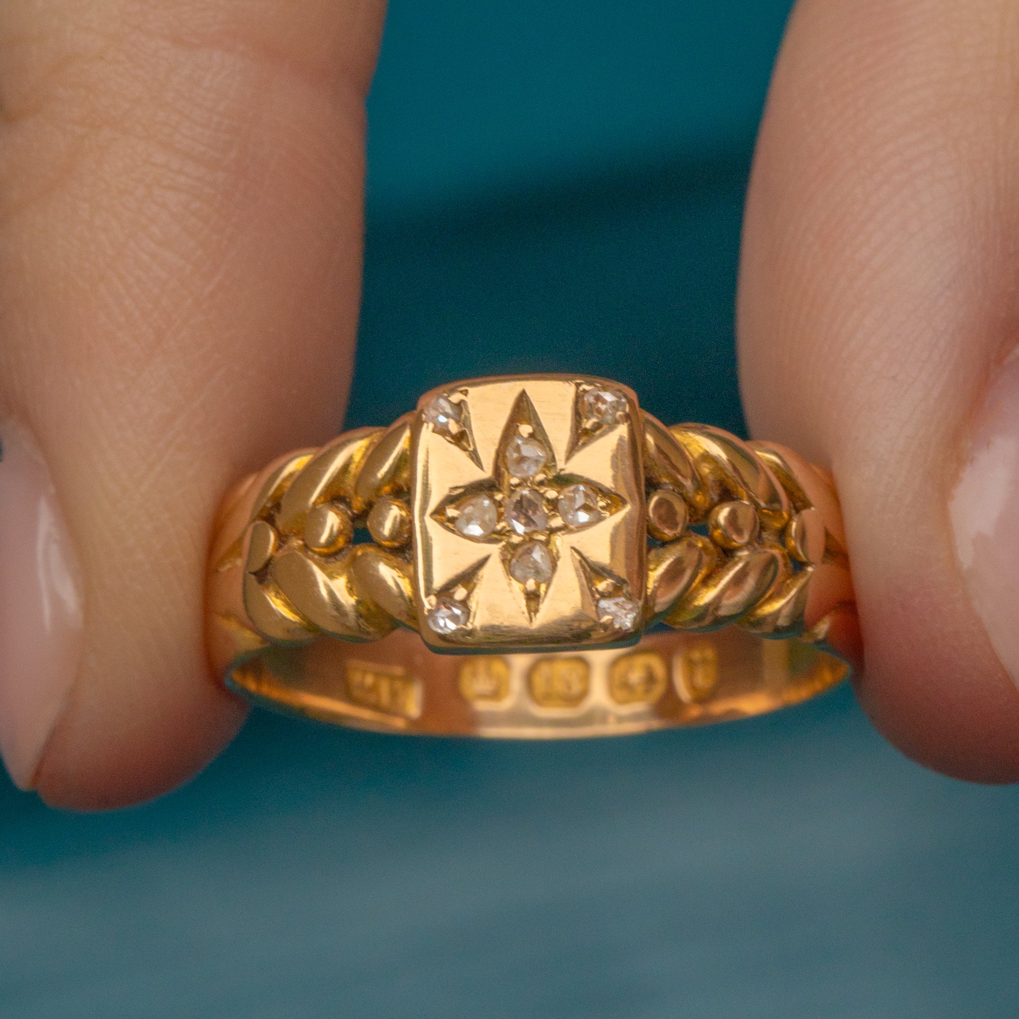 MATERIALS: 18ct Gold, Rose-Cut Diamonds.