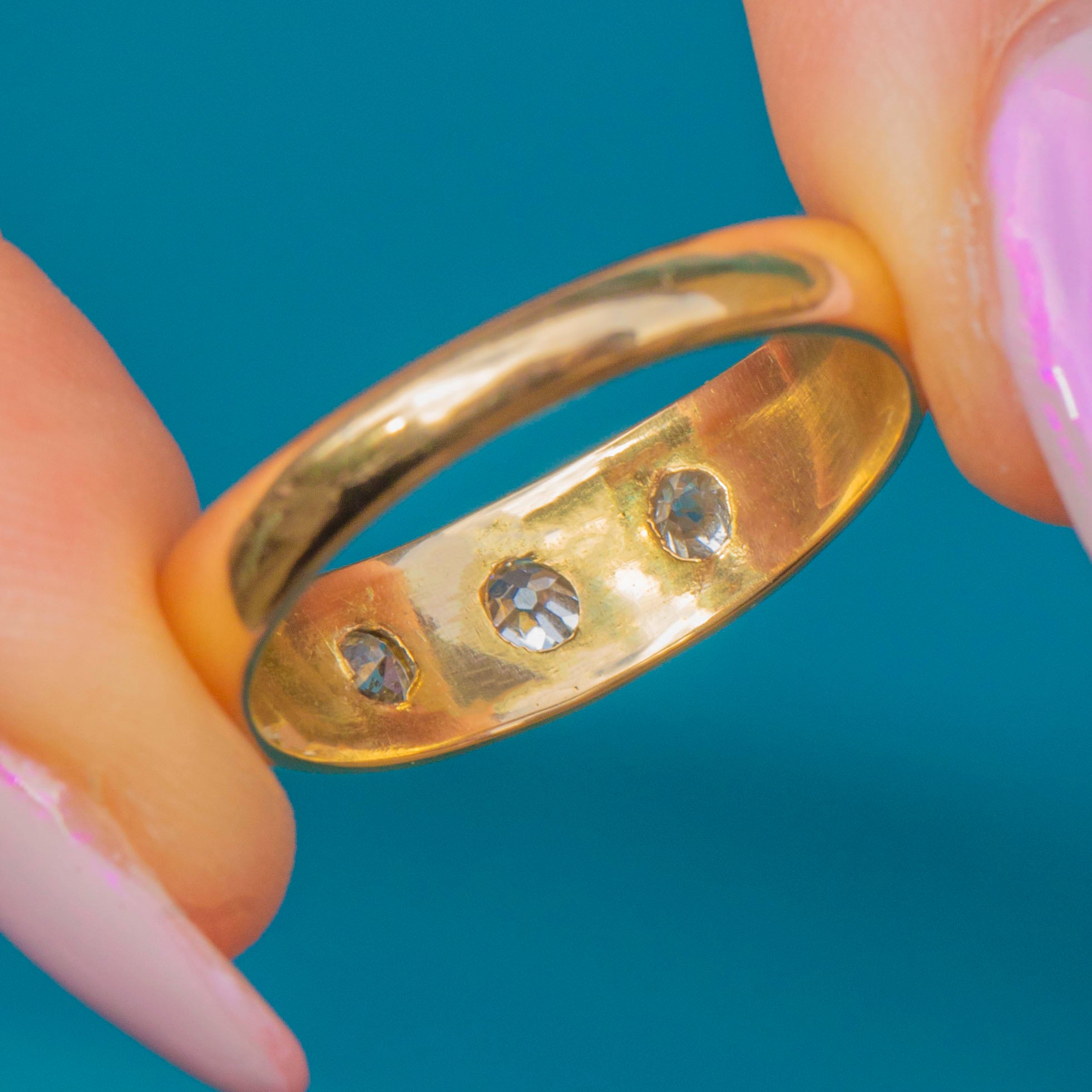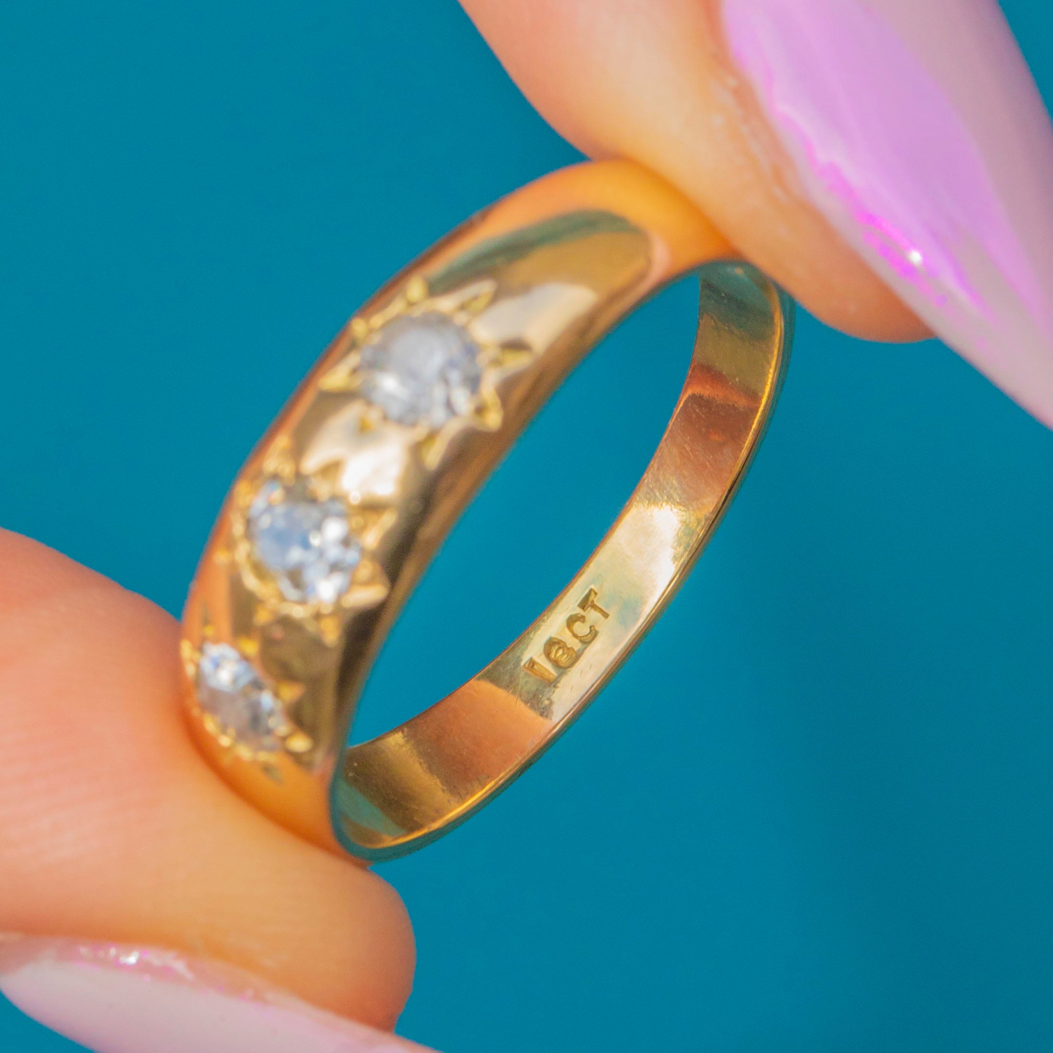 Antique 18ct Gold Diamond Three Stone Gypsy Ring