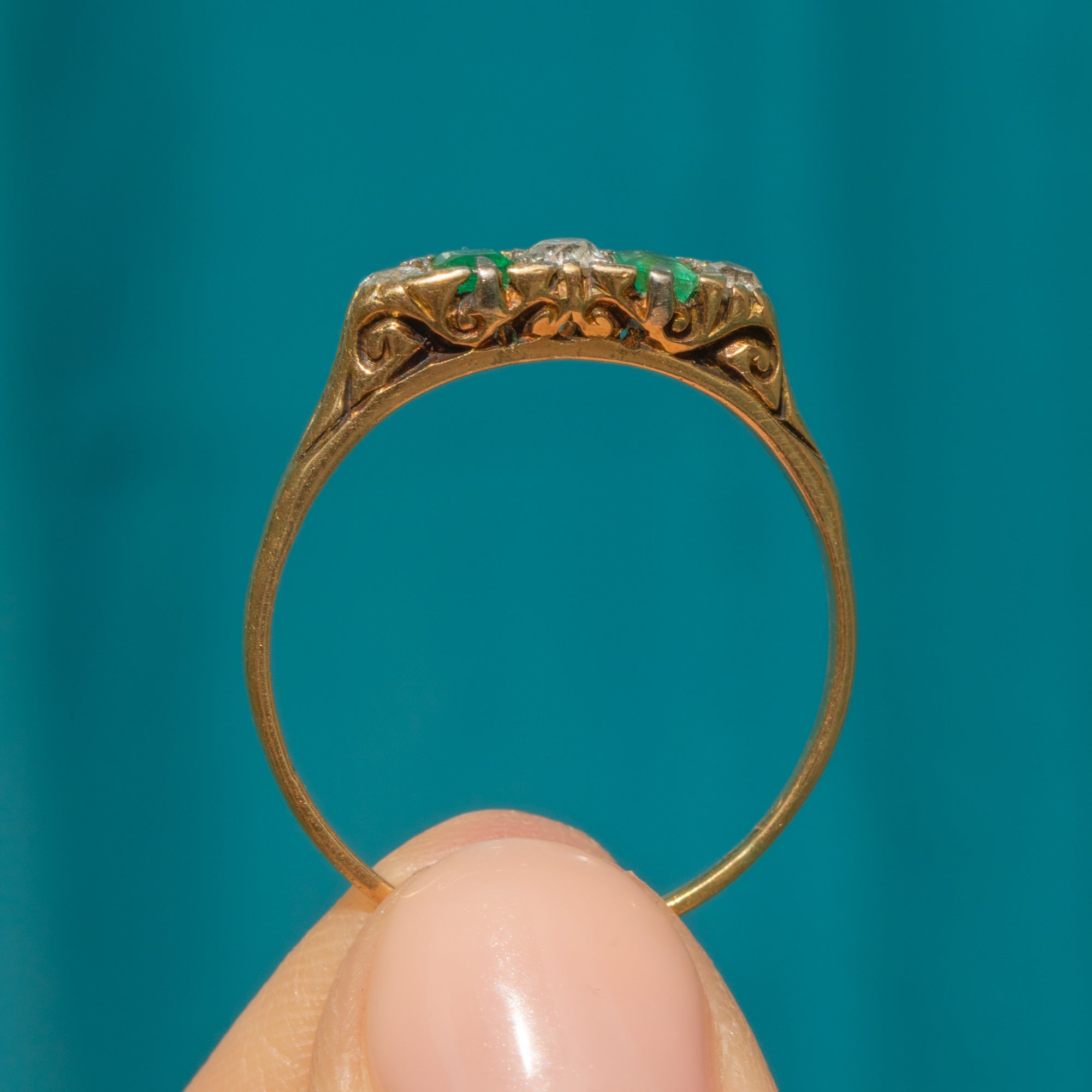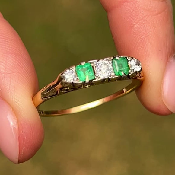 Antique 18ct Gold Emerald Diamond Five Stone Ring