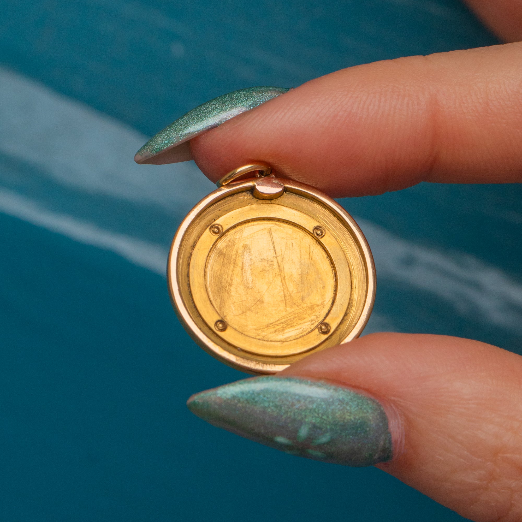 MEASUREMENTS: Pendant is 22mm in diameter x 9mm deep.