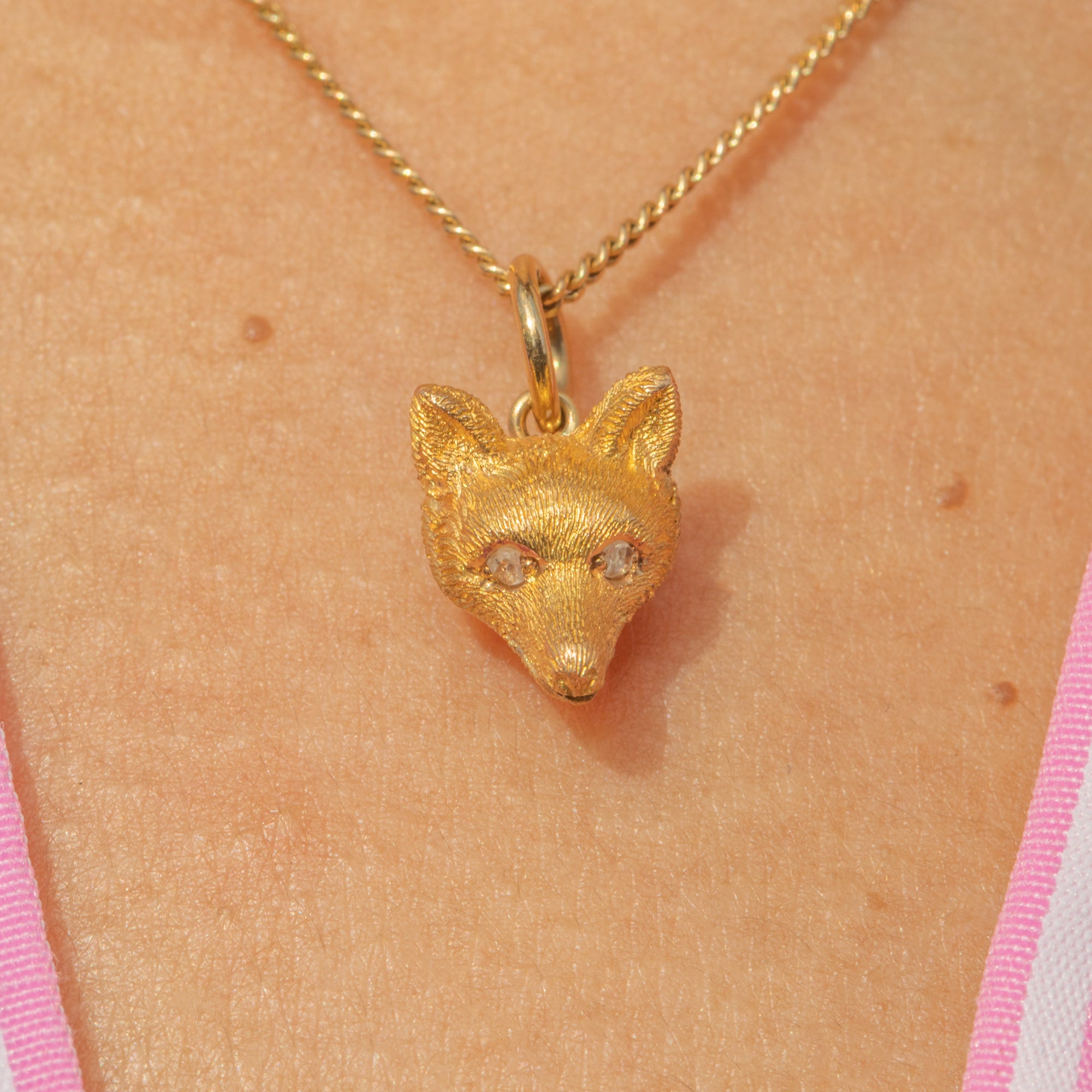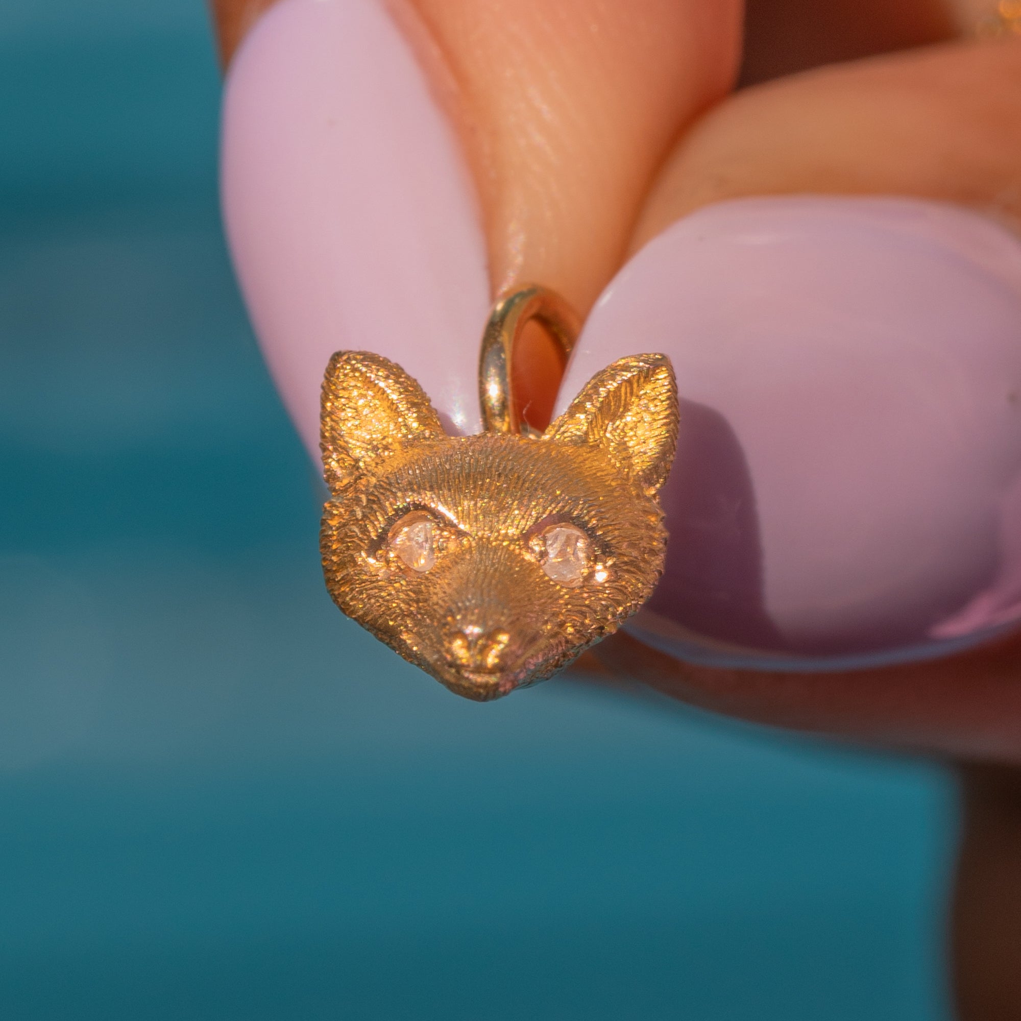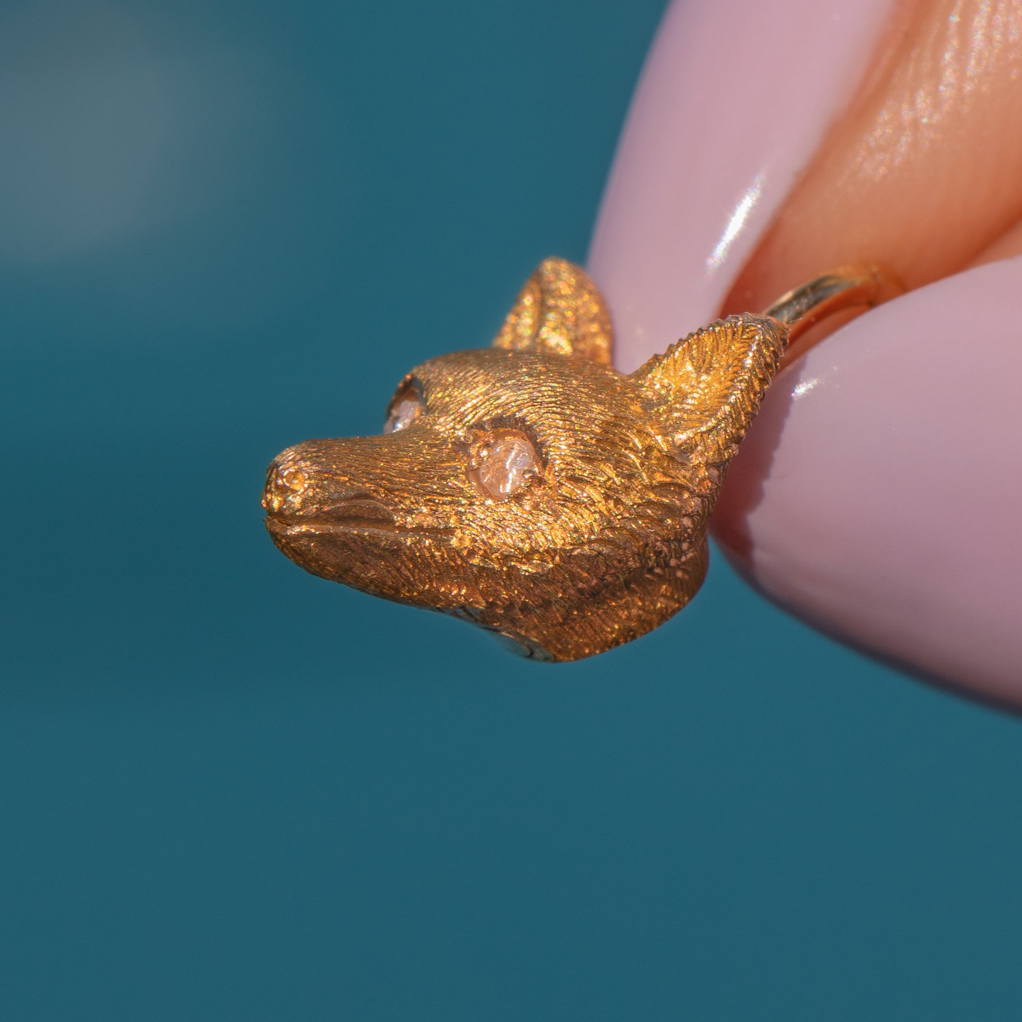EXCELLENT. This antique 18ct Gold fox charm with Diamond eyes is in excellent condition! Her solid 18ct Gold is crisp and saturated and both Diamonds are set securely. This Victorian charm will add bundles of character to your repertoire!